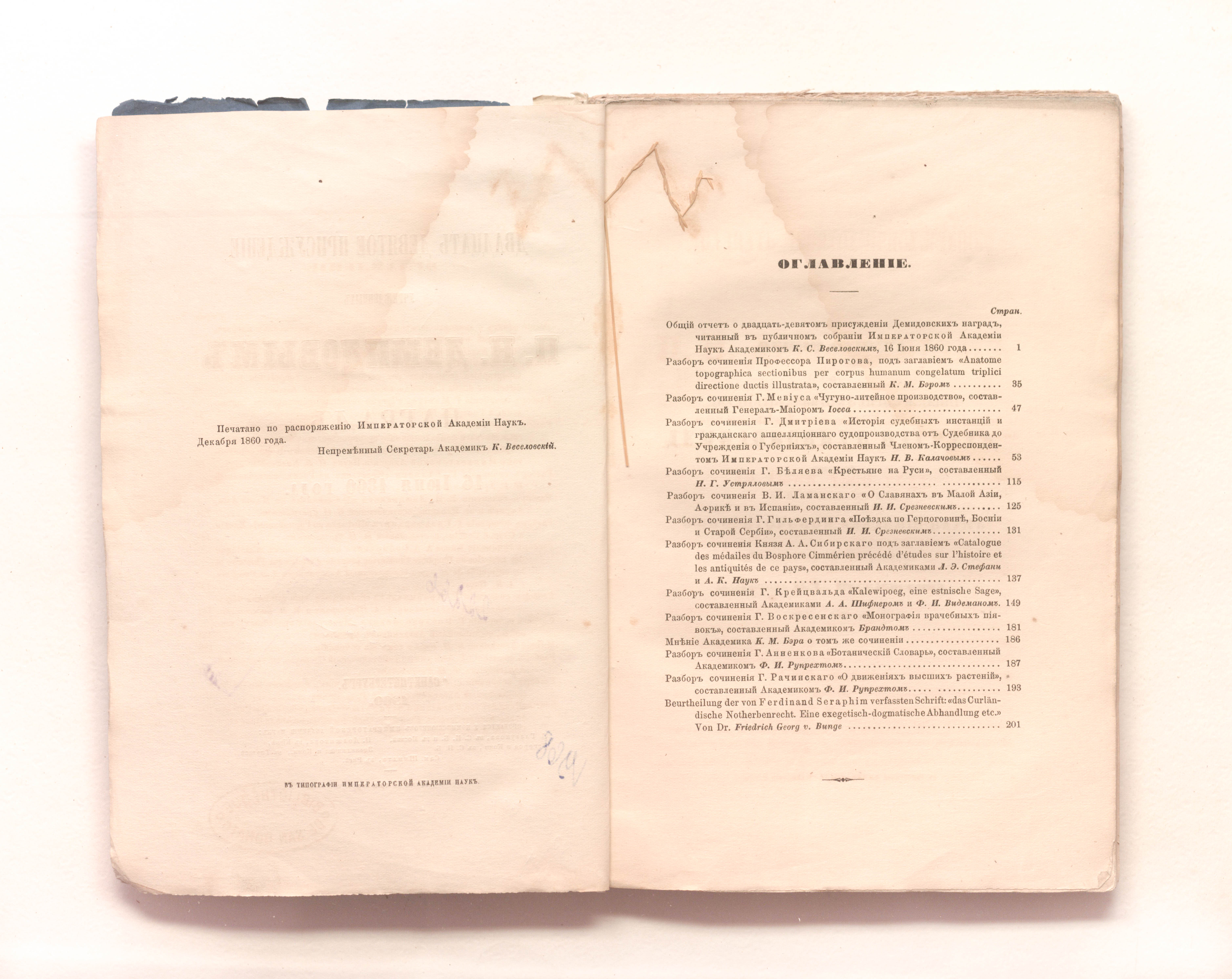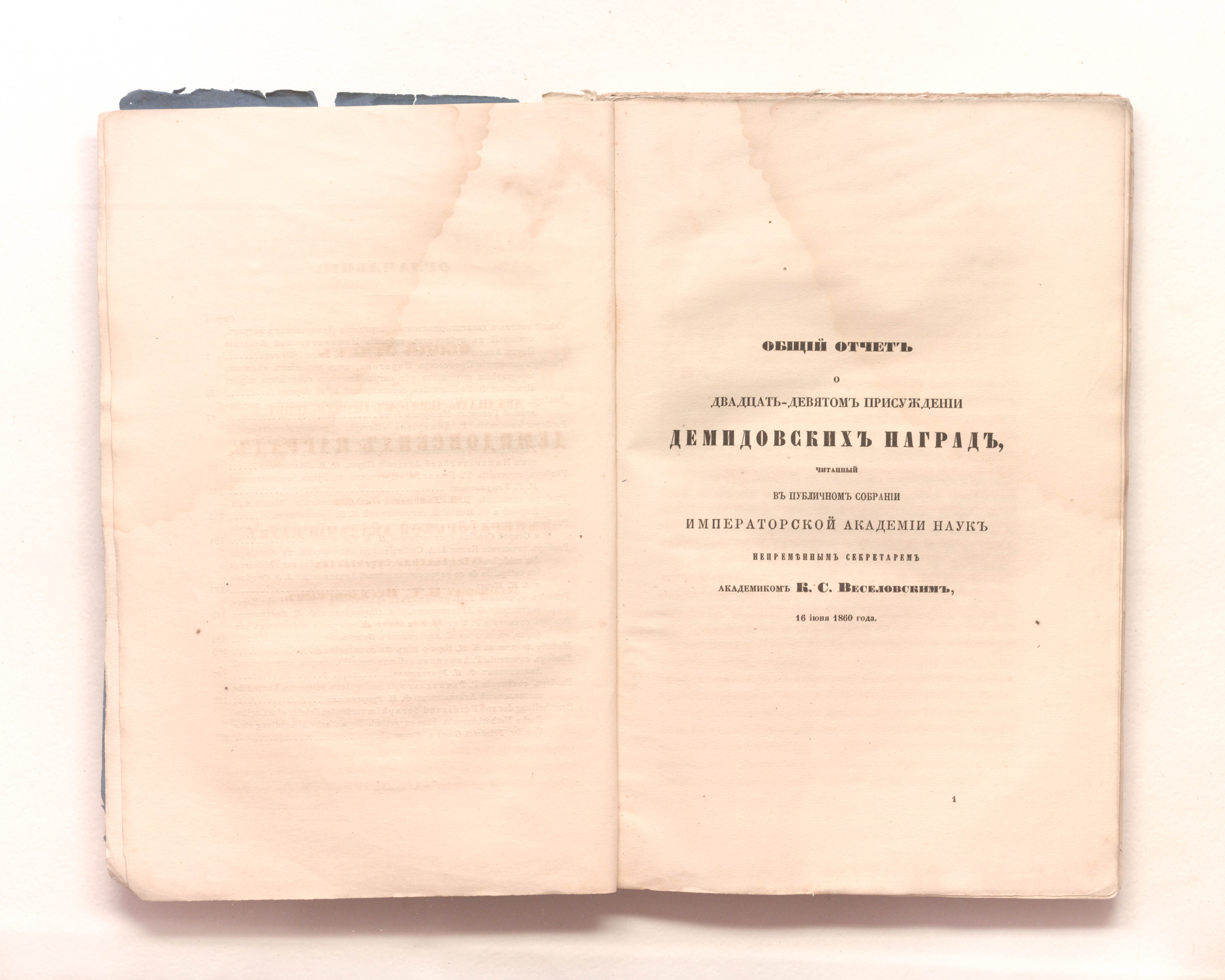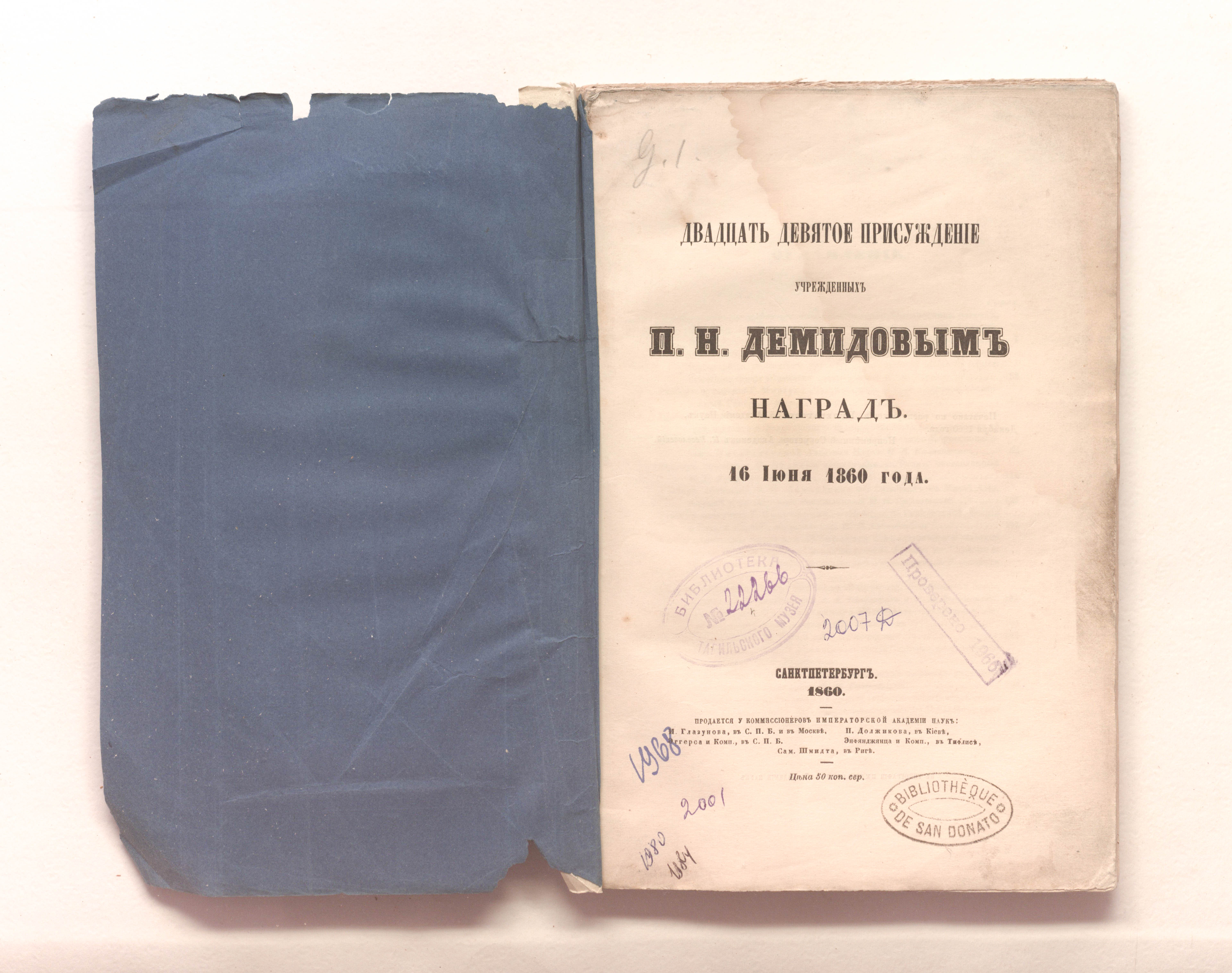 Двадцать девятое присуждение учрежденных П. Н. Демидовым наград. 16 июня 1860 года. – Санкт-Петербург : тип. Императорской Академии Наук, 1860. – 210 с. ; 24х16 см.