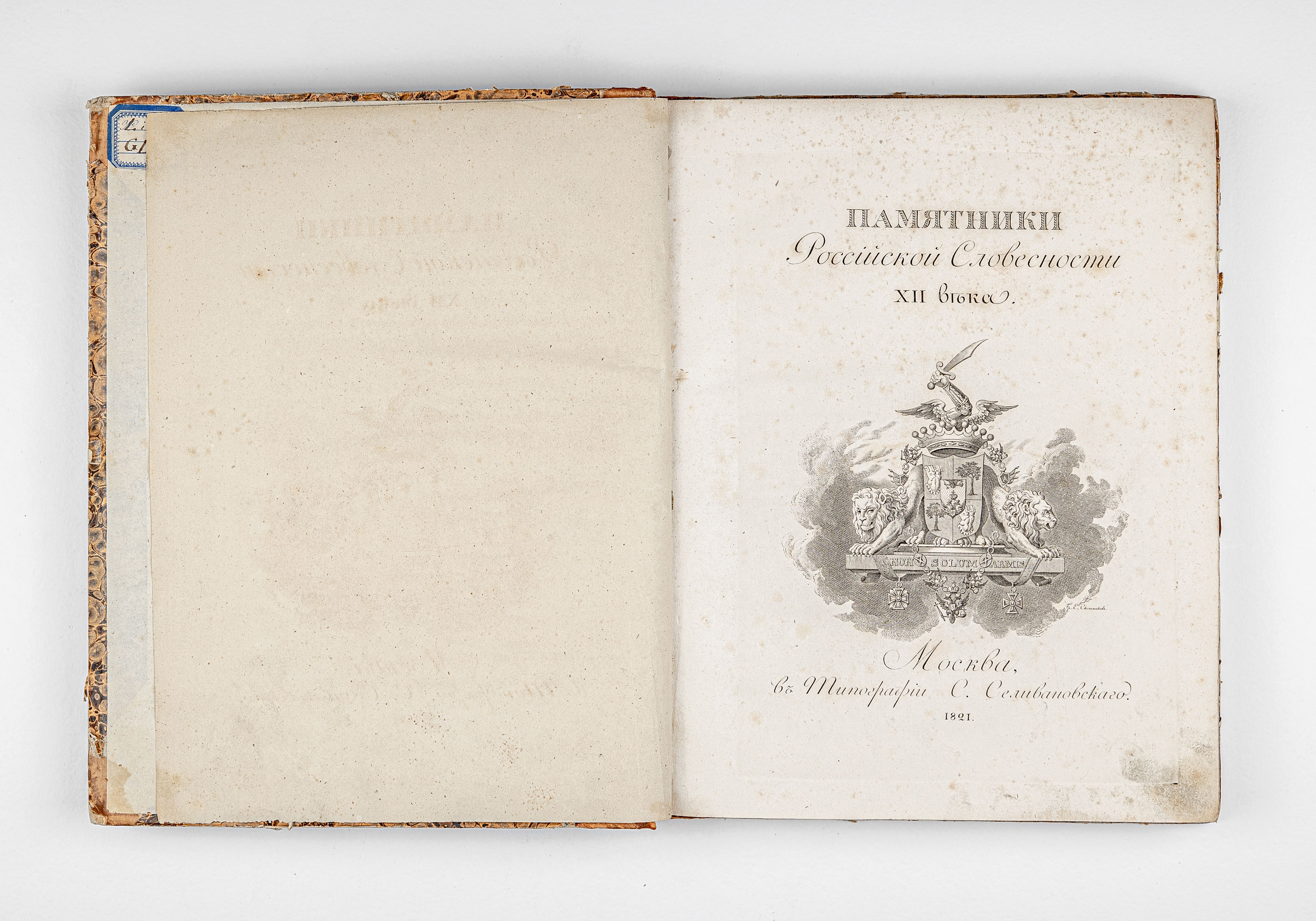 Памятники российской словесности XII века / изданные с объяснением, вариантами и образцами почерков К. Калайдовичем. – Москва : тип. Семена Селивановского, 1821. – [2], XLI, [1], 258 c. : [1] л. ил. ; 27х21 см.