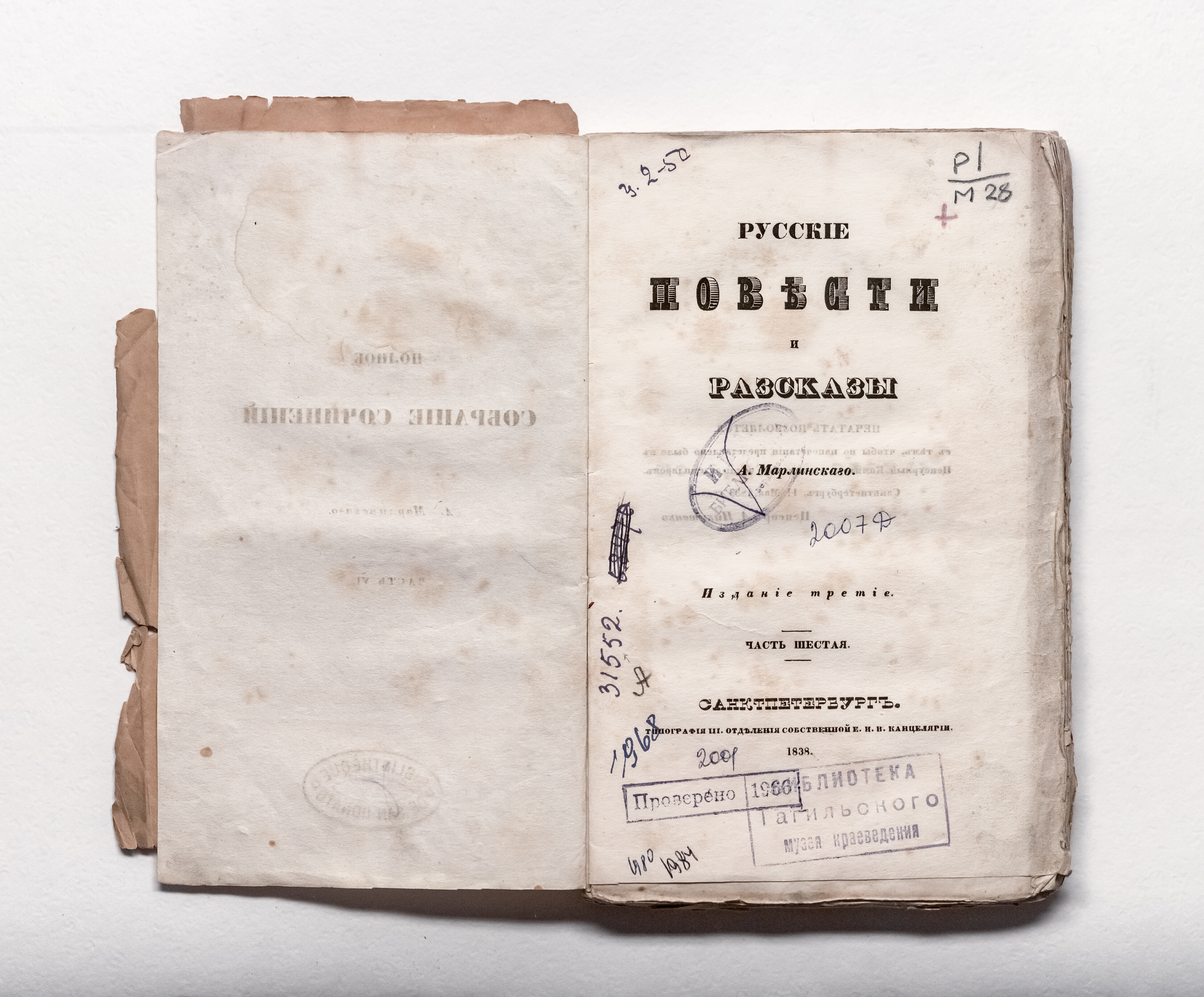 Ч. 6. Русские повести и рассказы. – 1838. – 250 c. ; 21х13,5 см.