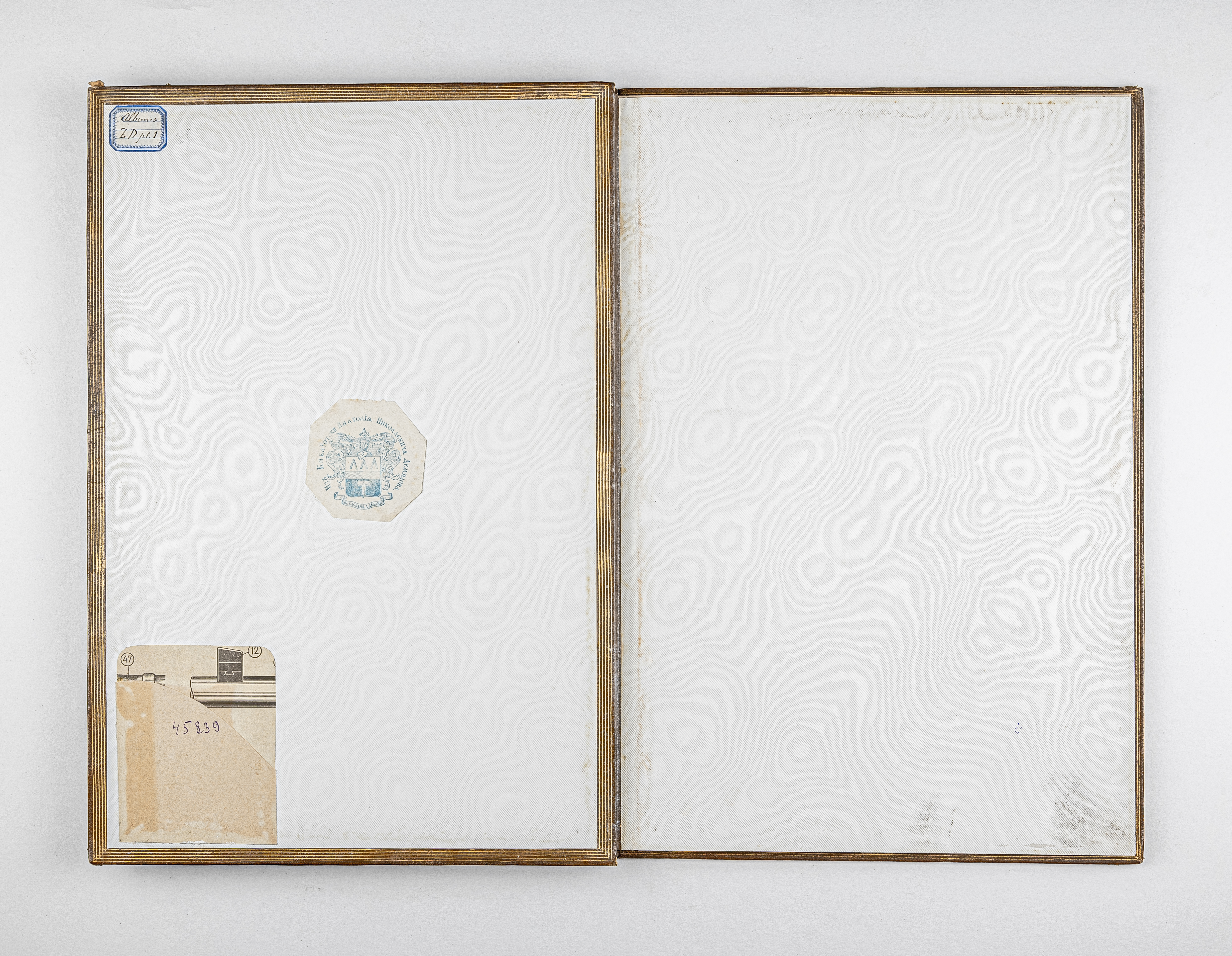 Бумажный ярлык «Albums ZD pl. 1» ((на обороте передней крышки перепл.).