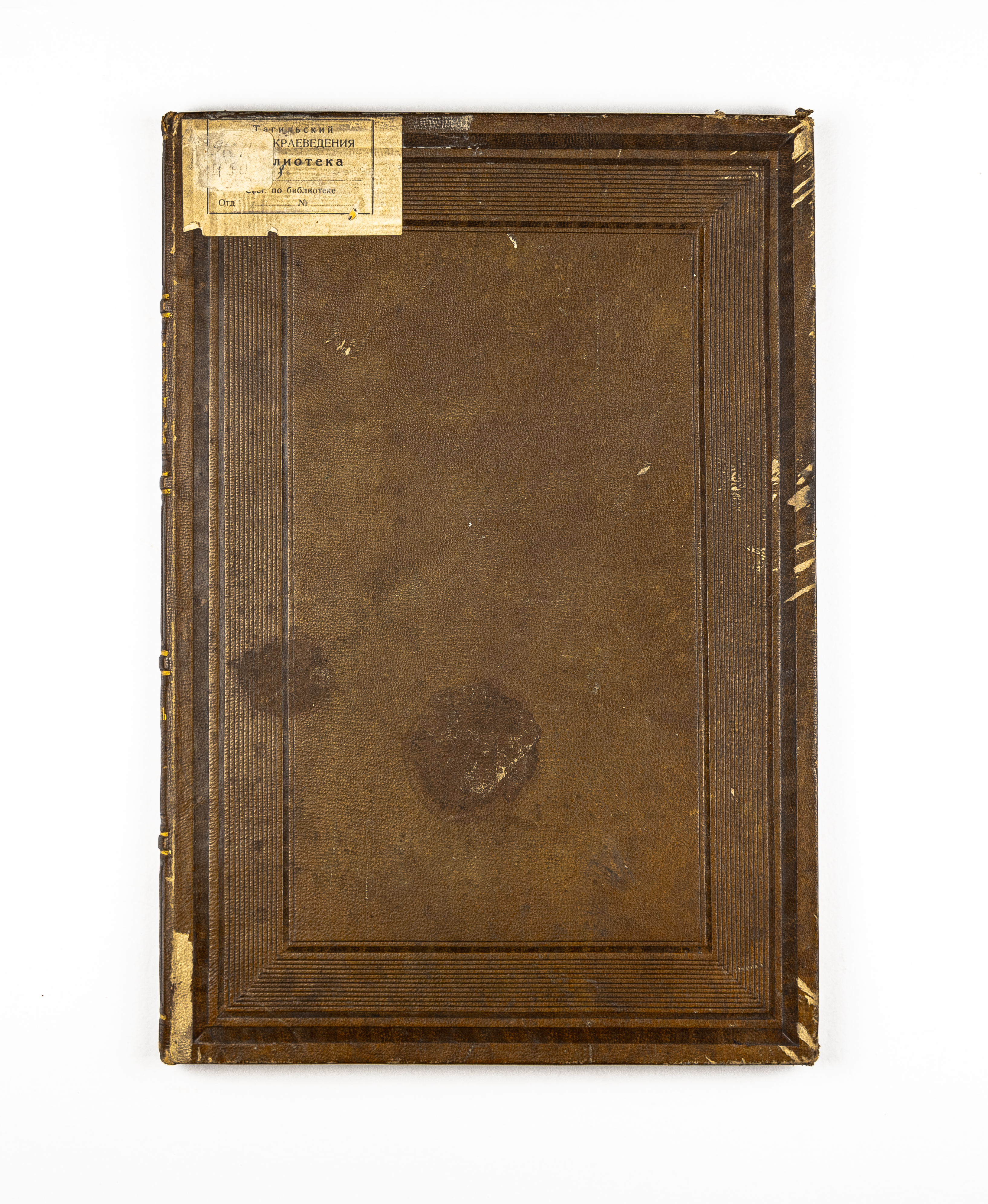 Книга в цельнокожаном владельческом переплете. Форзацы украшены бумагой с отделкой под муаровый шелк
