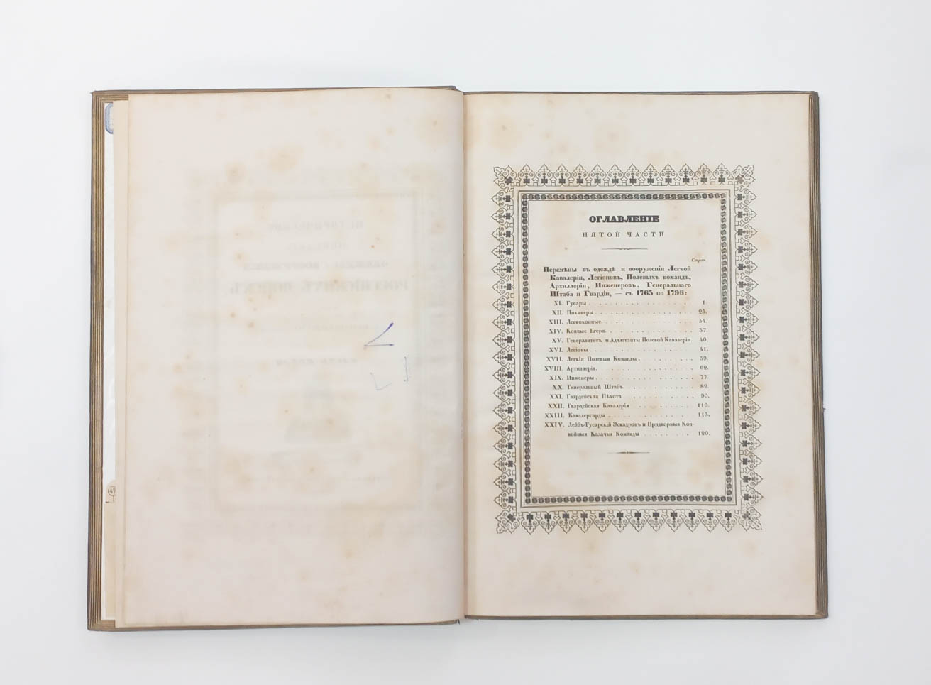Ч. 5. Перемены в одежде и вооружении Легкой Кавалерии, Легионов… с 1763 по 1796 год. – Санкт-Петербург : военная типография, 1844. – [2], 132, VIII с. ; 40х27,5 см.
