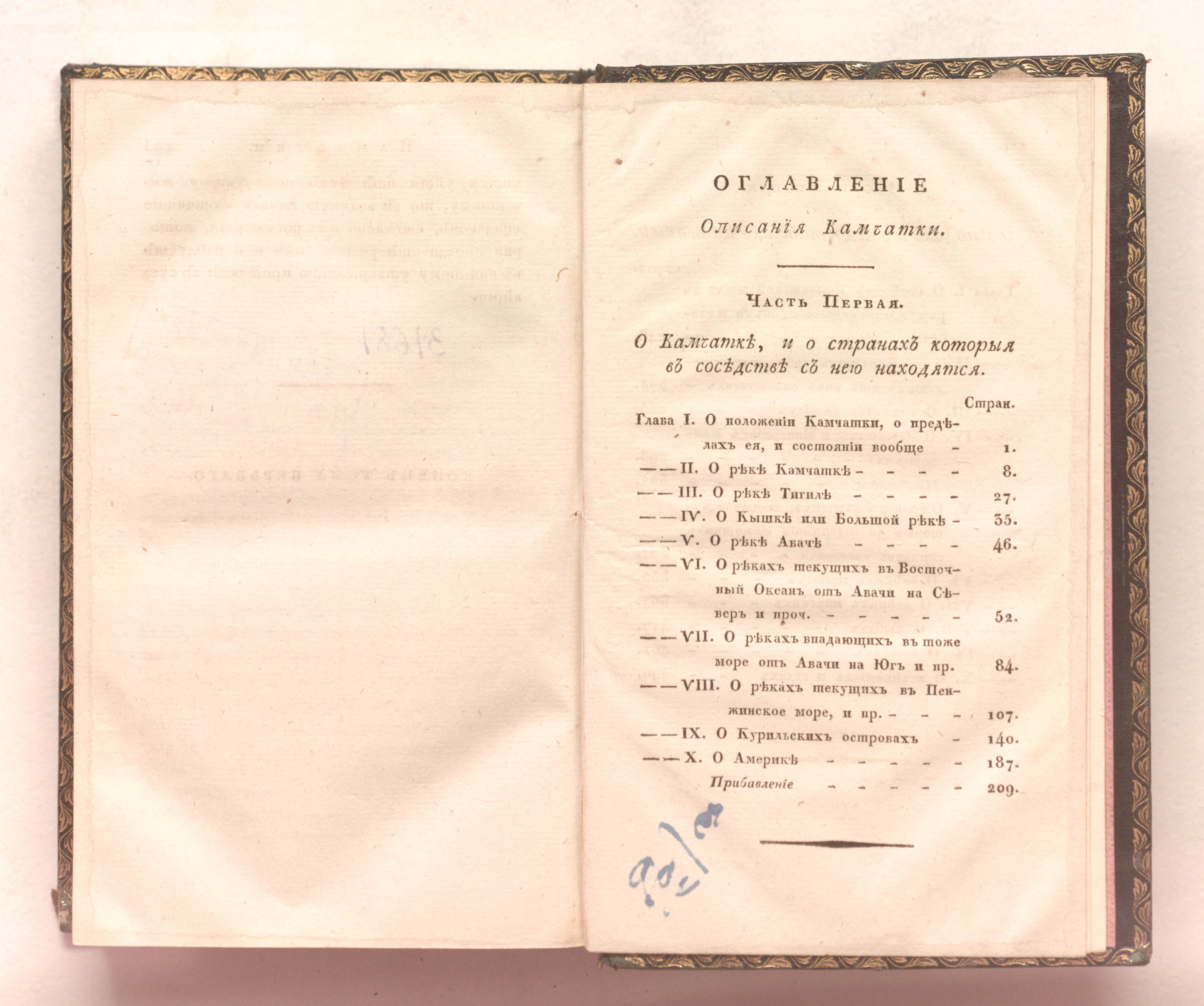 Вариант загл. : Описание земли Камчатки, сочиненное Степаном Крашенинниковым. – На XXIII-й с. тома 1: Описание земли Камчатки, сочиненное Степаном Крашенинниковым, Академии наук профессором. Часть первая и вторая.
