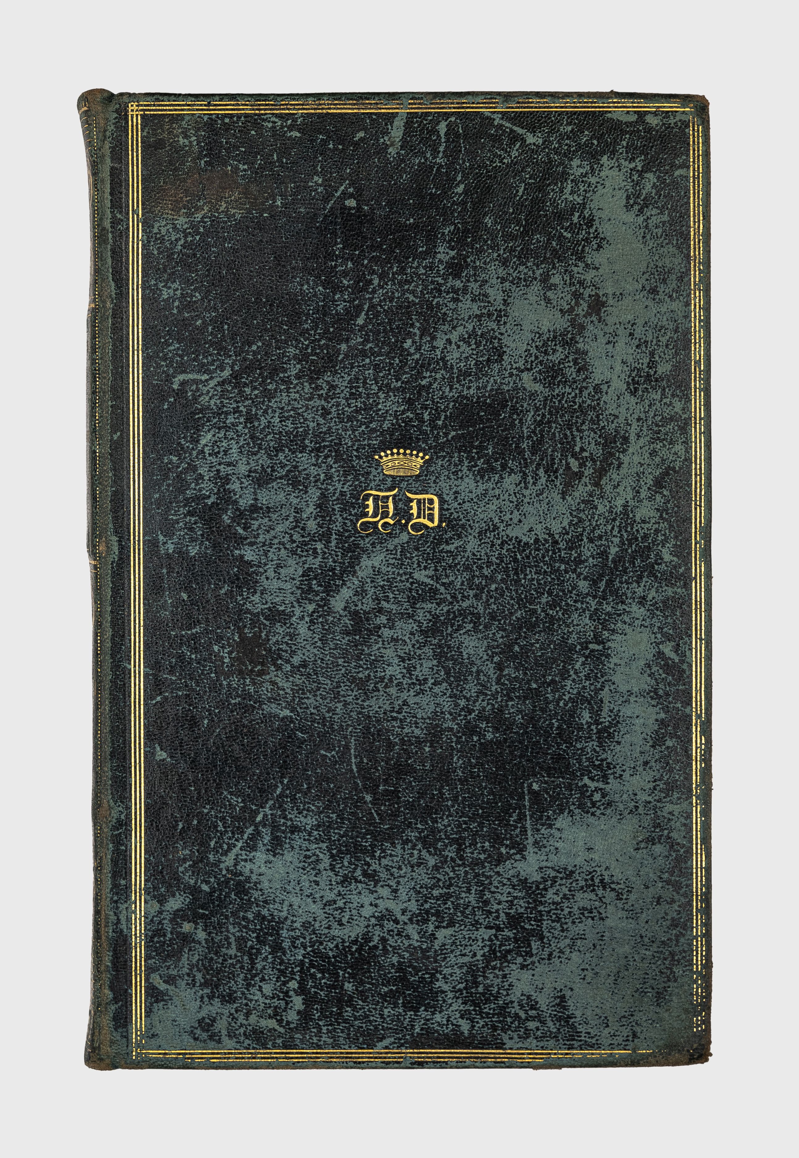 Золототисненый суперэкслибрис – иниц. «П.Д.» над ними корона ( на верхней крышке перепл.);