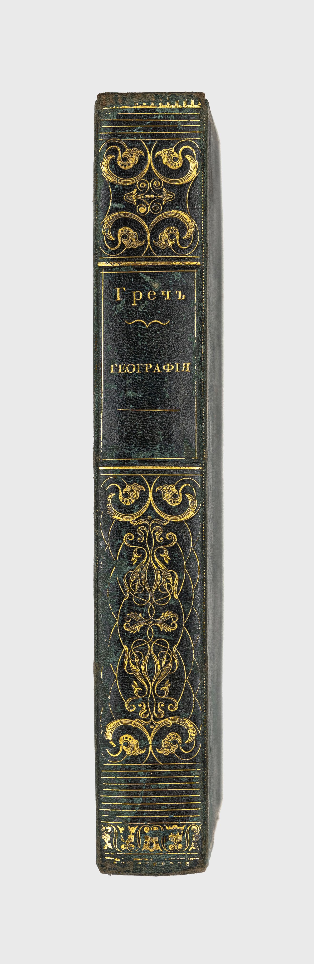 Золототисненое заглавие «Гречъ, География» (на корешке перепл.).