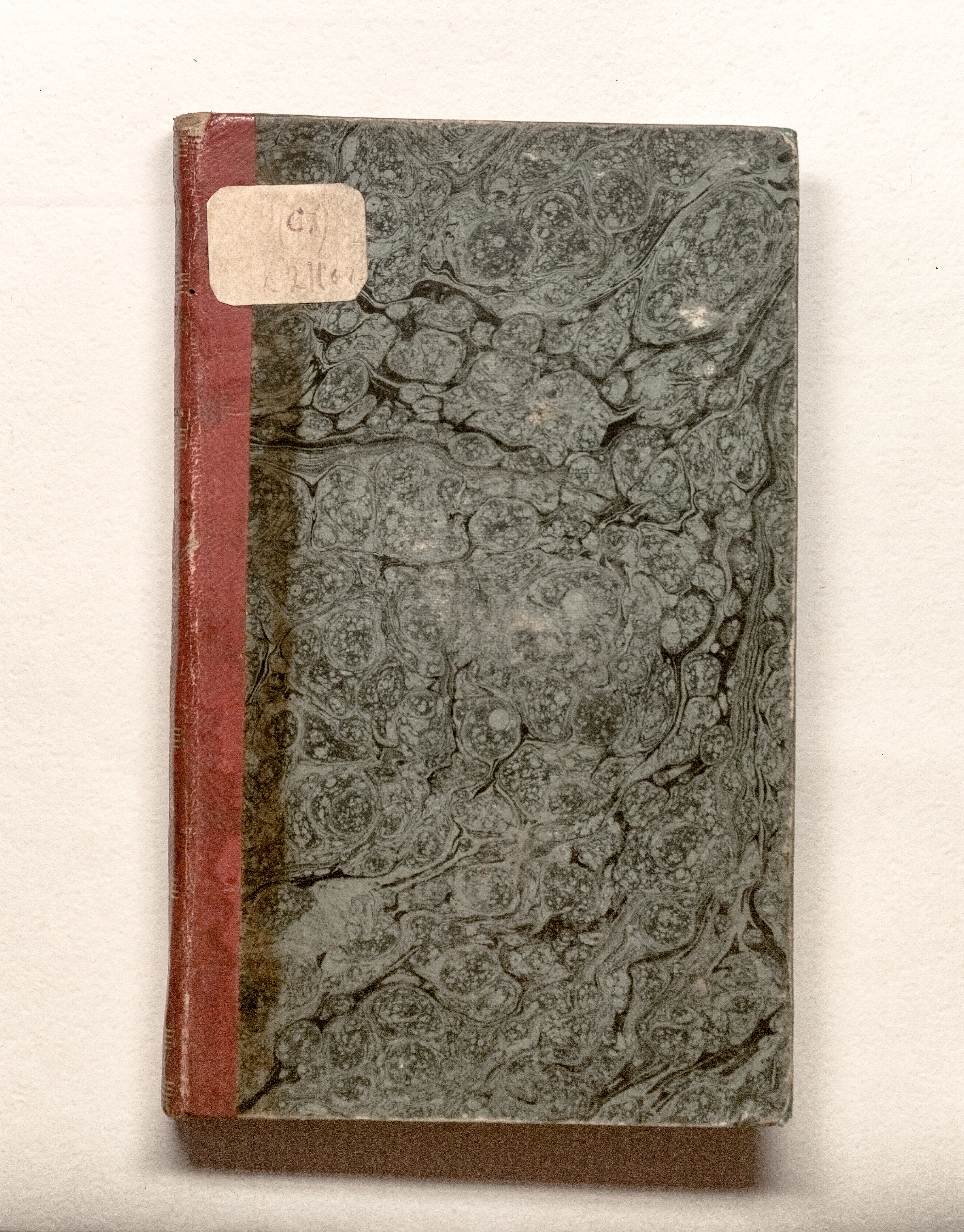 Книга в полукожаном владельческом переплете. Крышки переплета обтянуты бумагой с рисунком «под мрамор». Обрез тонированный. Бумага верже. Форзацы украшены бумагой «под мрамор.