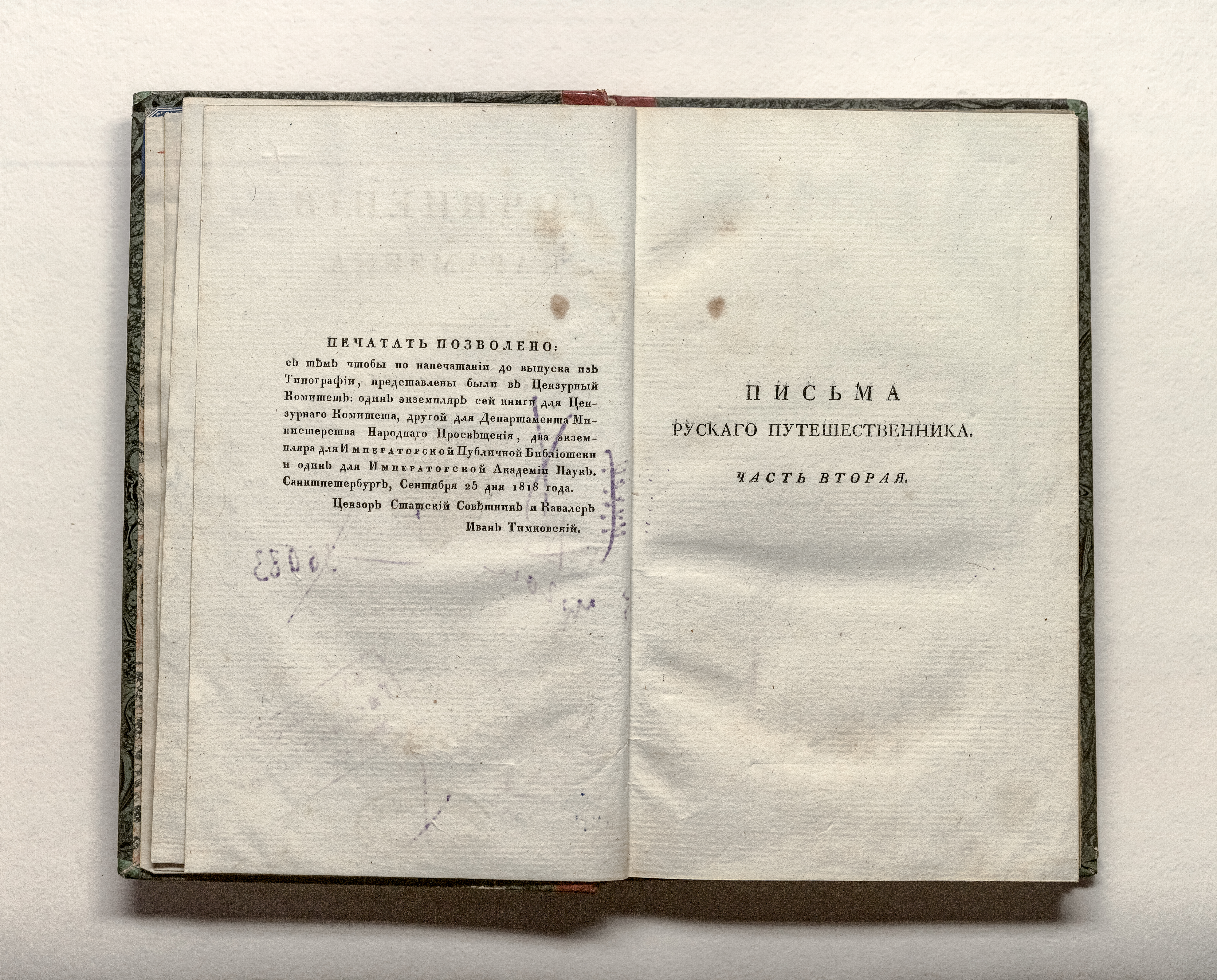 Золототиснение «OEUVRES DE KARAMSINS» (на корешке перепл.).