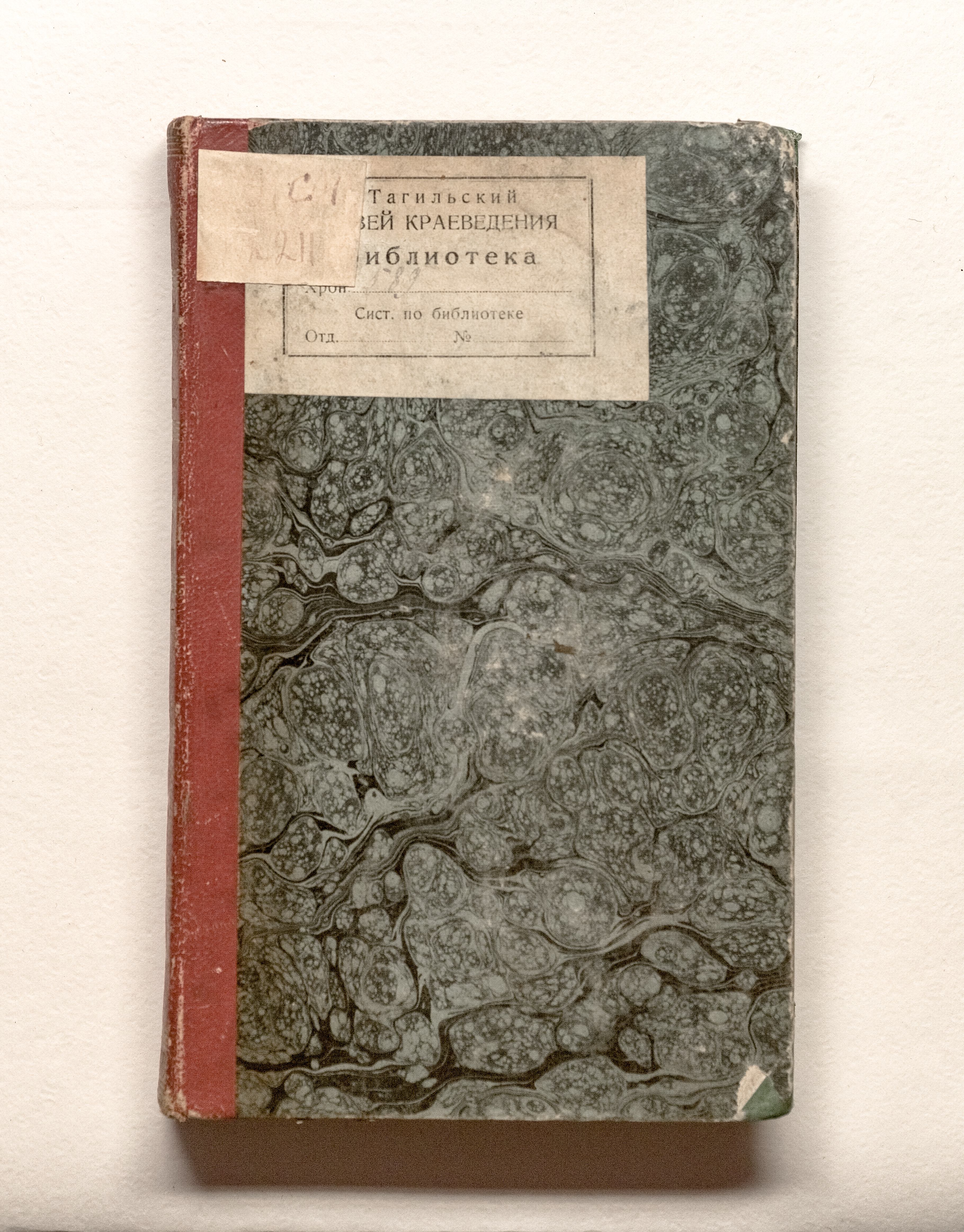 Книга в полукожаном владельческом переплете. Крышки переплета обтянуты бумагой с рисунком «под мрамор». Обрез тонированный. Бумага верже. Форзацы украшены бумагой «под мрамор.