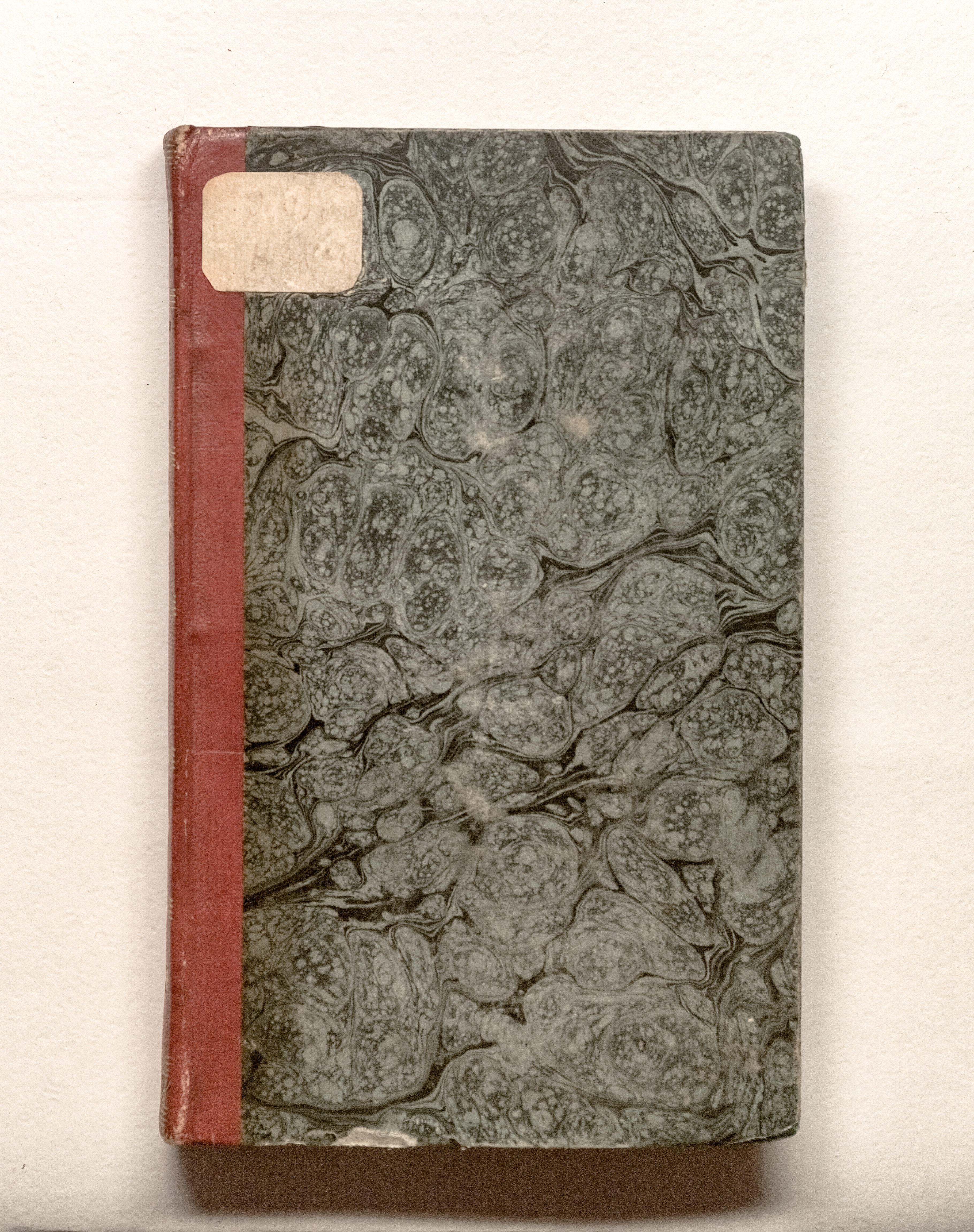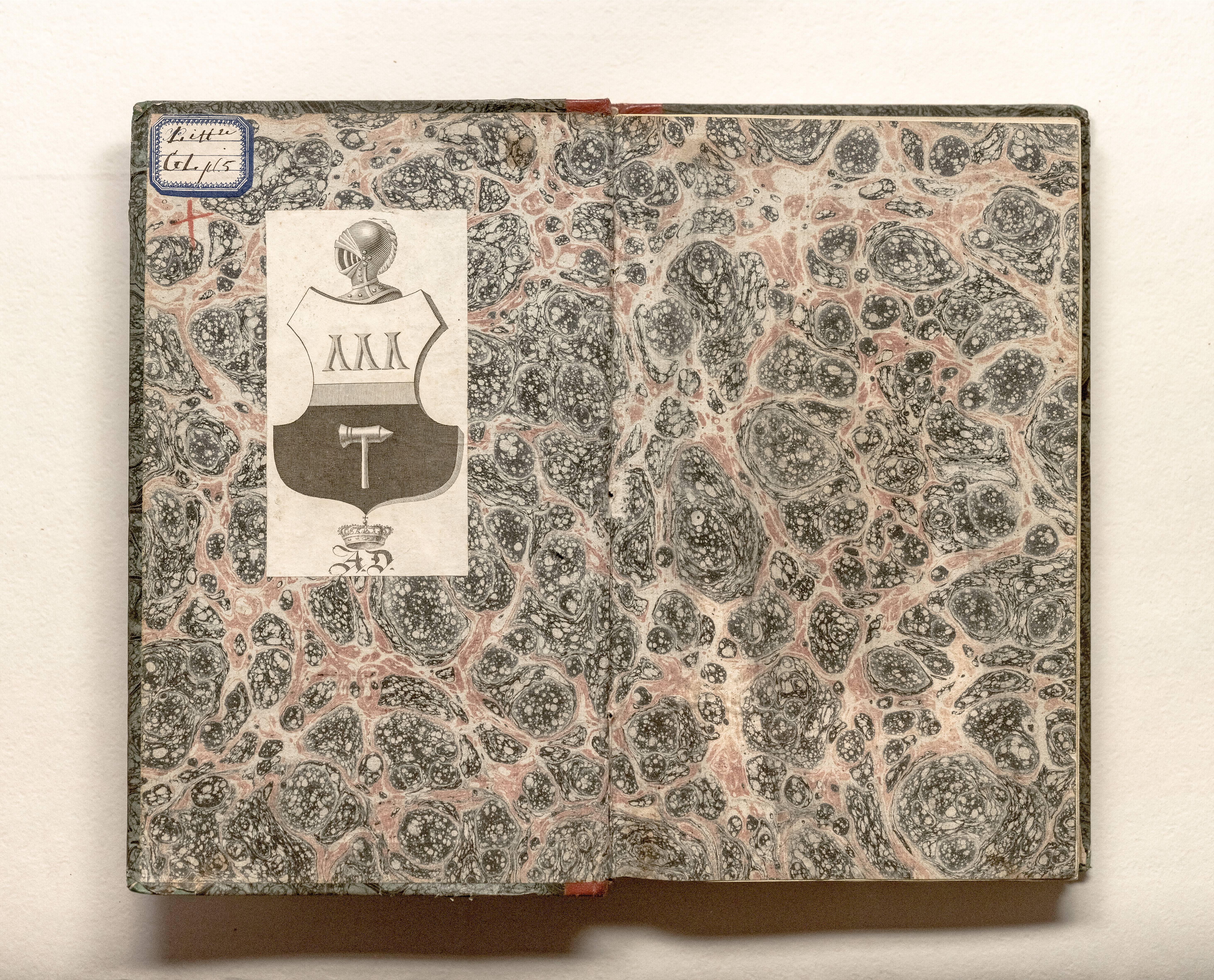 Книга в полукожаном владельческом переплете. Крышки переплета обтянуты бумагой с рисунком «под мрамор». Обрез тонированный. Бумага верже. Форзацы украшены бумагой «под мрамор.