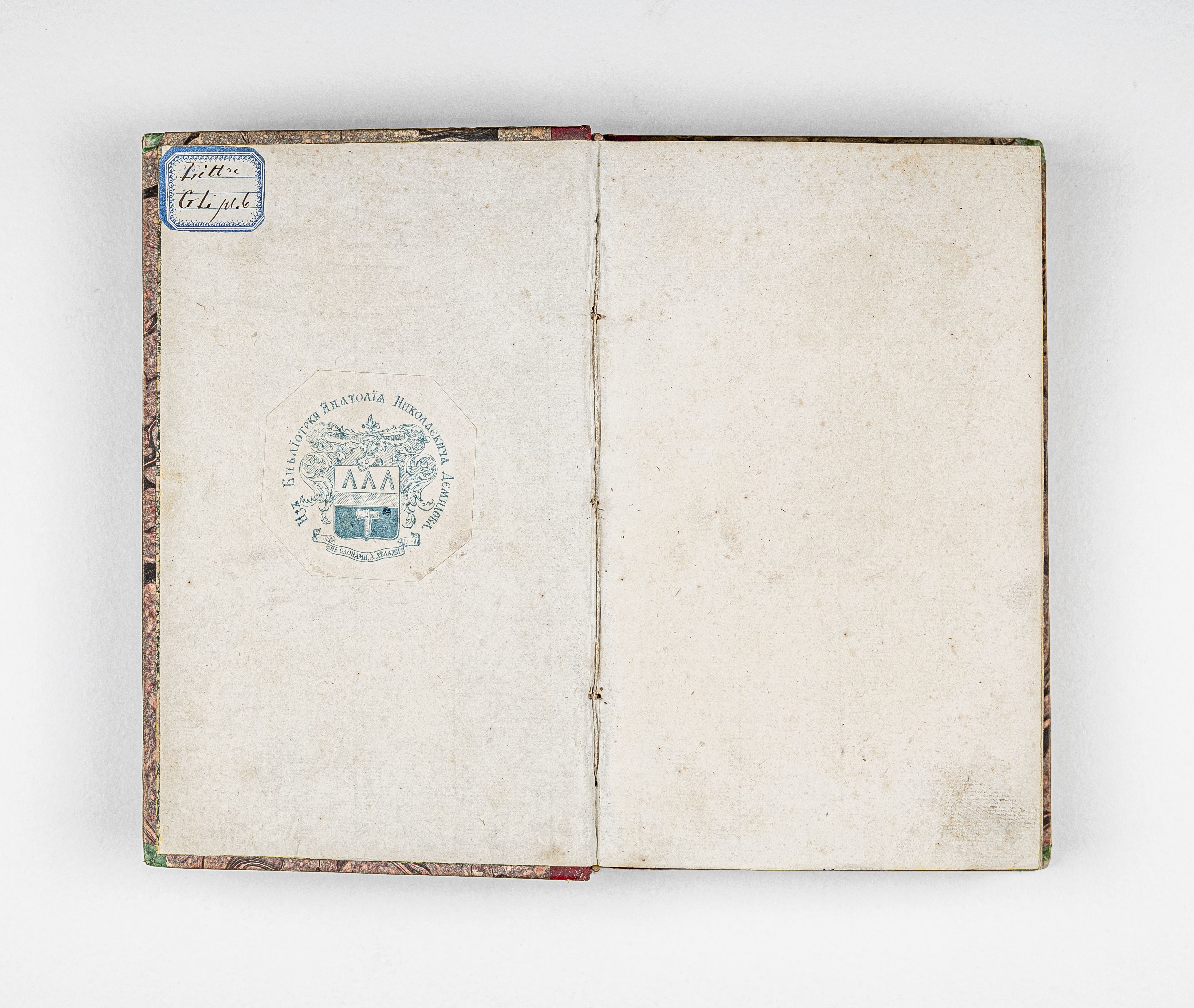 Бумажный ярлык «Litt GL pl. 6» (на обороте передней крышки перепл.).