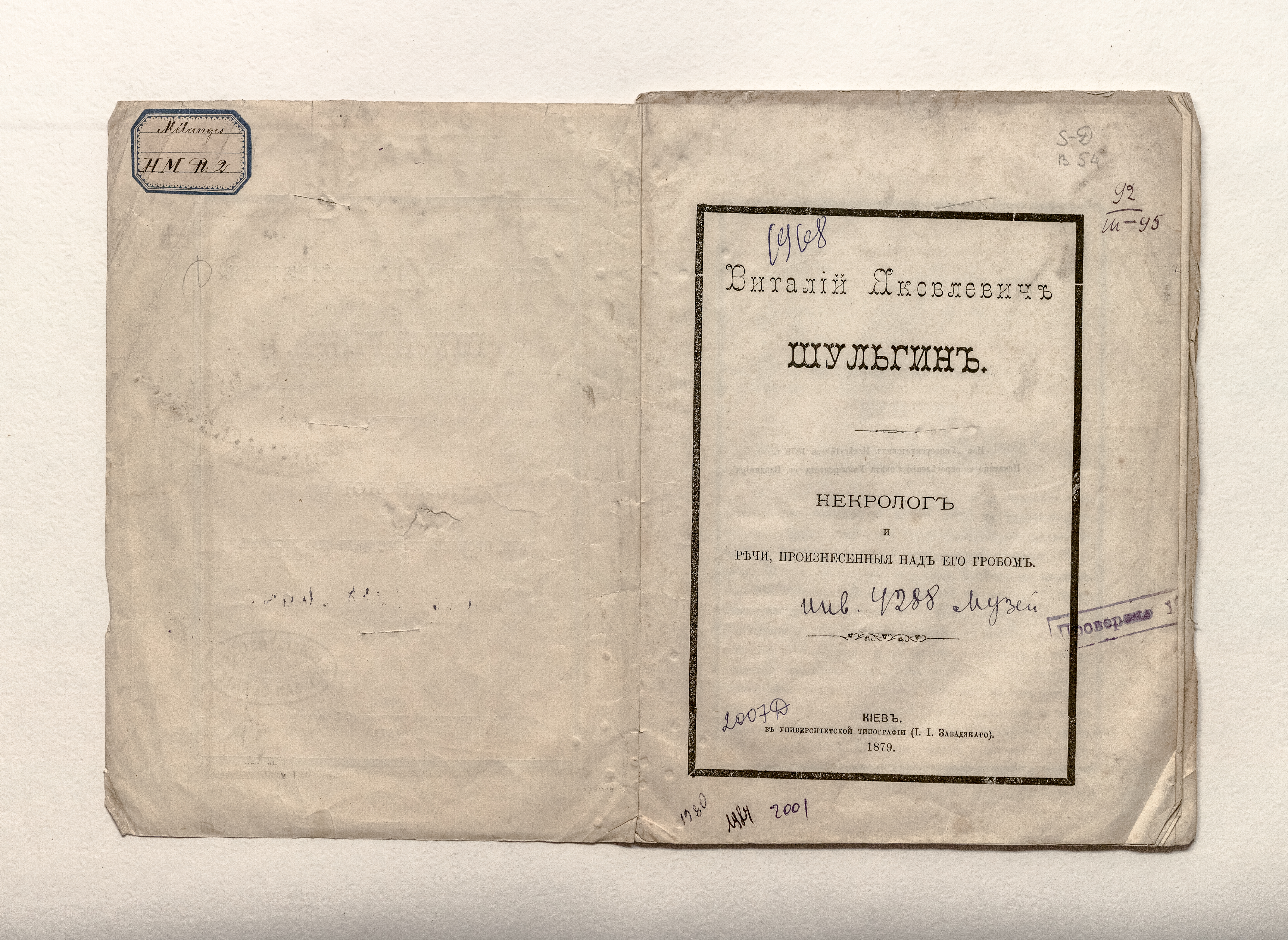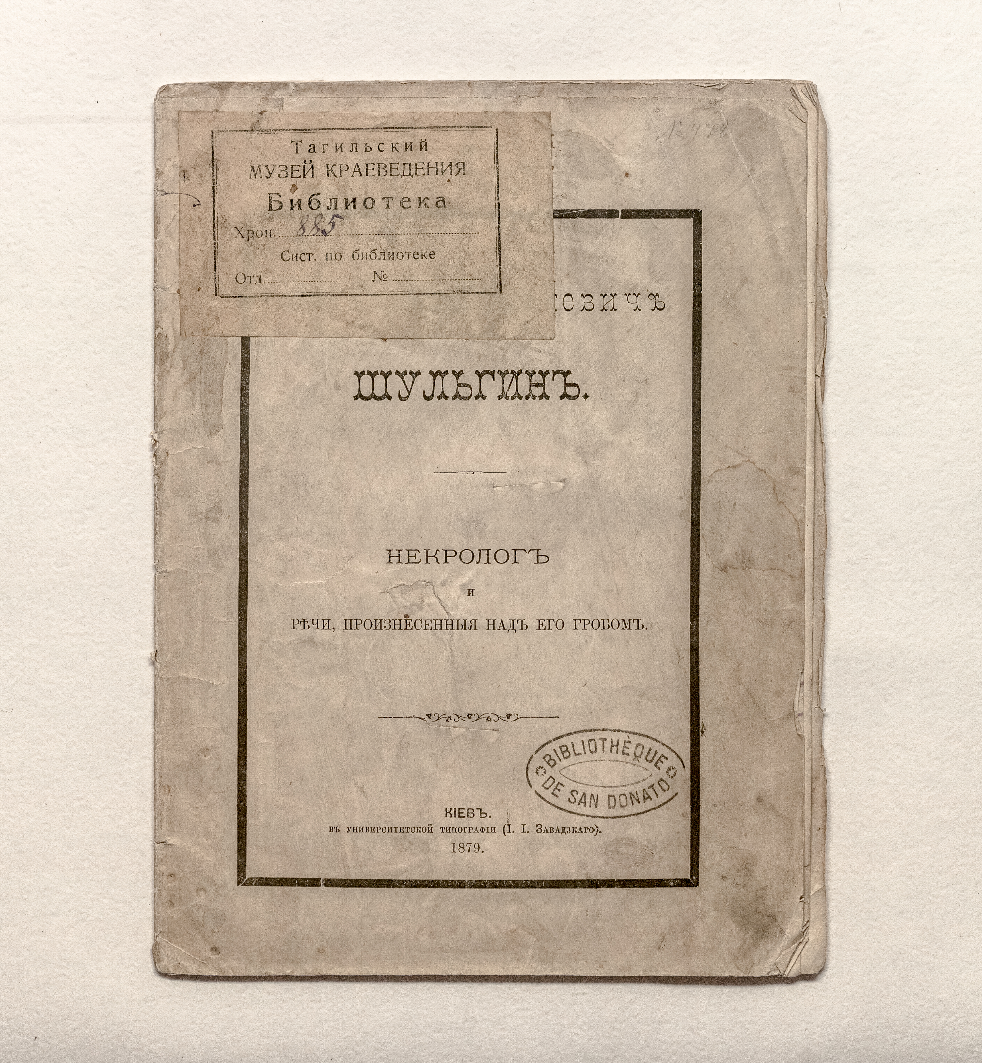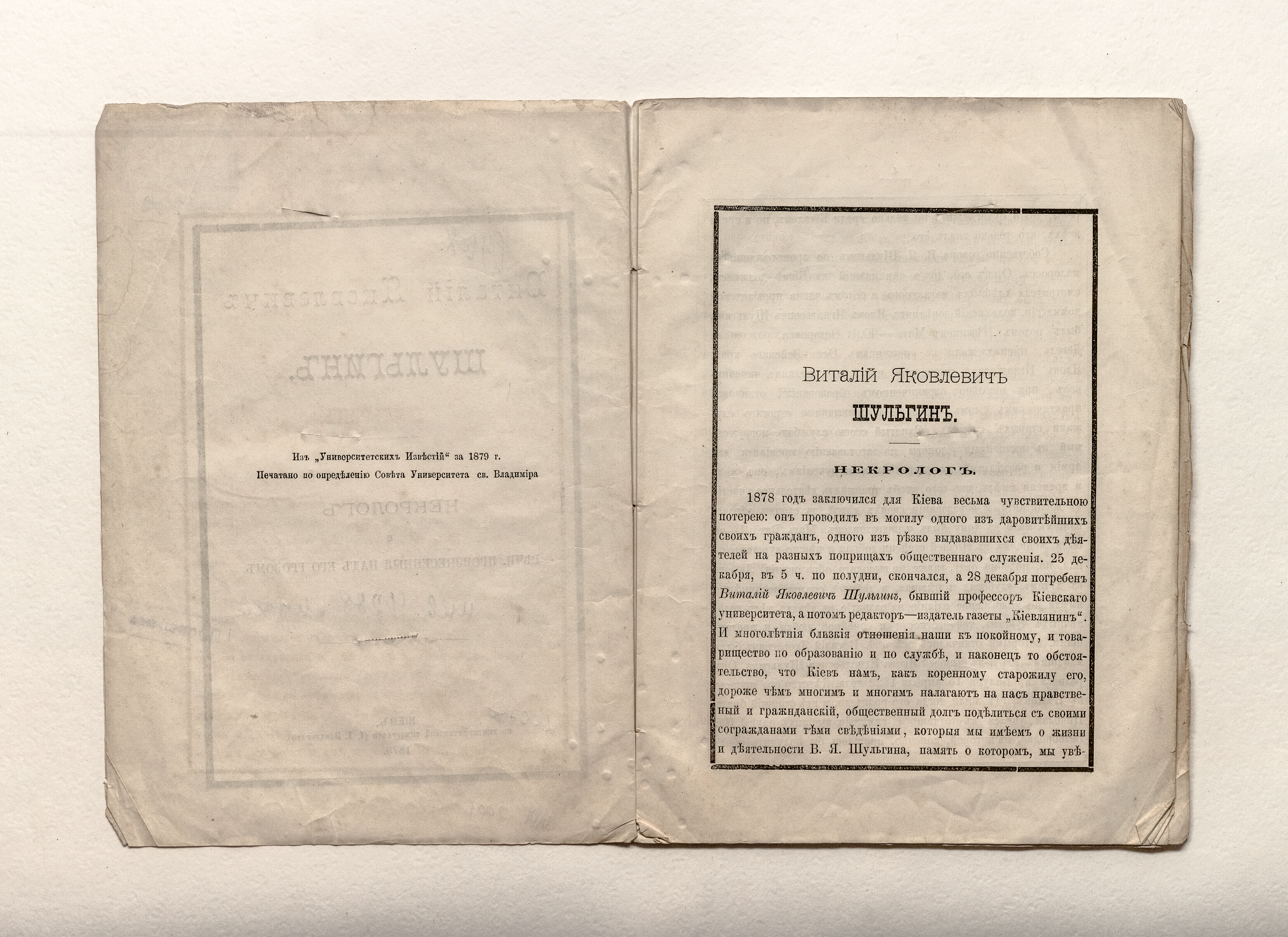 Линниченко, А. И. (1822 – 1888). Виталий Яковлевич Шульгин : Некролог и речи, произнесенные над его гробом. – Киев : Унив. тип., 1879. – 40 с. ; 22х16 см.