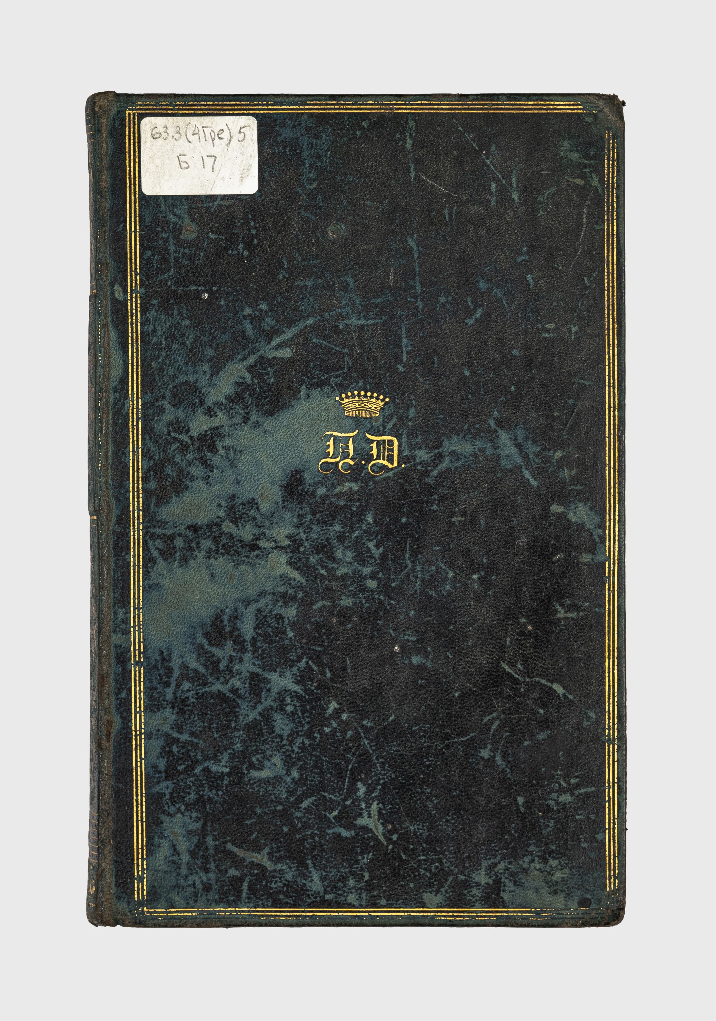 Золототисненый суперэкслибрис – иниц. «П.Д.» над ними корона ( на верхней крышке перепл.);