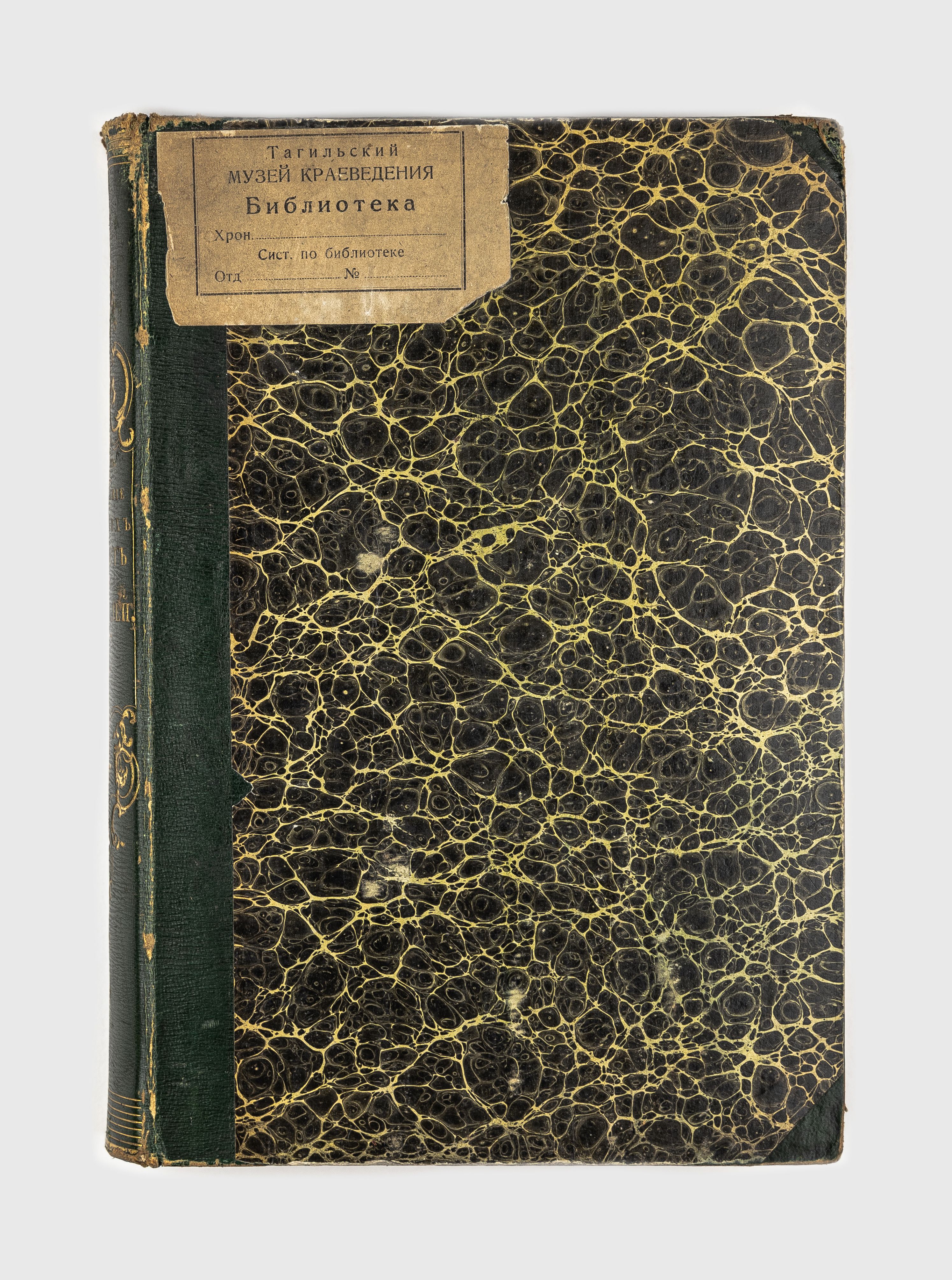 Книга в полукожаном владельческом переплете. Крышки переплета обтянуты бумагой с рисунком «под мрамор».