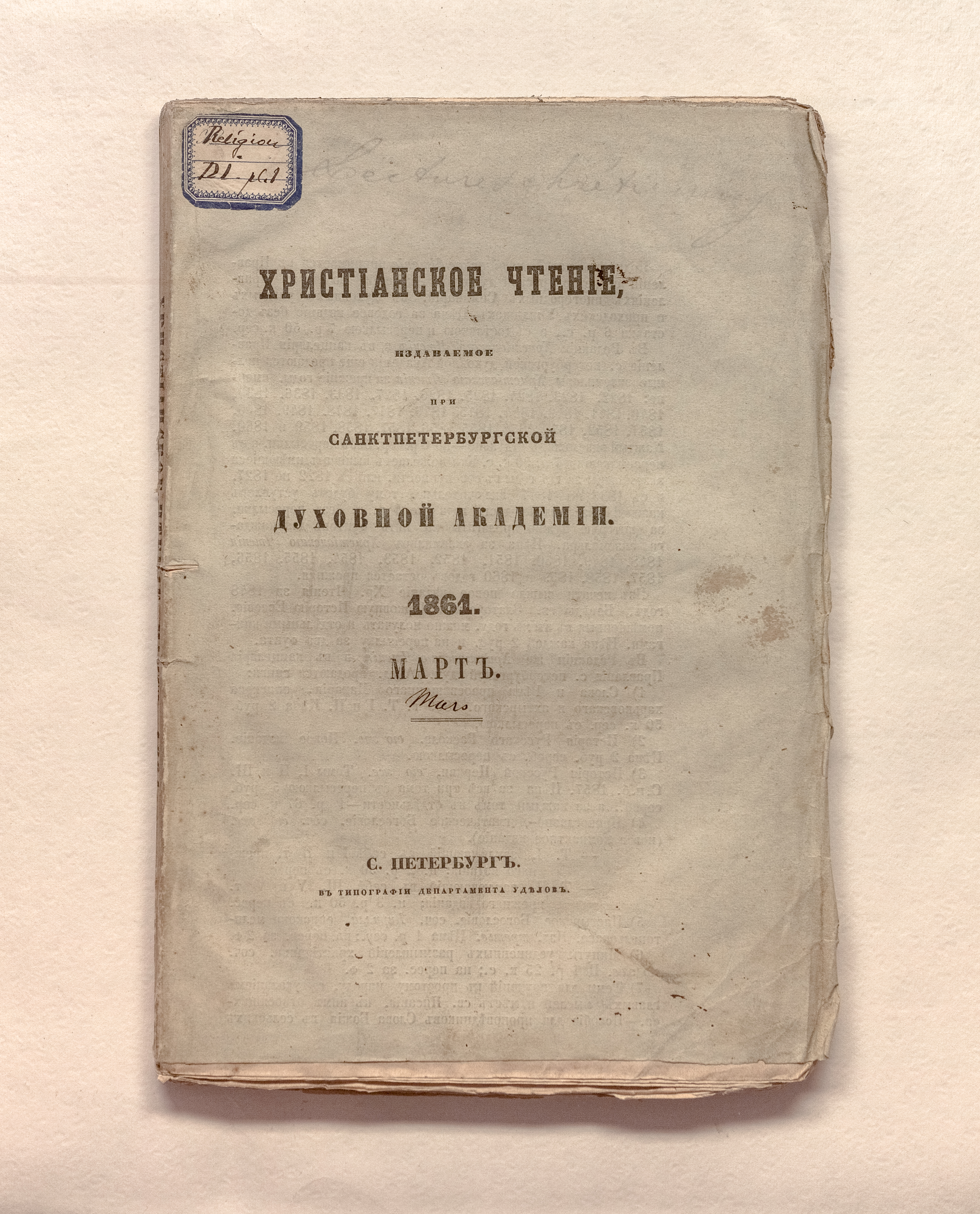 Христианское чтение, издаваемое при Санктпетербургской духовной академии