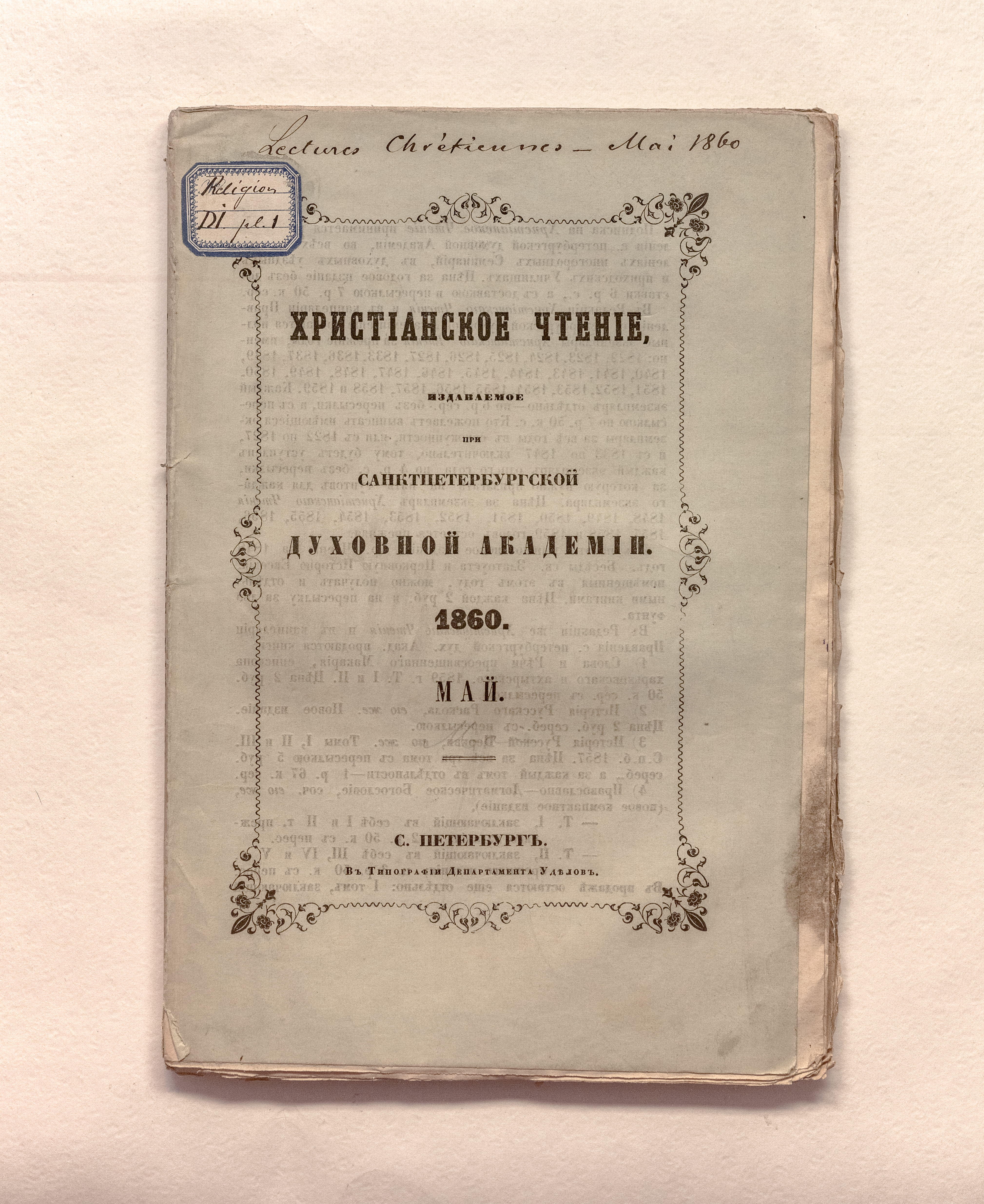 Бумажный ярлык «Religion DI pl. 1» (обложка).