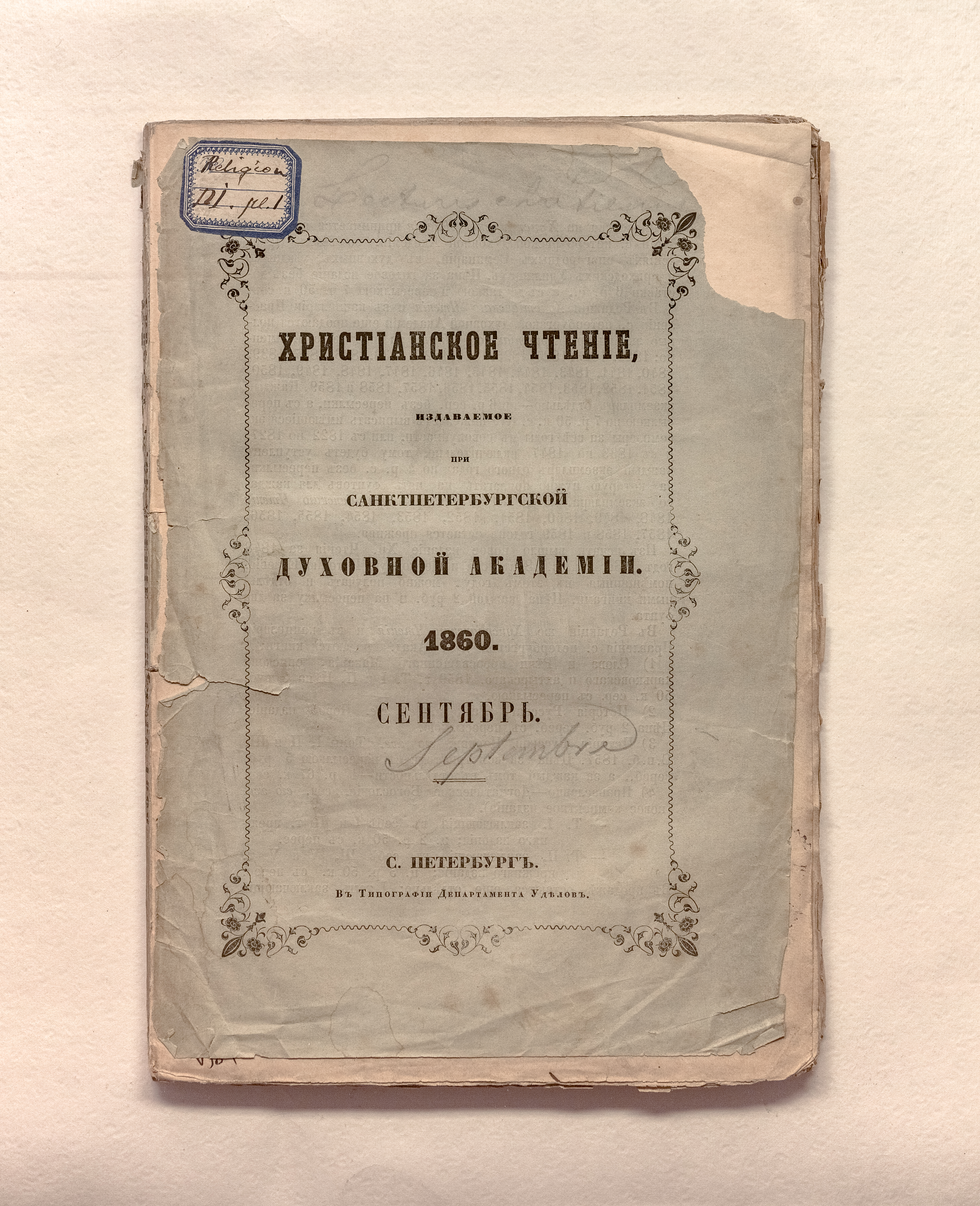Бумажный ярлык «Religion DI pl. 1» (обложка).