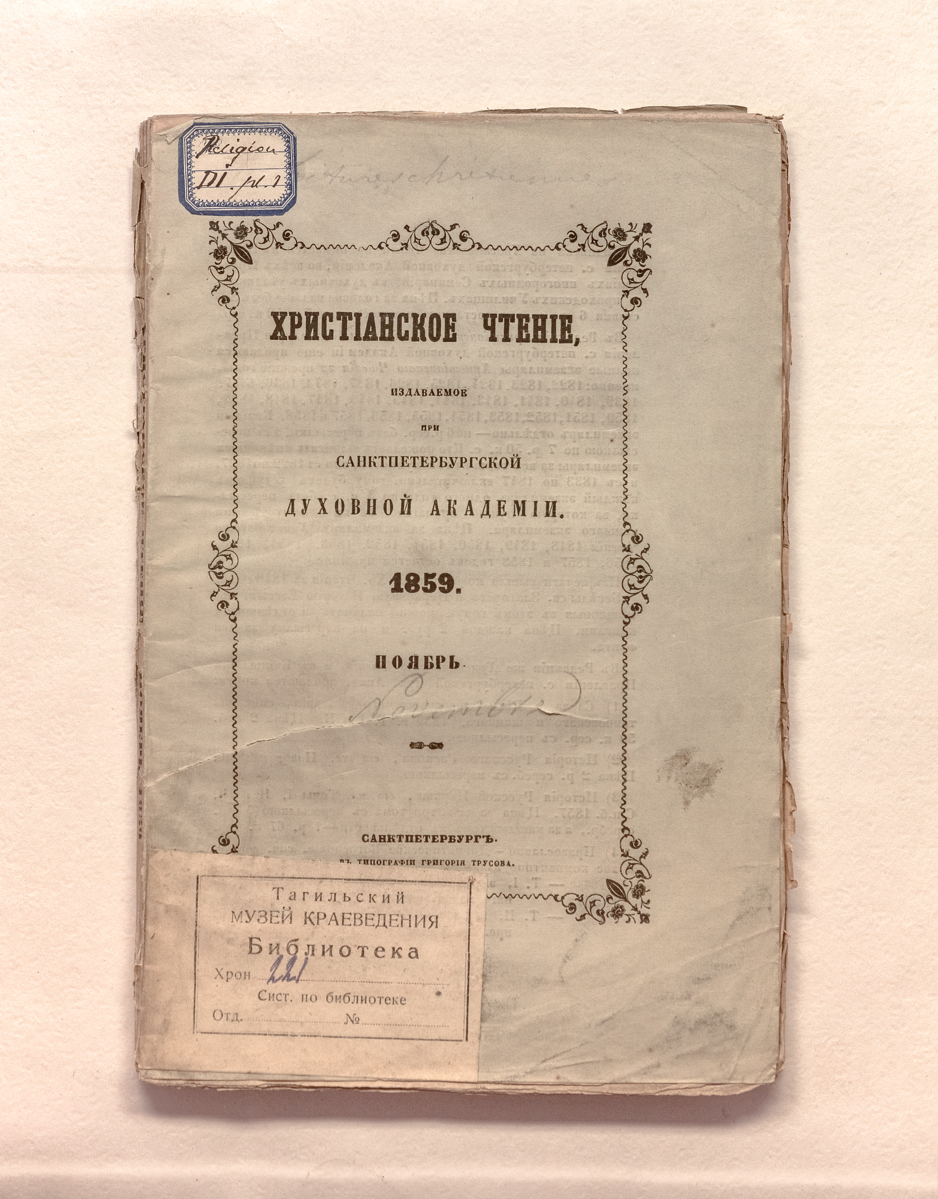 Бумажный ярлык «Religion DI pl. 1» (обложка).