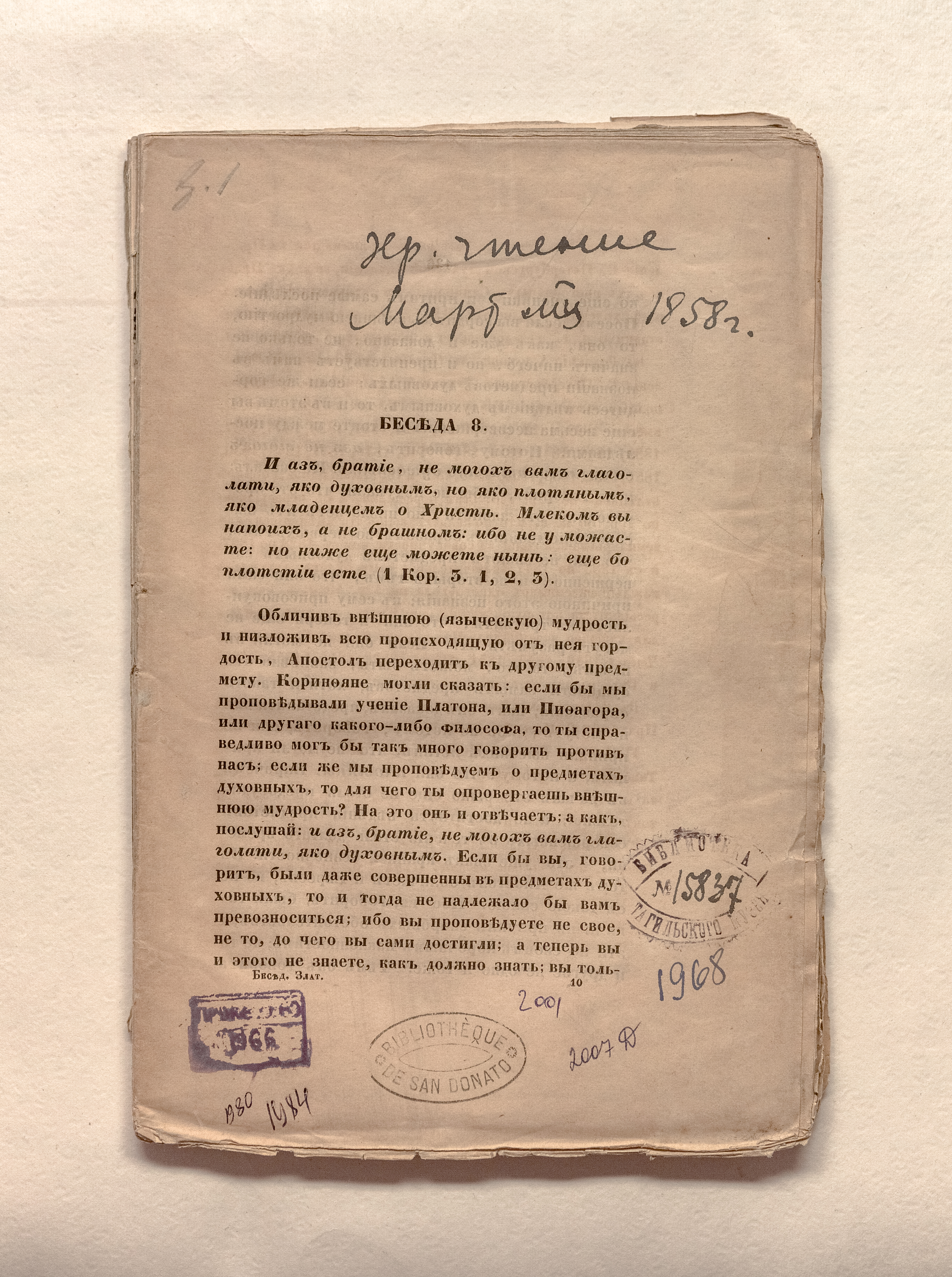 «BIBLIOTHEQUE DE SAN DONATO» (на 1 с.).