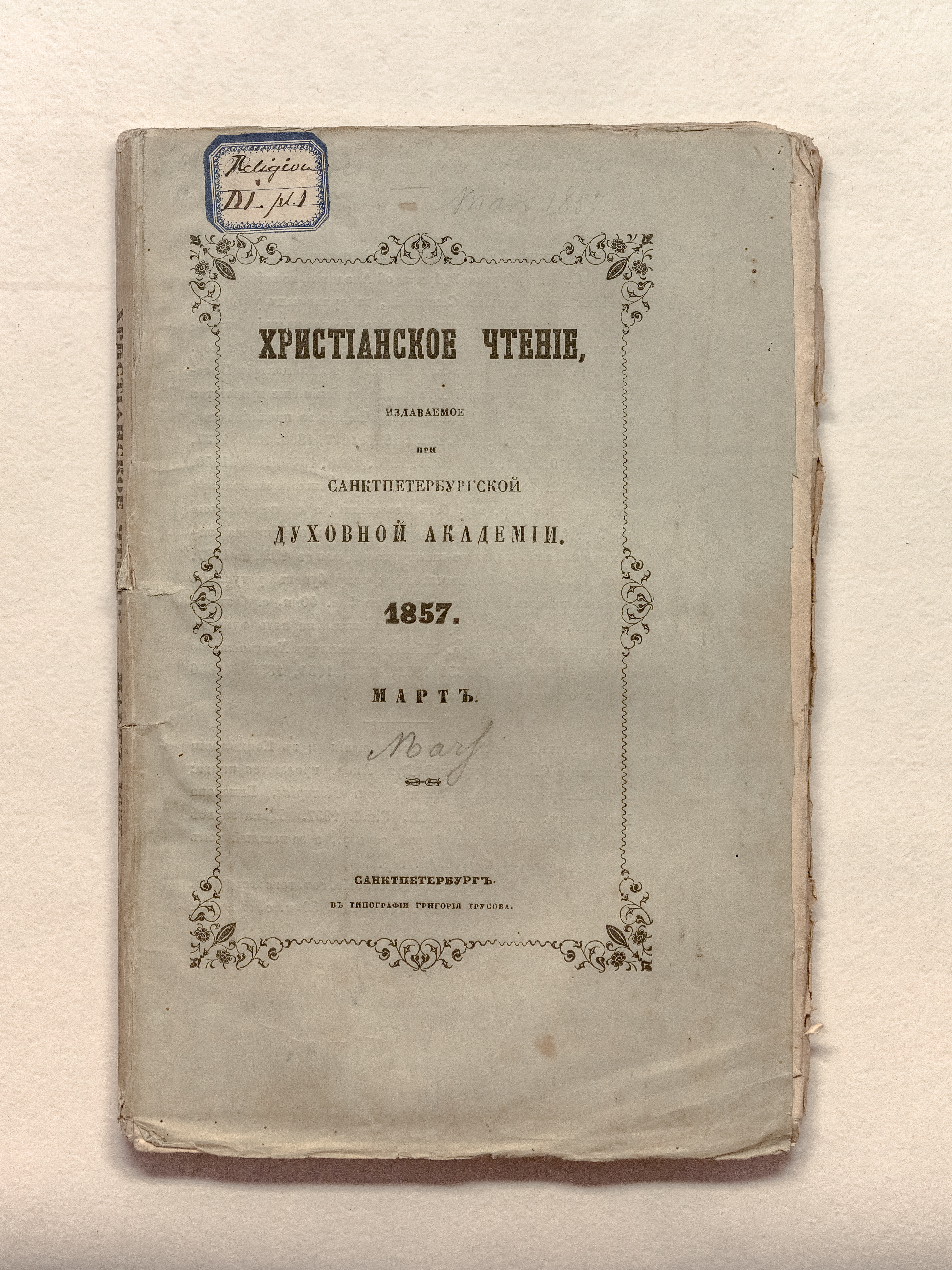 Христианское чтение, издаваемое при Санктпетербургской духовной академии