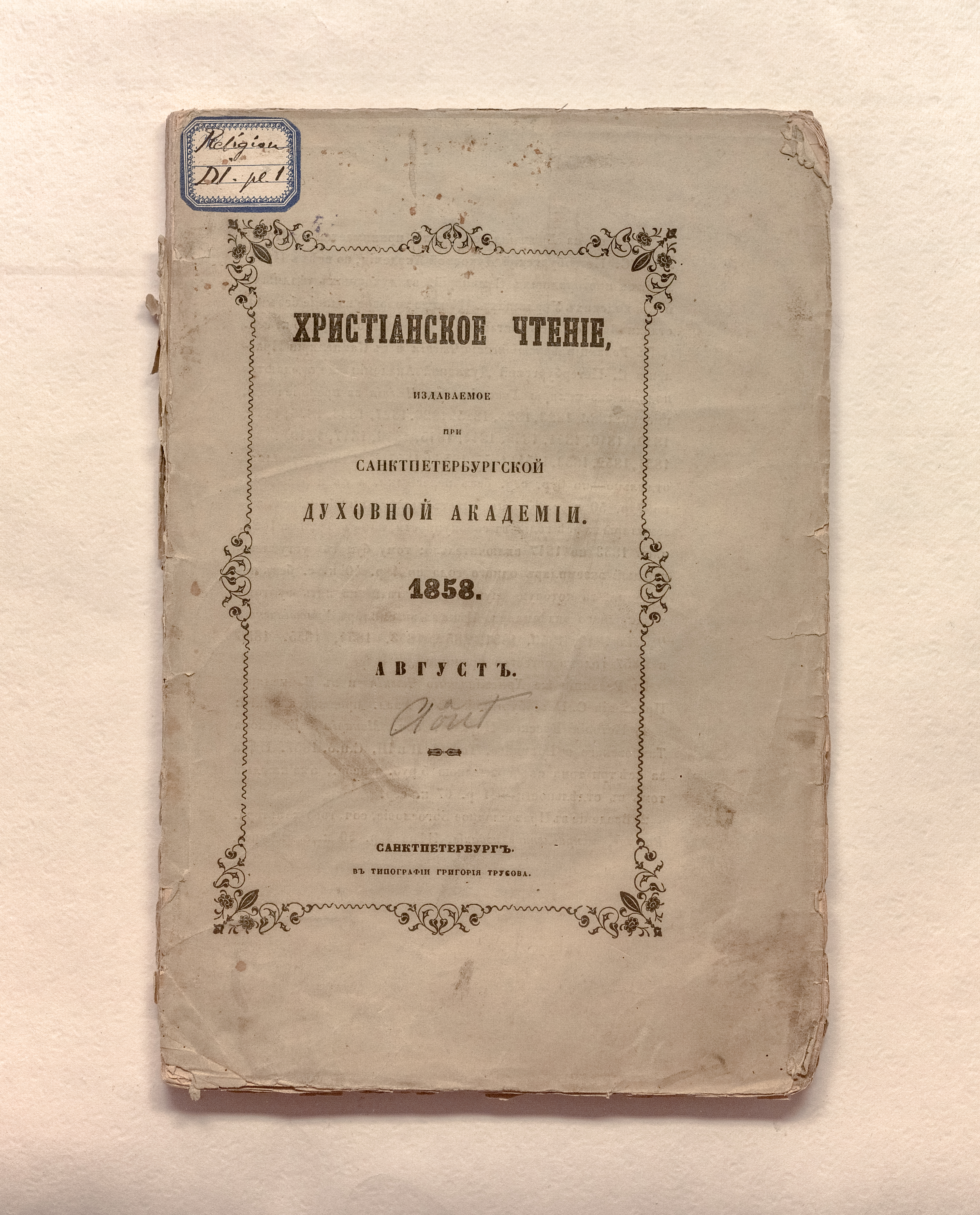 Бумажный ярлык «Religion DI pl. 1» (обложка).