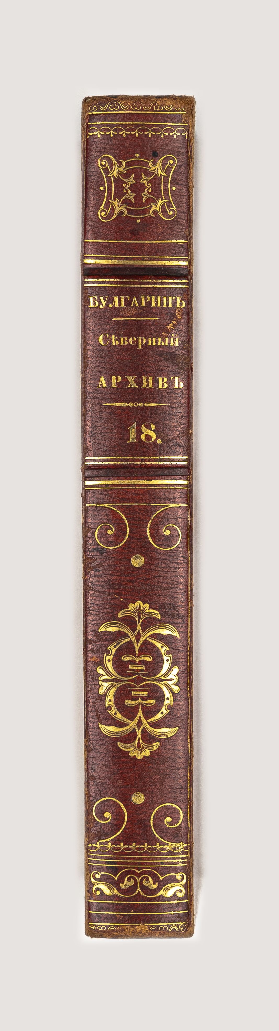 Золототисненое заглавие «Булгарин. Северный архив. 18» (на корешке перепл.).