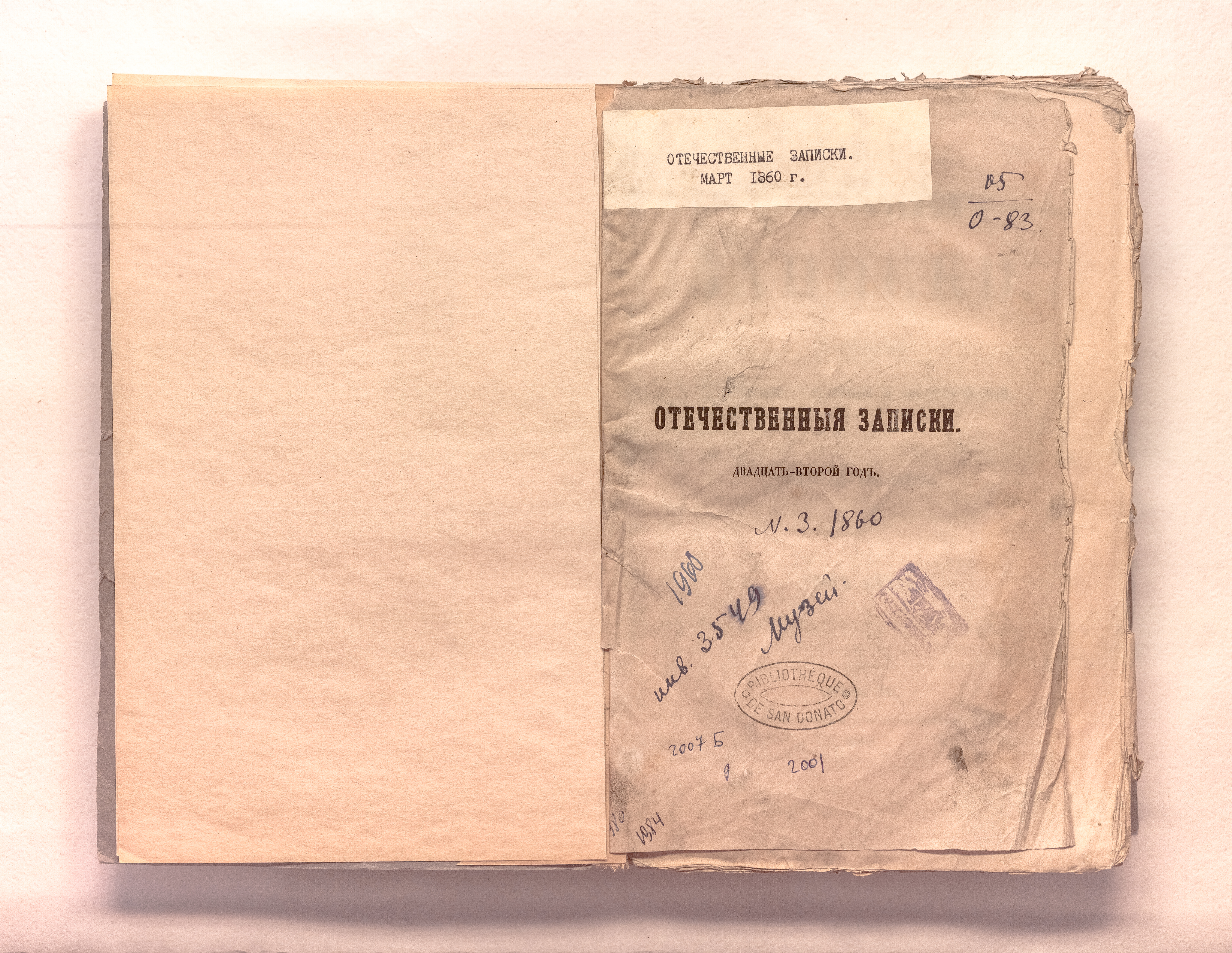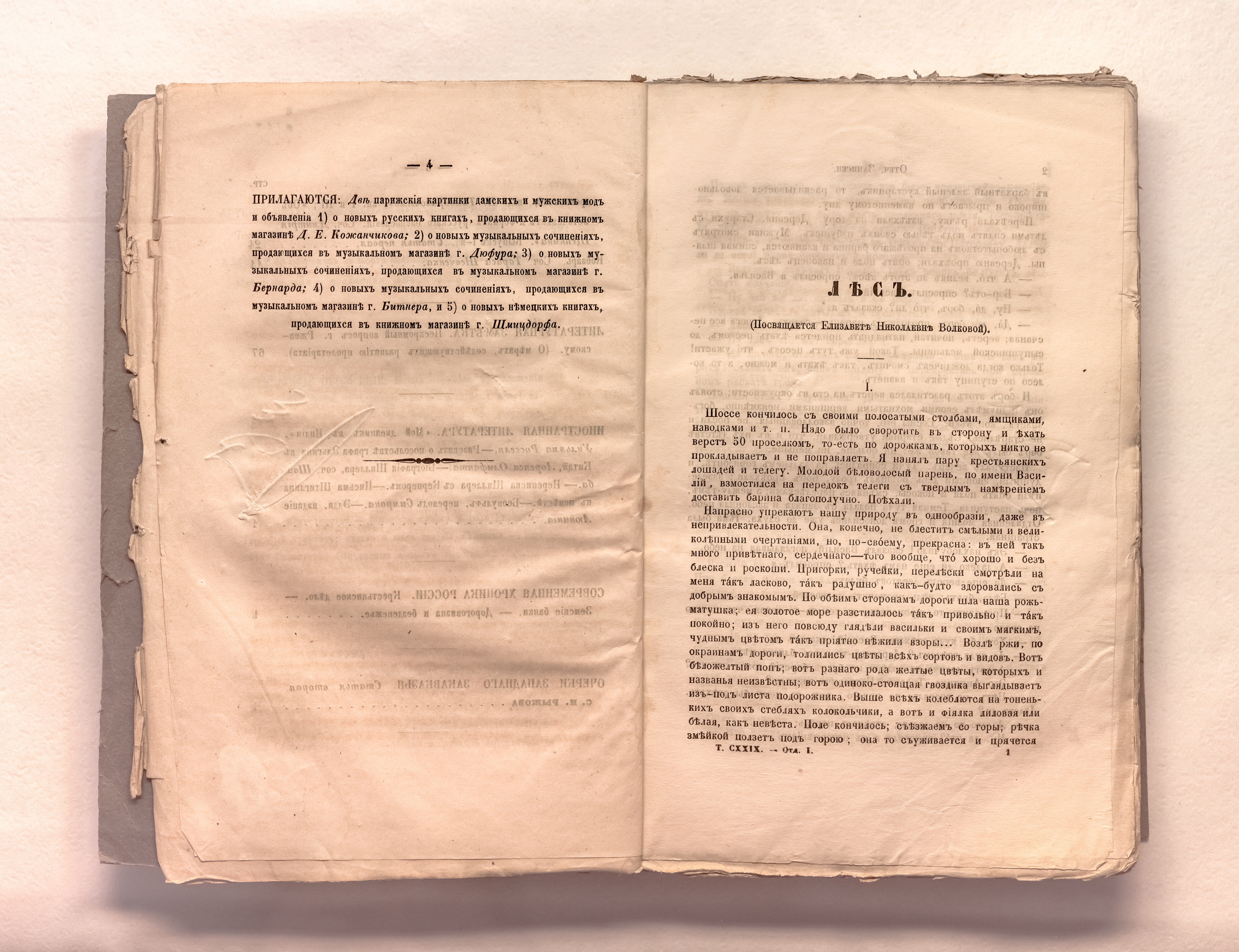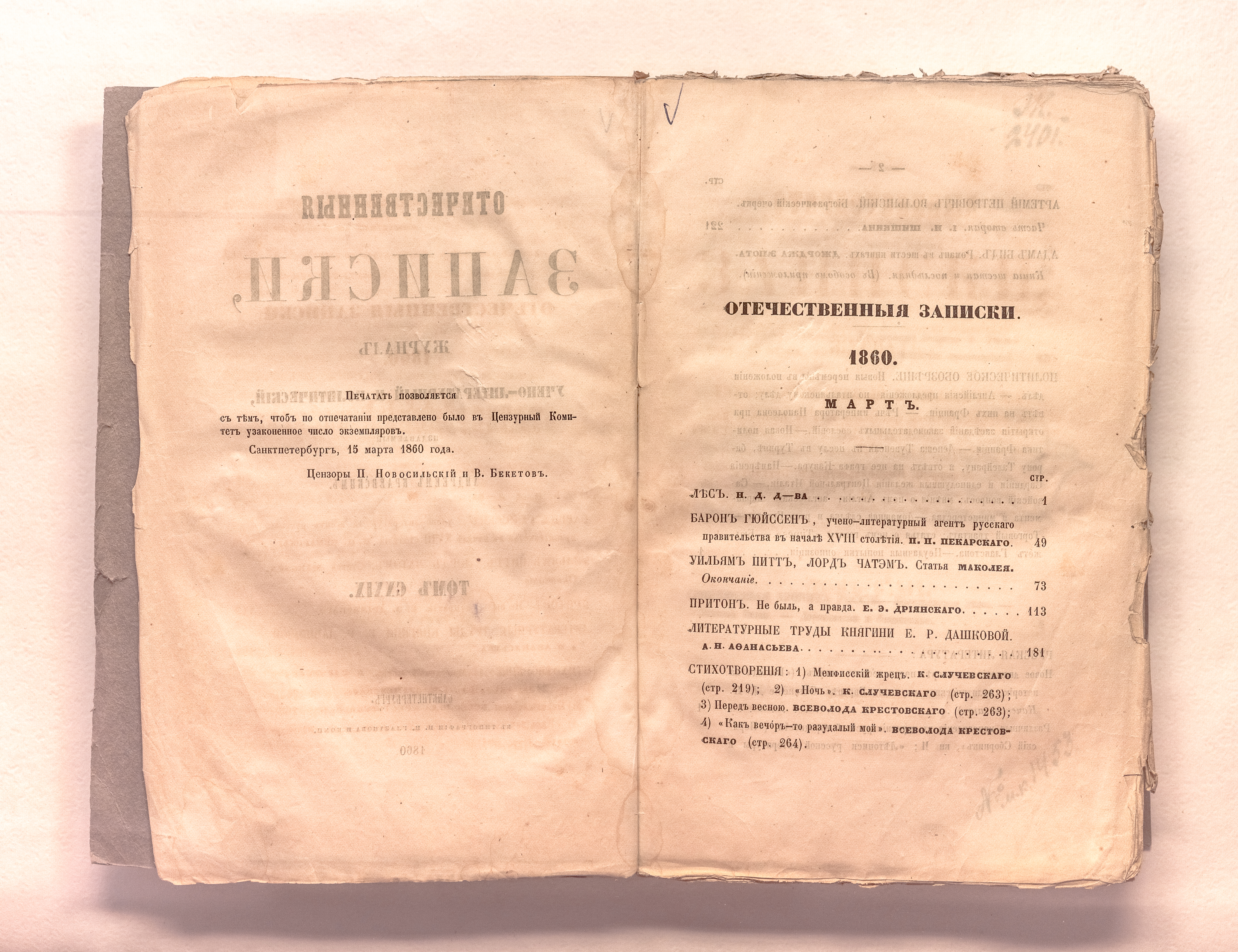 Отечественные записки : журнал учено-литературный и политический, издаваемый Андреем Краевским. – Санкт-Петербург : тип. И. И. Глазунова и комп., 1860. Т. CXXIX. Март. – разд. паг. ; 25х18 см.
