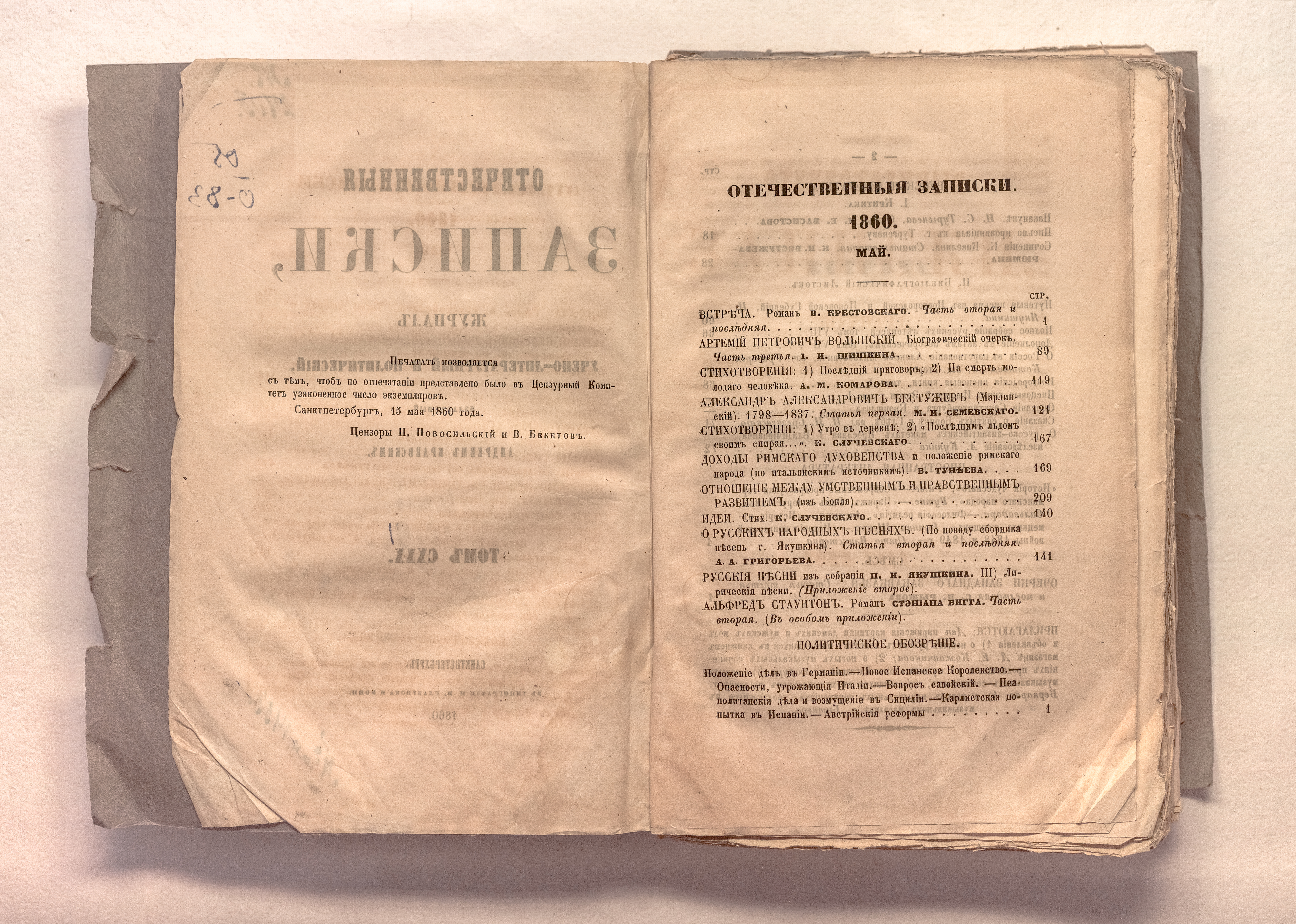 Отечественные записки : журнал учено-литературный и политический, издаваемый Андреем Краевским. – Санкт-Петербург : тип. И. И. Глазунова и комп., 1860.