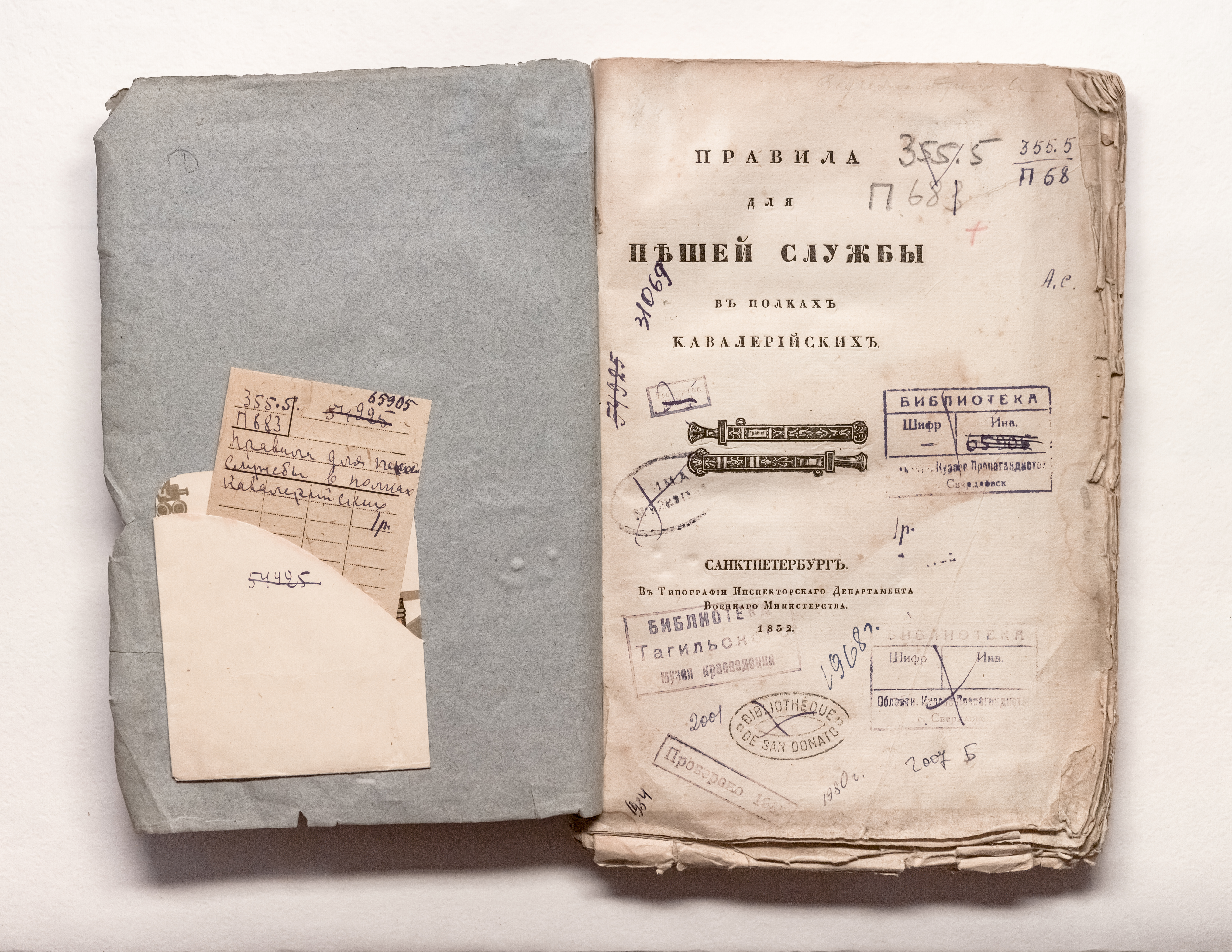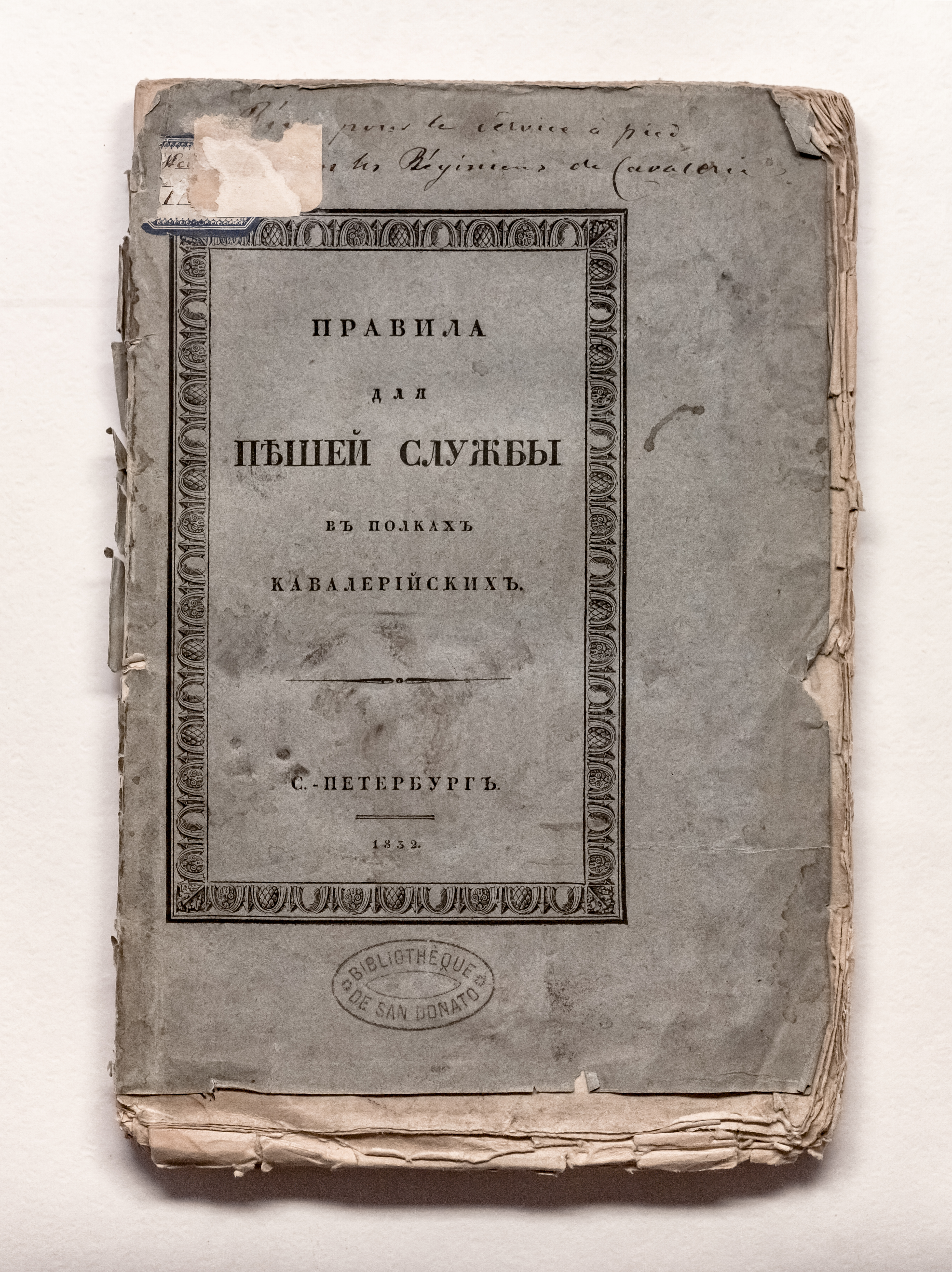 Правила для пешей службы в полках кавалерийских. – Санкт-Петербург : тип. Инспекторскаго Департамента Военнаго Министерства, 1852. – [2], 165 с. ; 26х17,5 см.