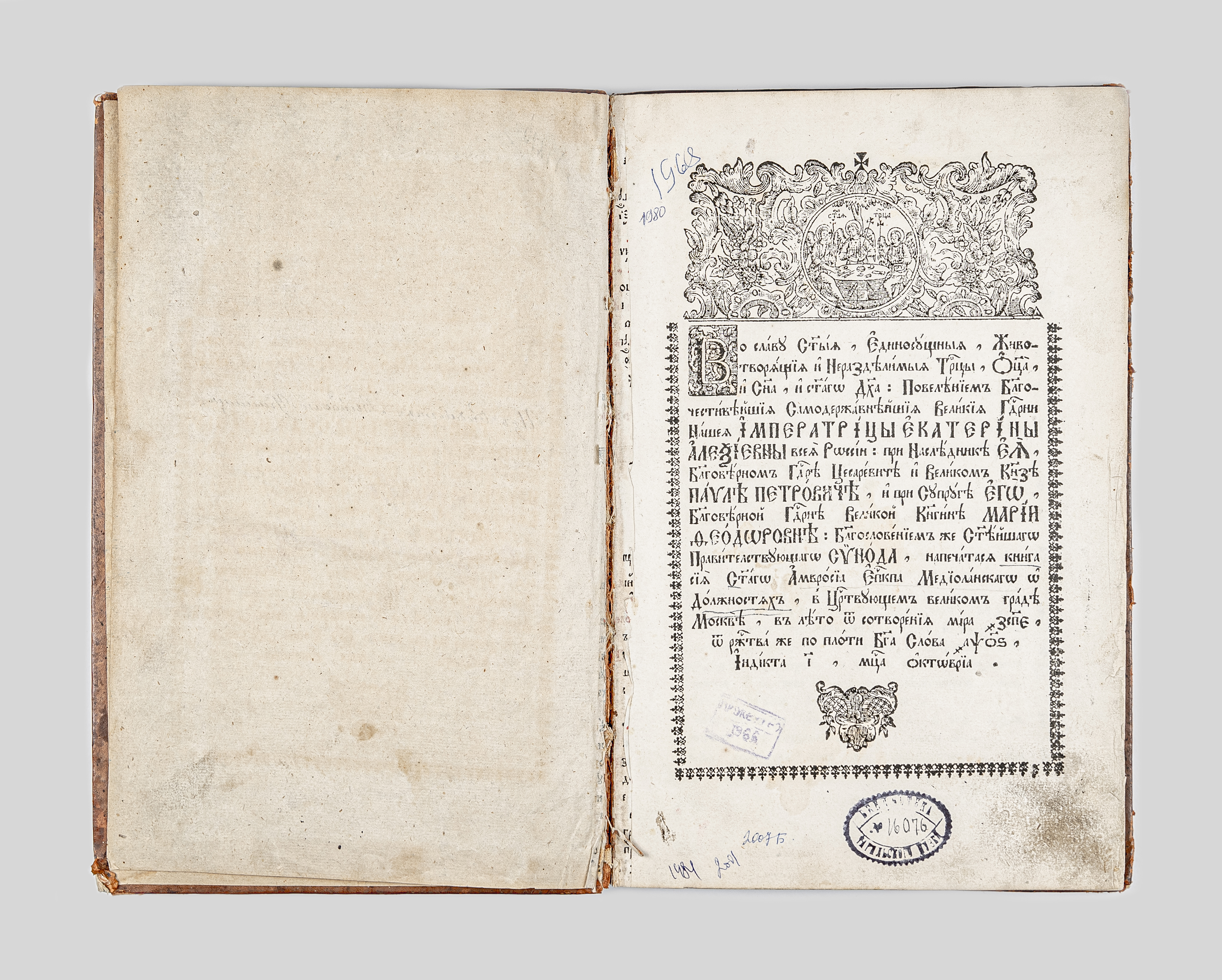 Экземпляр напечатан кириллическим шрифтом, на церковнославянском языке.