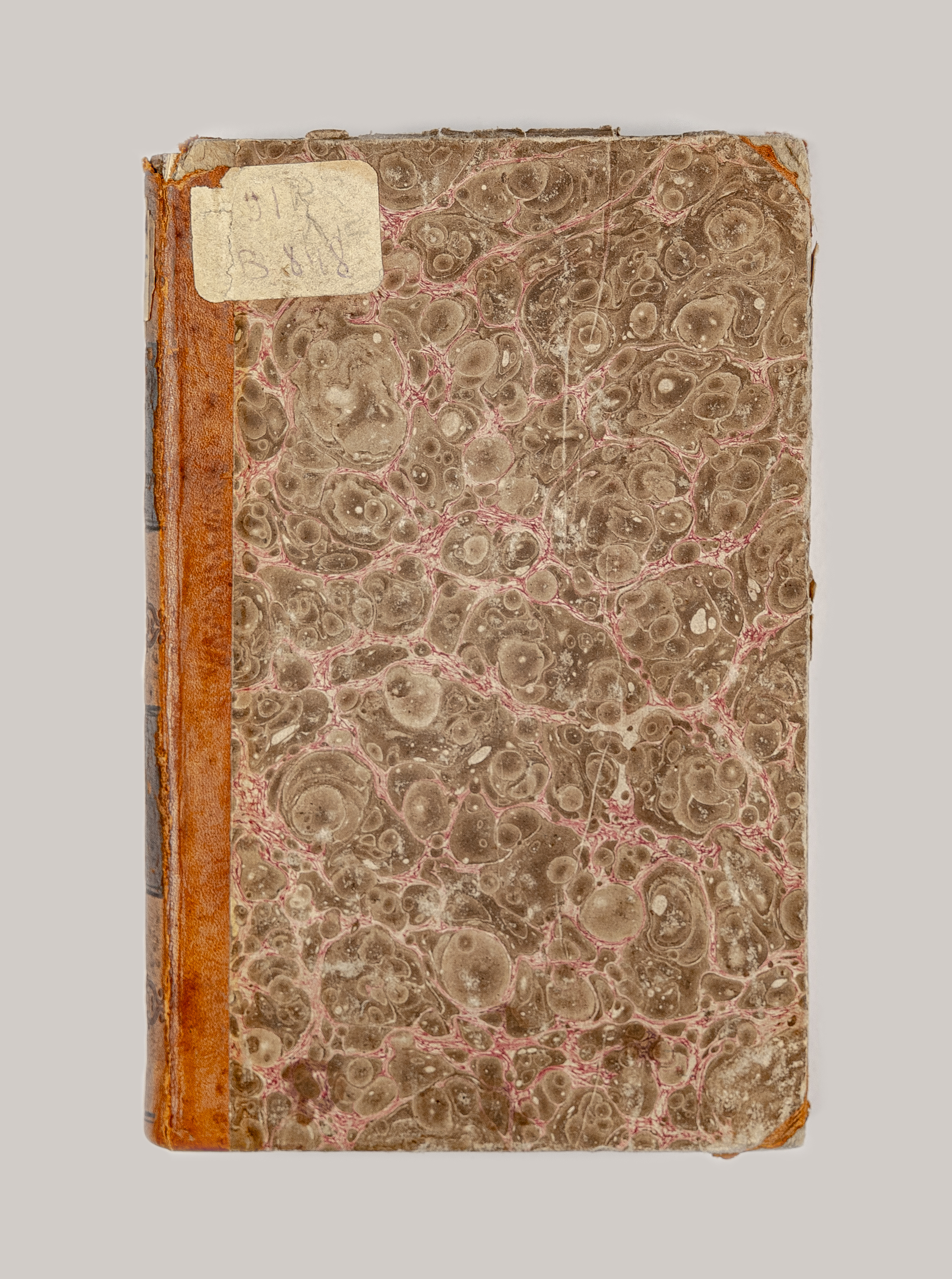 Книга в полукожаном владельческом переплете. Крышки переплета обтянуты бумагой с рисунком «под мрамор». Обрез тонированный. Бумага верже. Водяной знак (форзац).