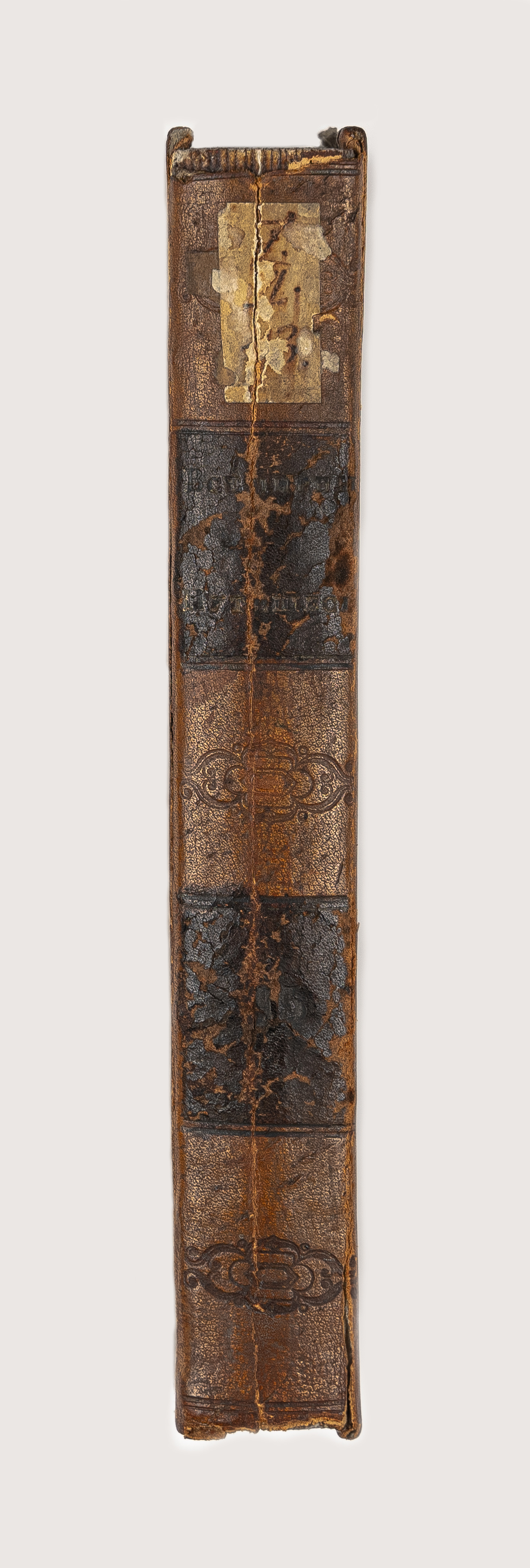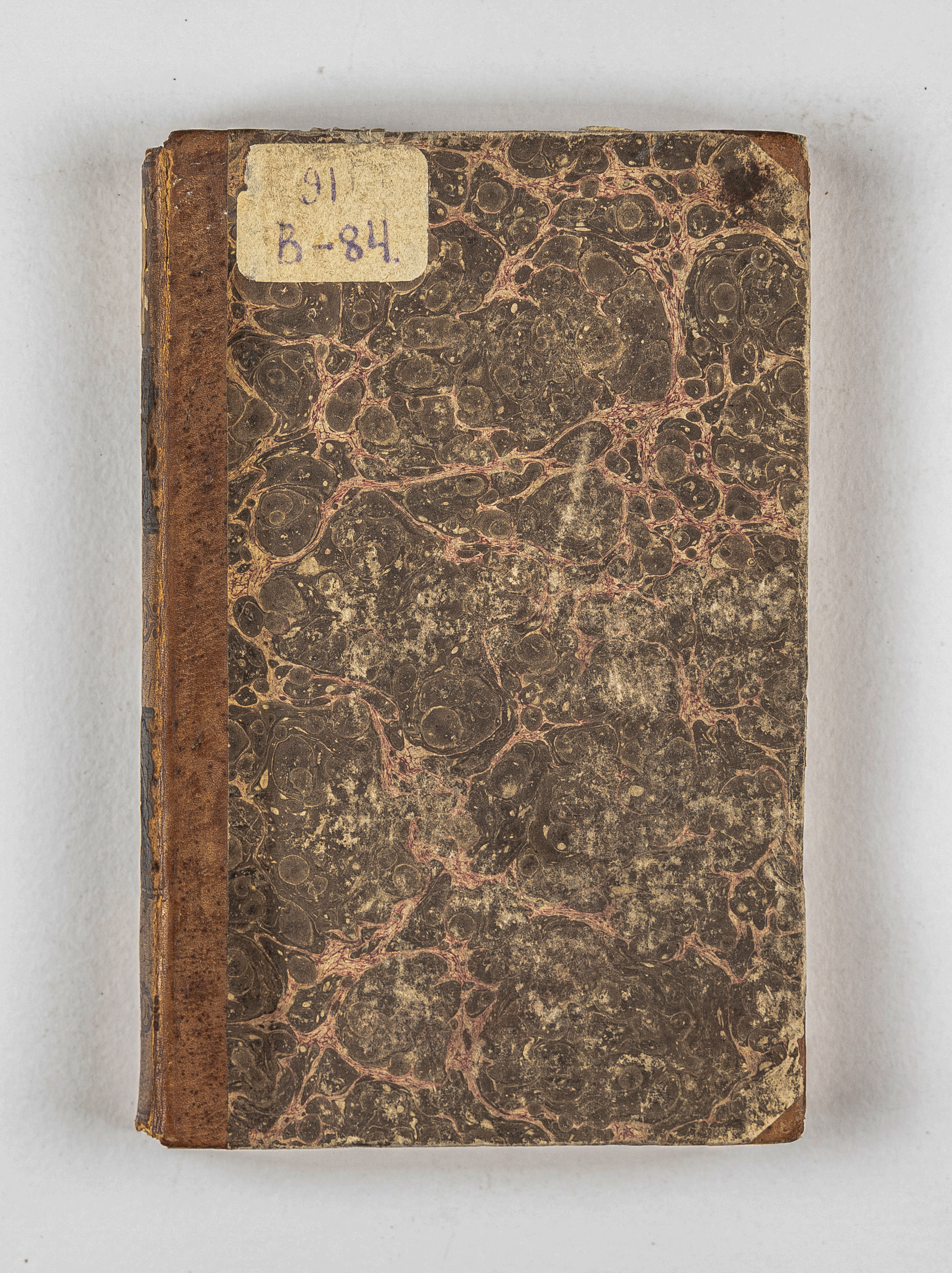 Книга в полукожаном владельческом переплете. Крышки переплета обтянуты бумагой с рисунком «под мрамор». Обрез тонированный. Бумага верже. Водяной знак (форзац).