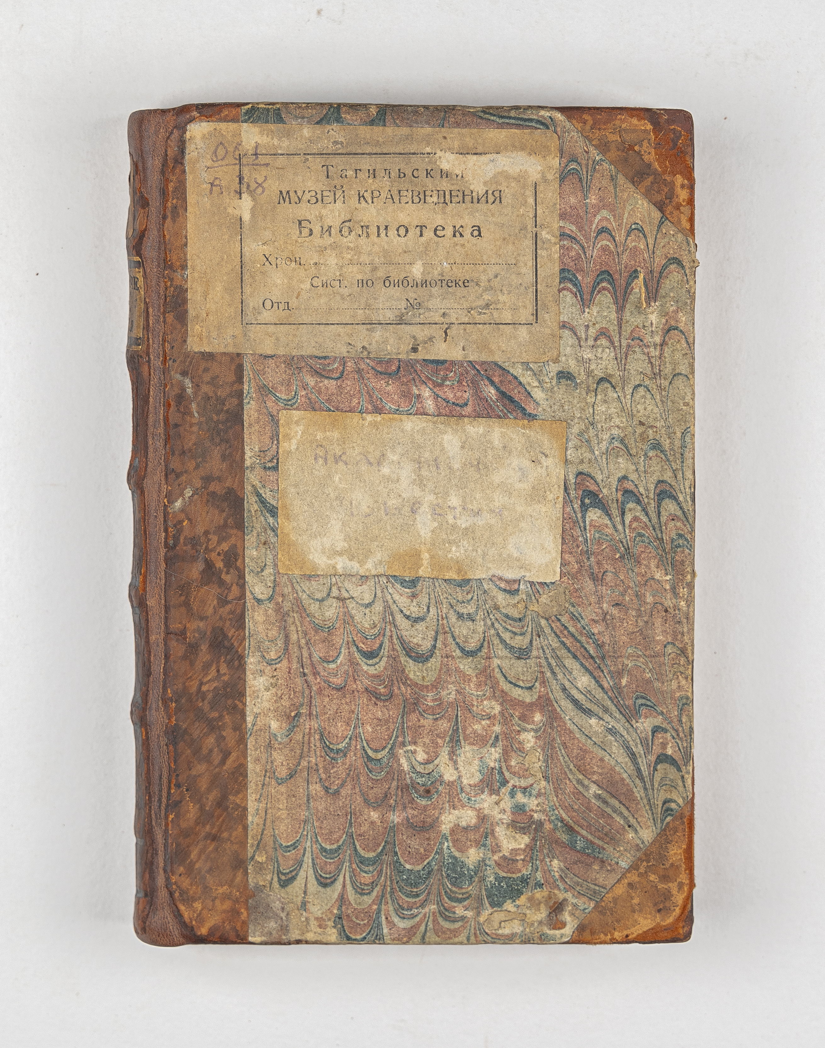 «Бiблиотека Нижне - Тагильскихъ заводовъ. Шкаф  18. Полка I. № 7» (форзац);