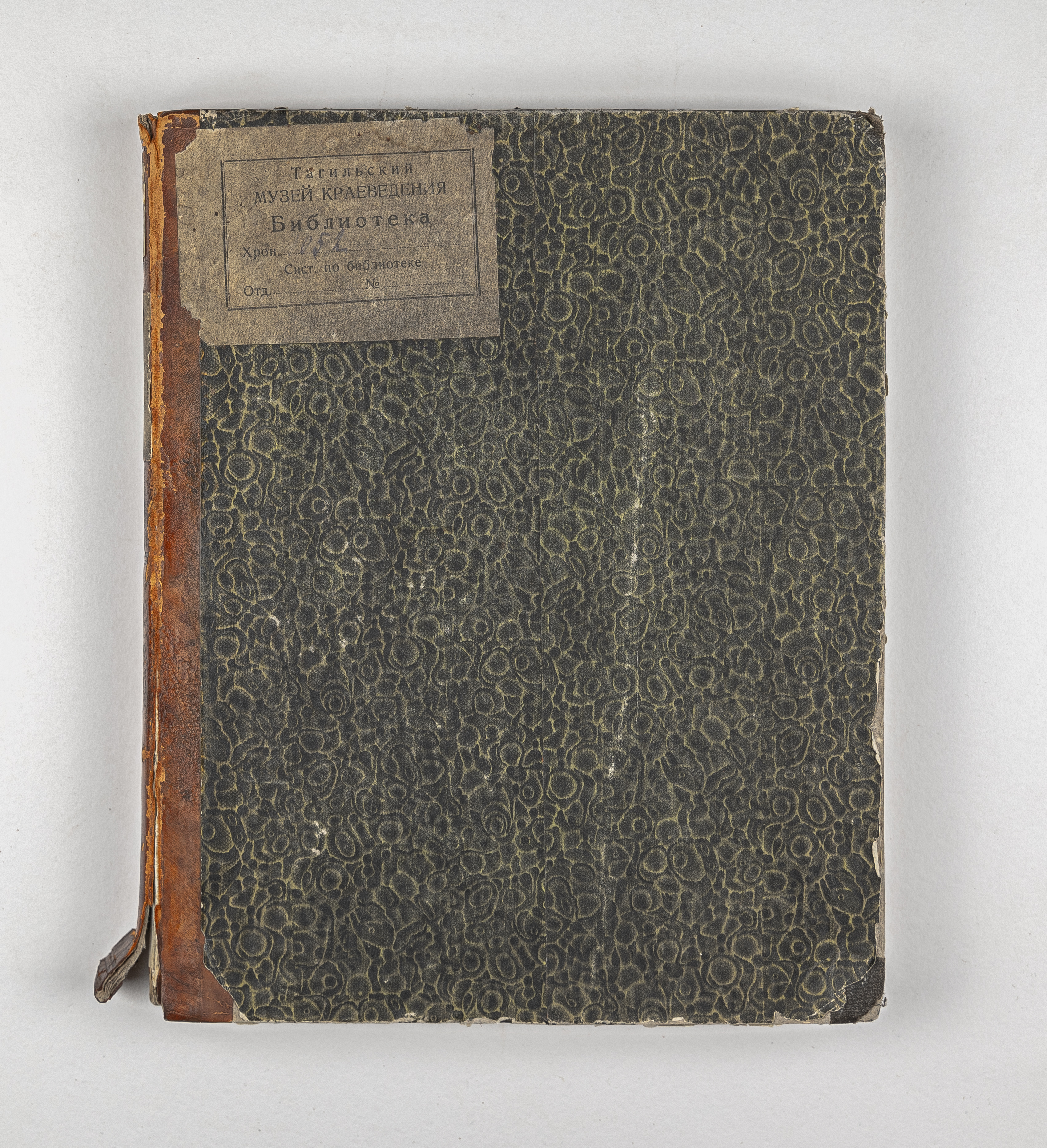 Книга в полукожаном владельческом переплете. Крышки переплета обтянуты бумагой с рисунком «под мрамор». Бумага верже.