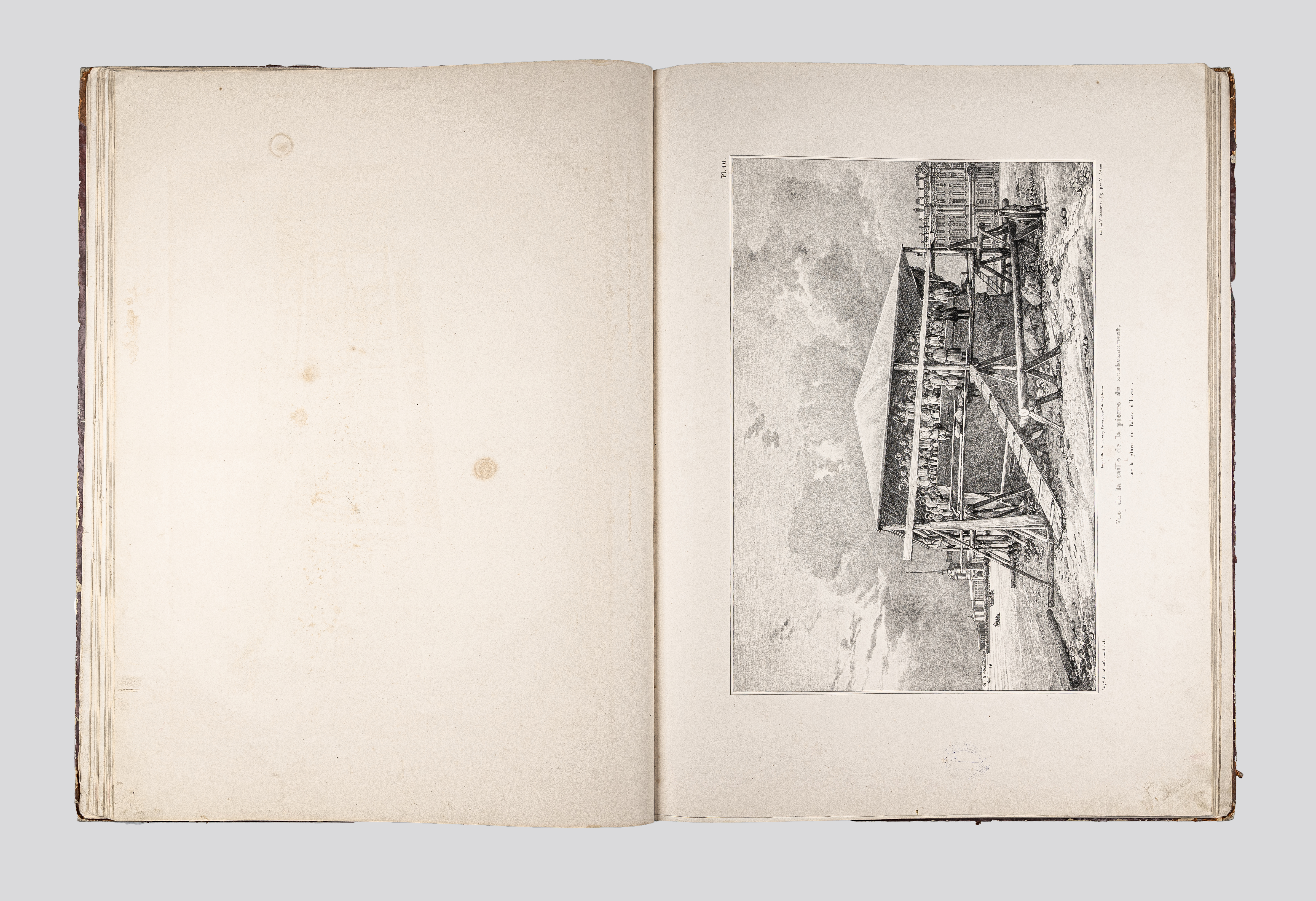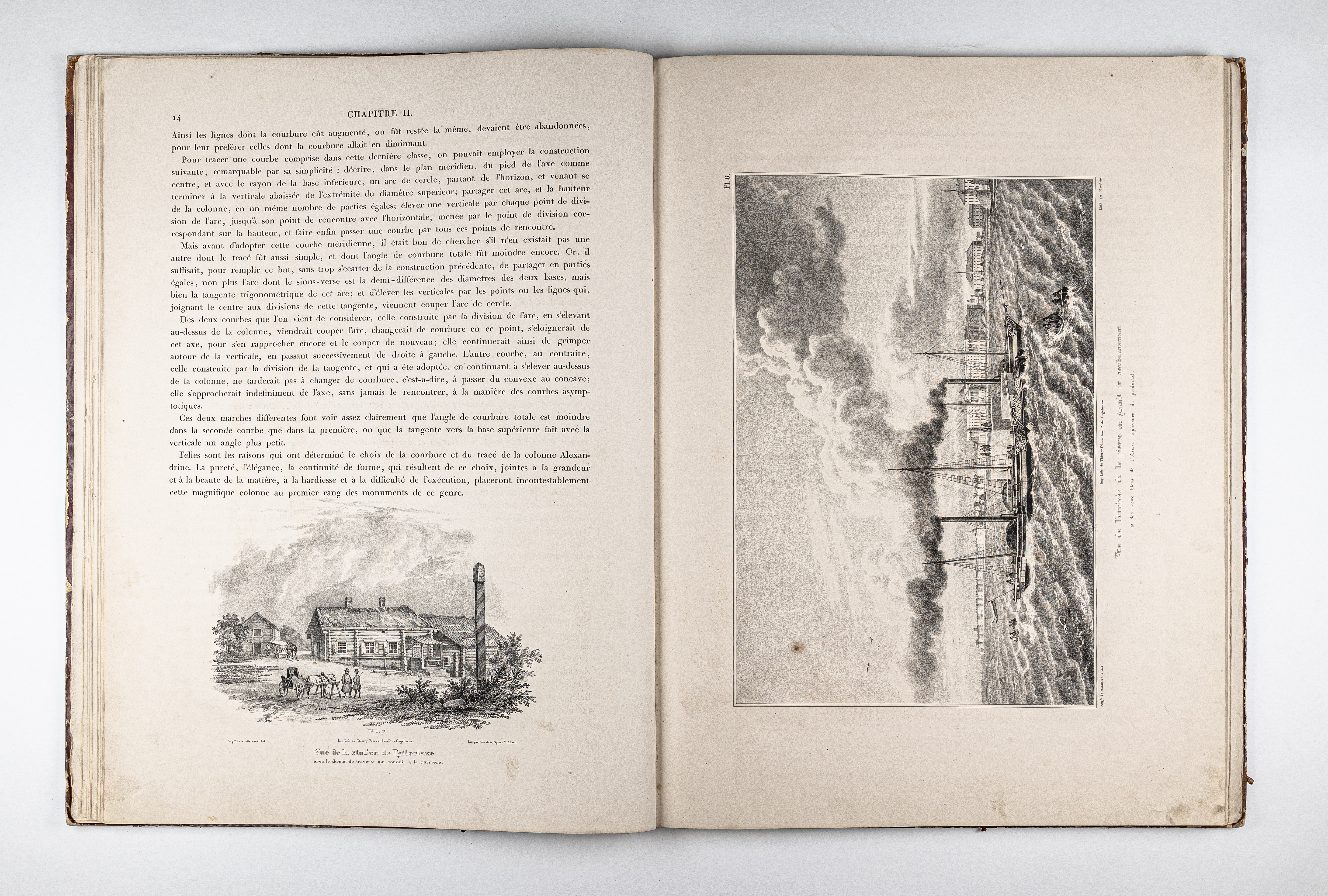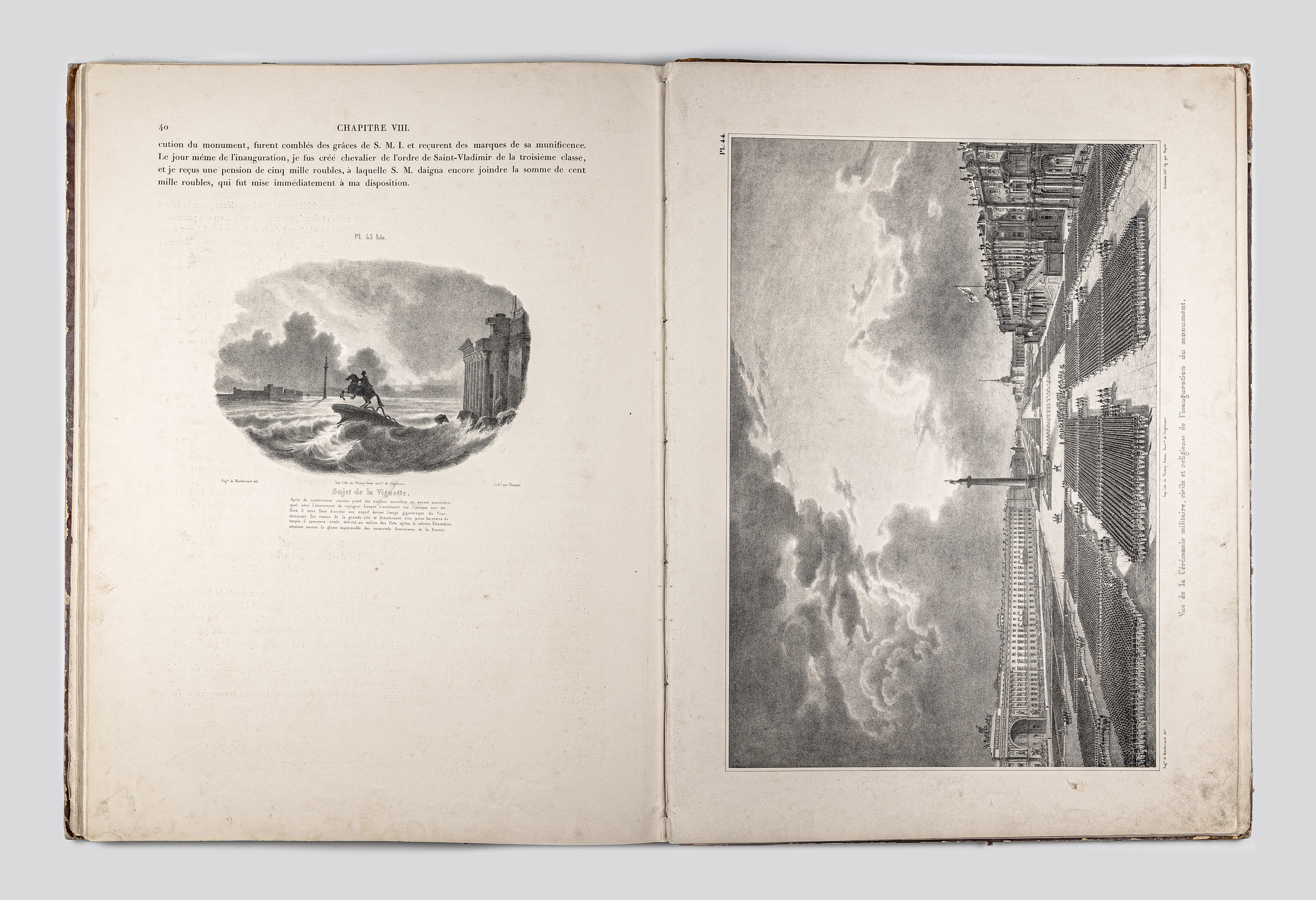 Montferrand, Henri Louis Auguste Ricard de (1786-1858). Plans et details du monument consacre a la memoire de l'empereur Alexandre, ouvrage dedie a S. M. l'empereur Nicolas Ier / par A. Ricard de Montferrand… – Paris : Thierry freres, 1836. – IV, 40, [1] p. : 48 pl. ; 61х45 cm.