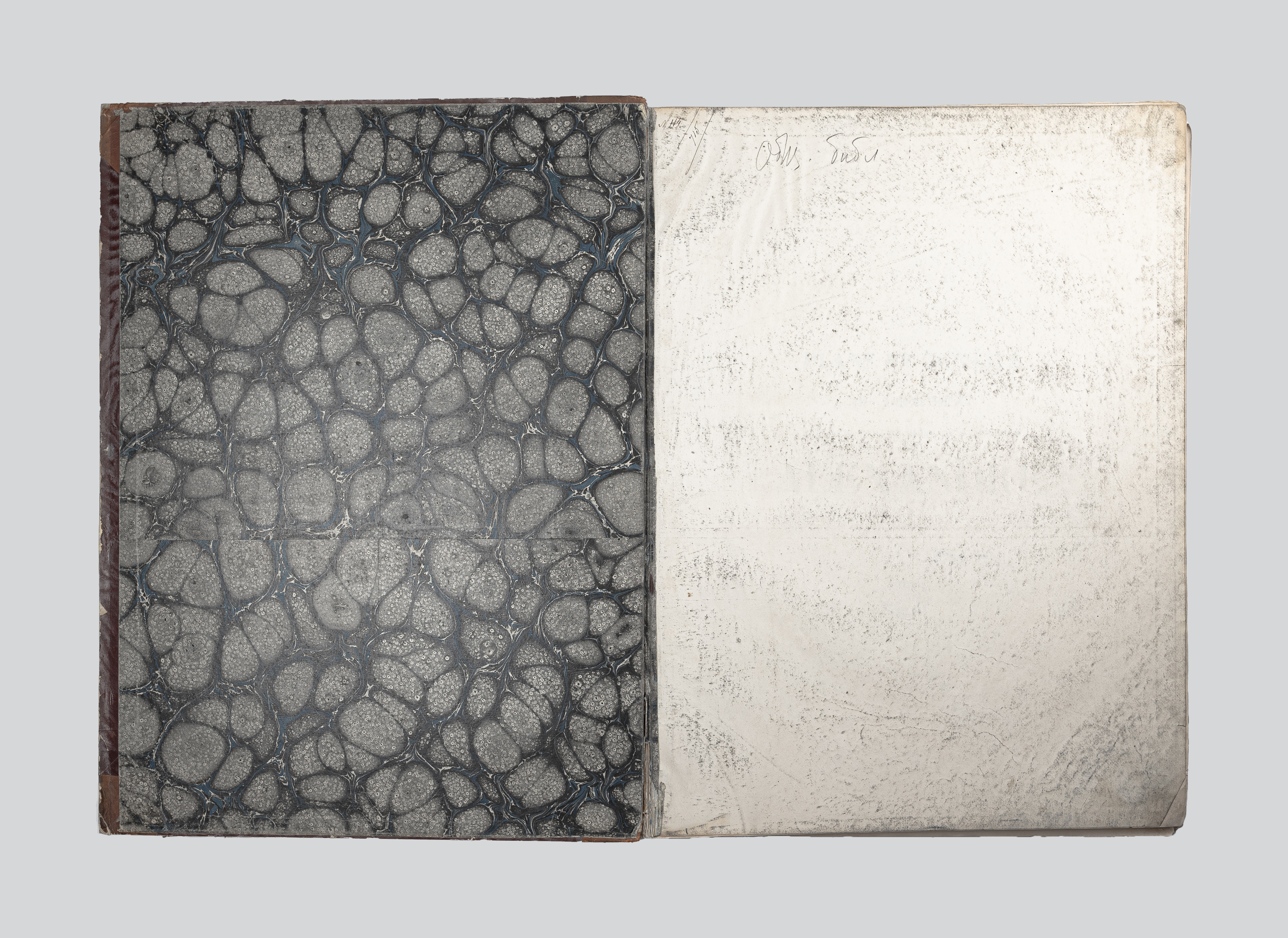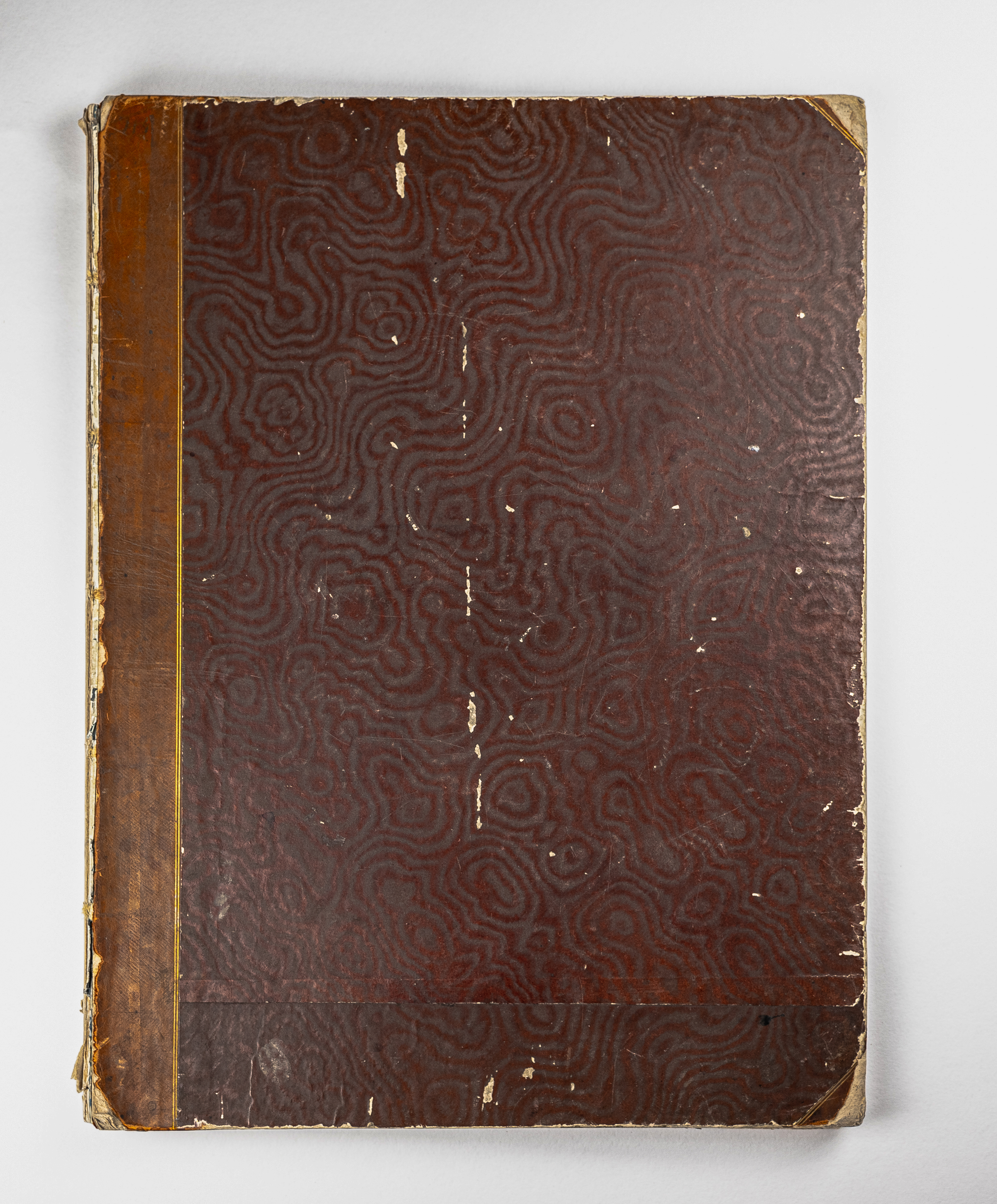 Книга в полукожаном владельческом переплете. Крышки переплета обтянуты муаровой бумагой. Форзацы украшены мраморной бумагой.