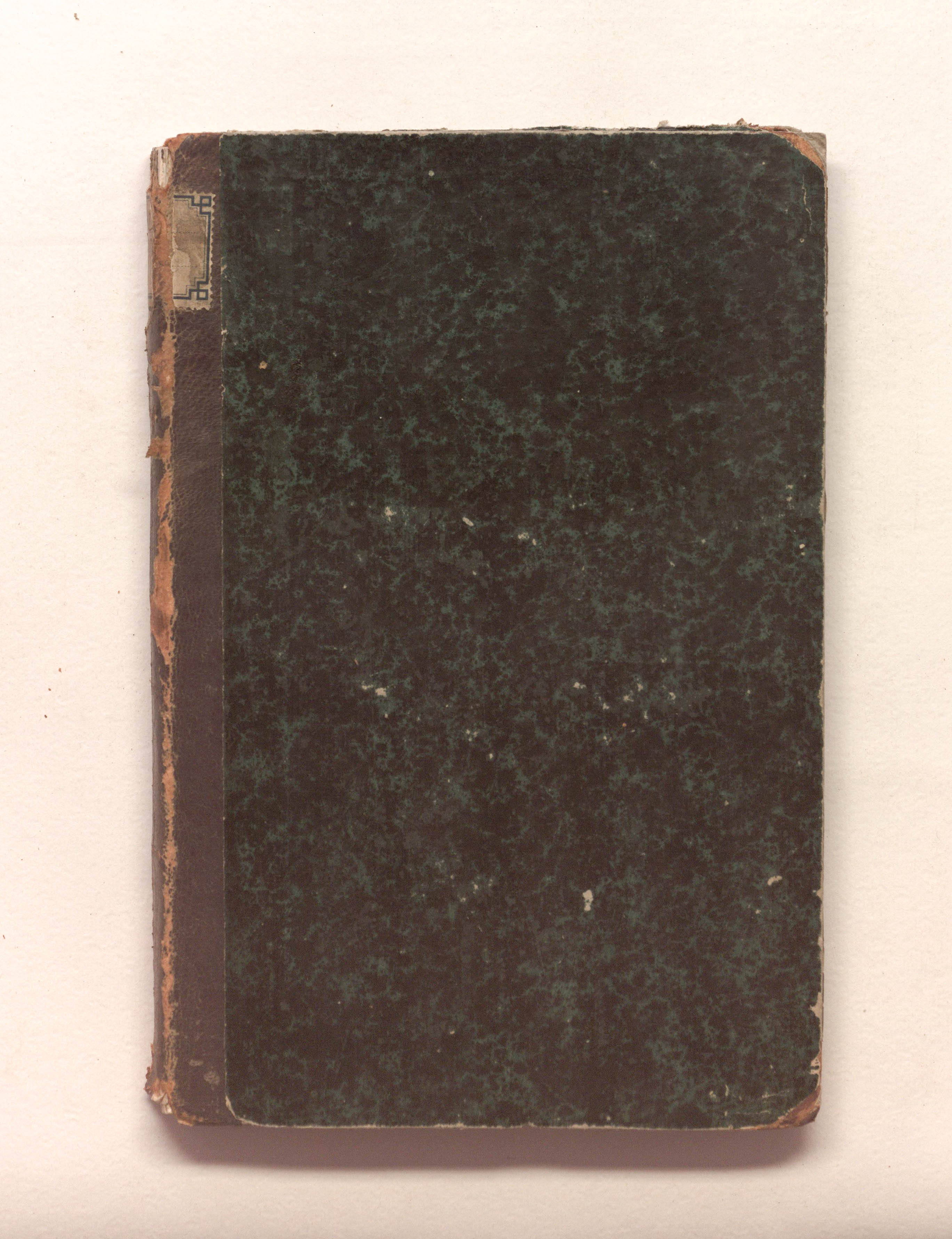 Книга в полукожаном владельческом переплете. Крышки переплета обтянуты бумагой с рисунком «под мрамор».