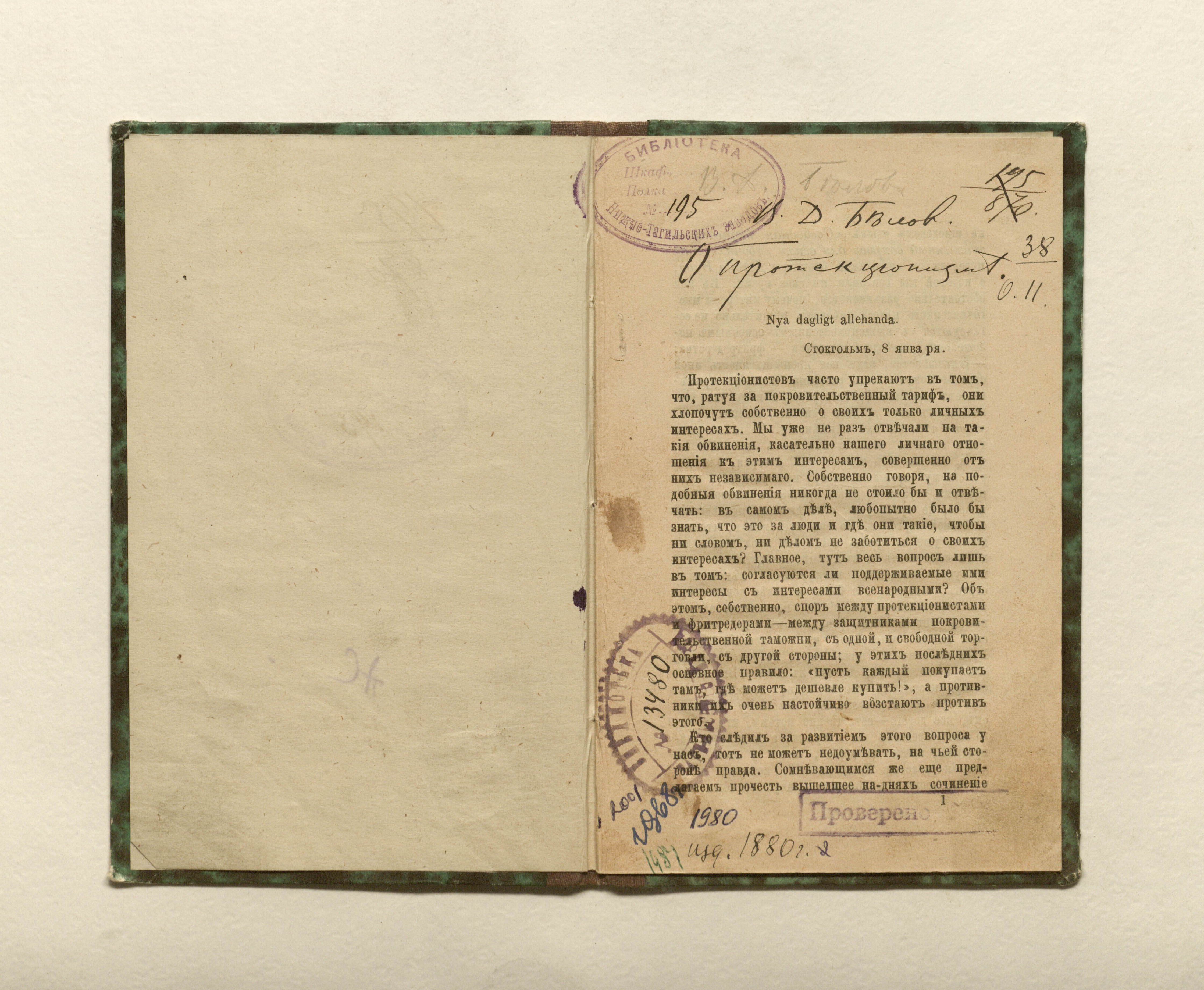 Белов, Василий Дмитриевич. О протекционизме / В. Д. Белов. — Санкт-Петербург : [б. и.], 1880. — 16 с. ; 17,5х11 см.