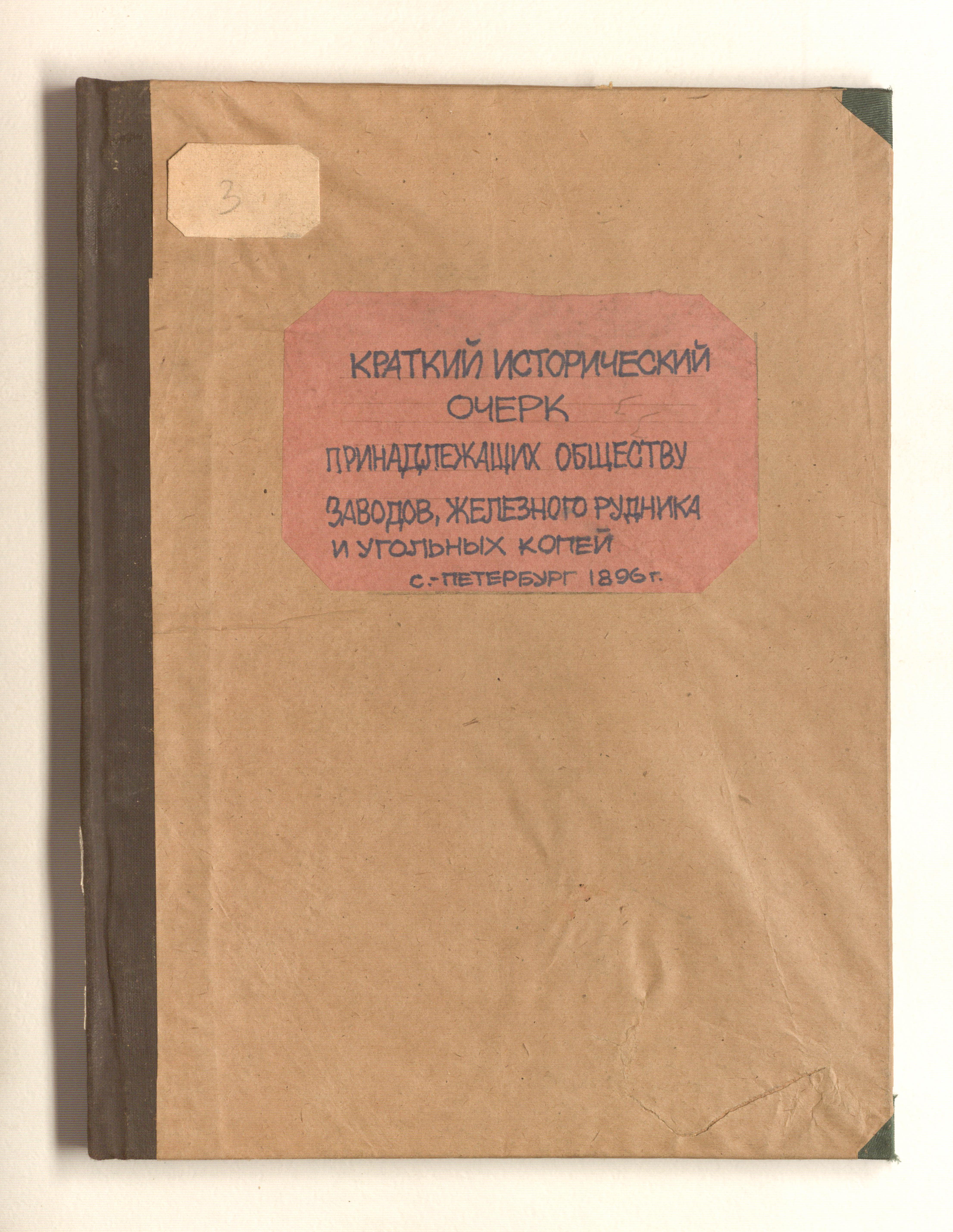 Краткий исторический очерк принадлежащих Обществу заводов, железного рудника и угольных копей / Акционерное общество Брянского рельсопрокат., железоделат., сталелитейн. и мех. з-да. — Санкт-Петербург : Правление общества, 1896. — 88 с. ; 30,5х23 см.