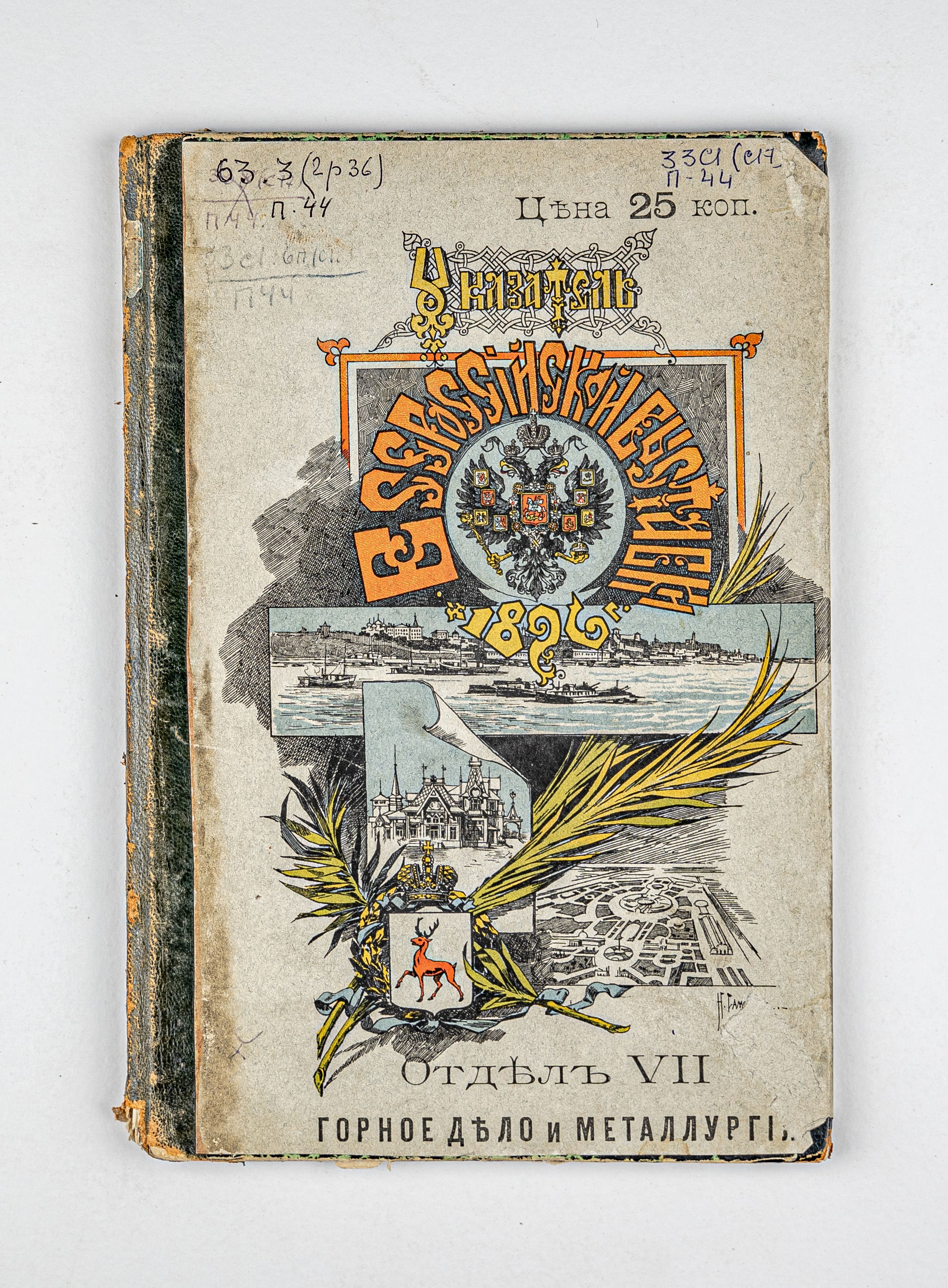 Подробный указатель по отделам Всероссийской промышленной и художественной выставки 1896 г. в Нижнем Новгороде : отдел VII. Горное дело и металлургия / сост. горн.-инж. С. К. Кулибин. – Москва : Рус. т-во печ. и изд. дела, 1896. – 51, 57, II с. ; 22,5х15,5 см.