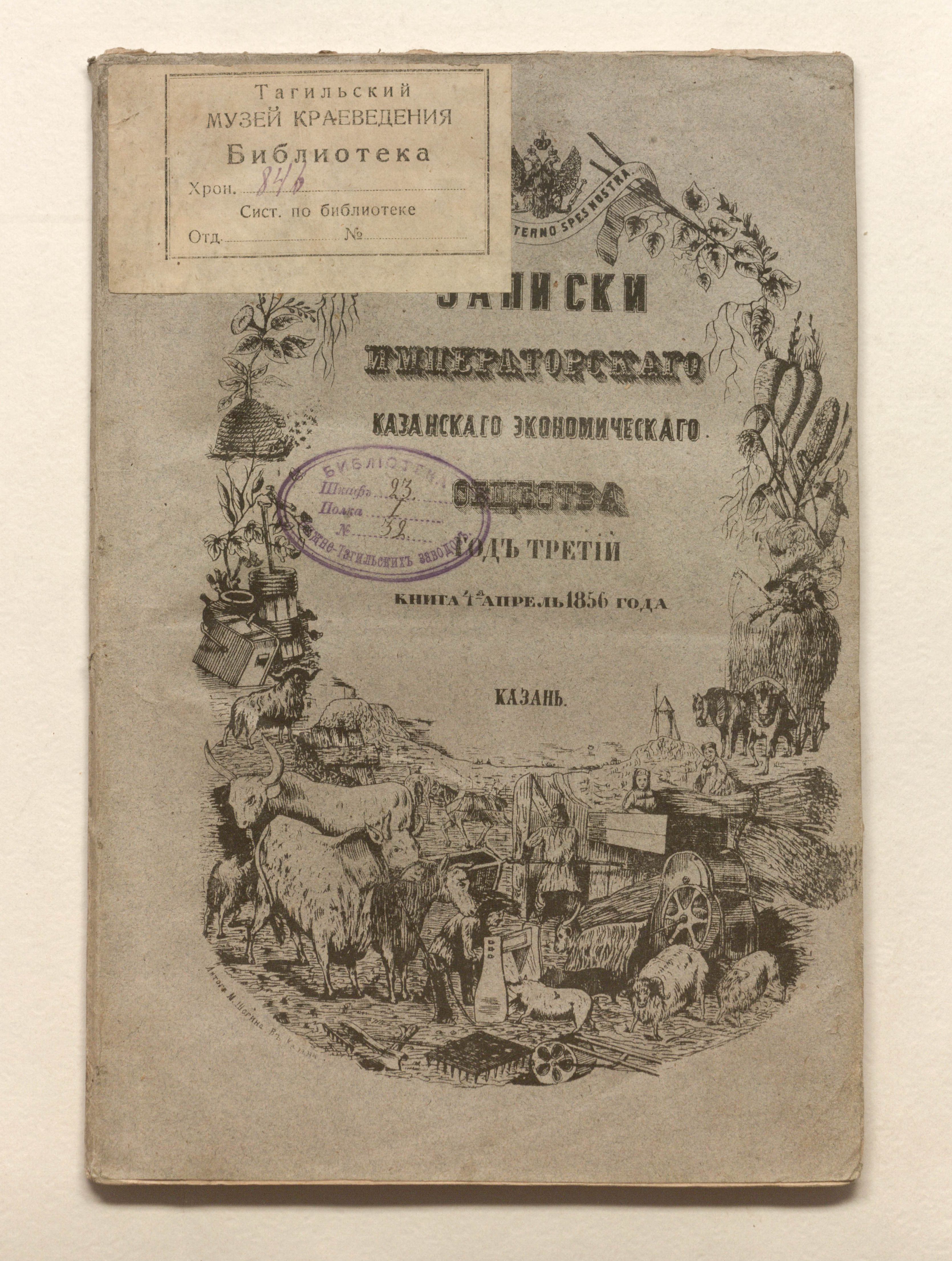 «Библиотека Нижне-Тагильских заводов. Шкаф 23. Полка I. № 32» (обложка).
