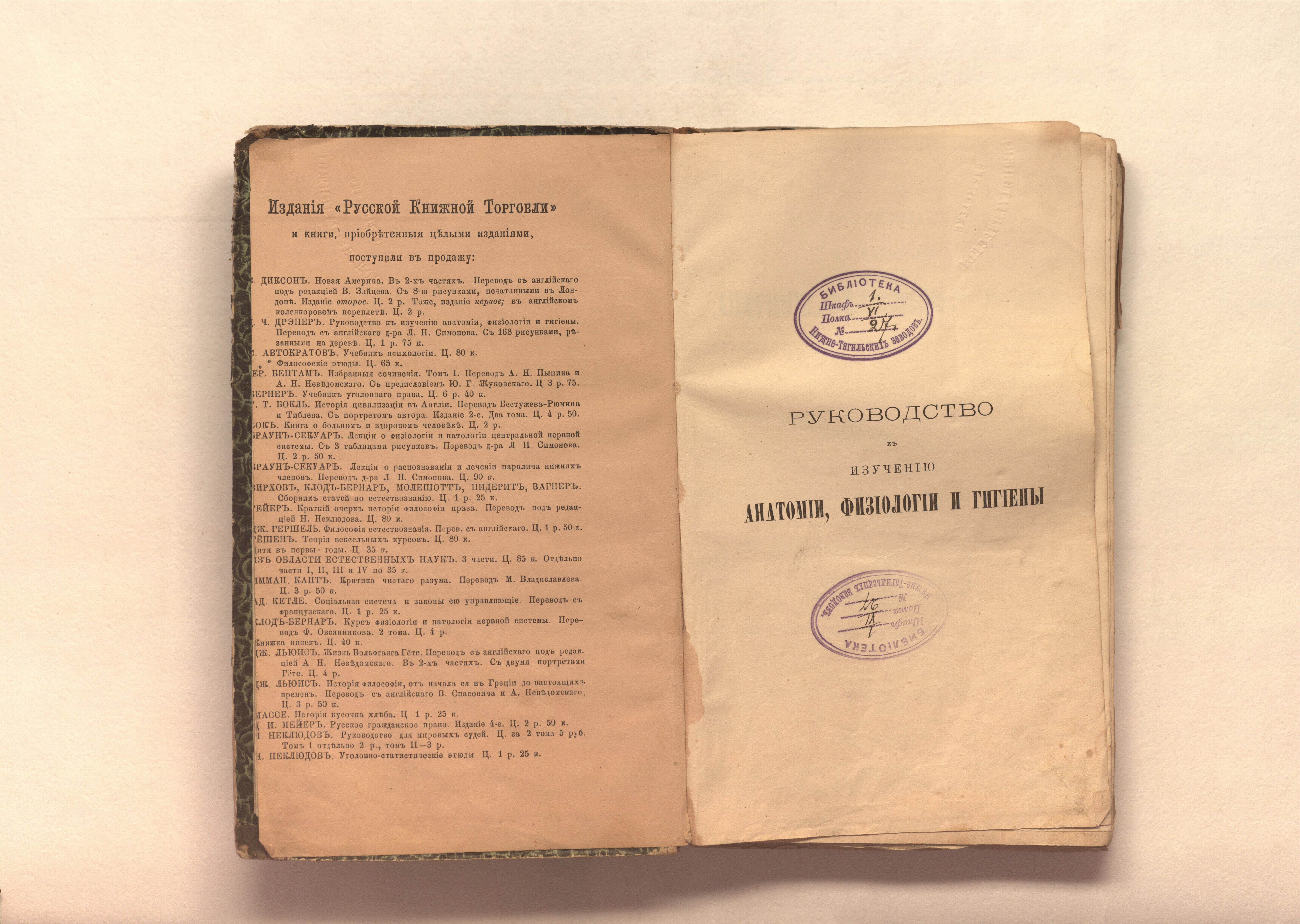 Руководство к изучению анатомии, физиологии и гигиены для школ и домашнего обучения : с 168 политипажами / [Соч.] Джона Ч. Дрэпера, проф. естеств. истории и физиологии в "College of the City". — Санкт-Петербург : типография Н. Тиблена и Комп., 1868. — [4], II, 344 с. : ил. ; 24х15,5 см.