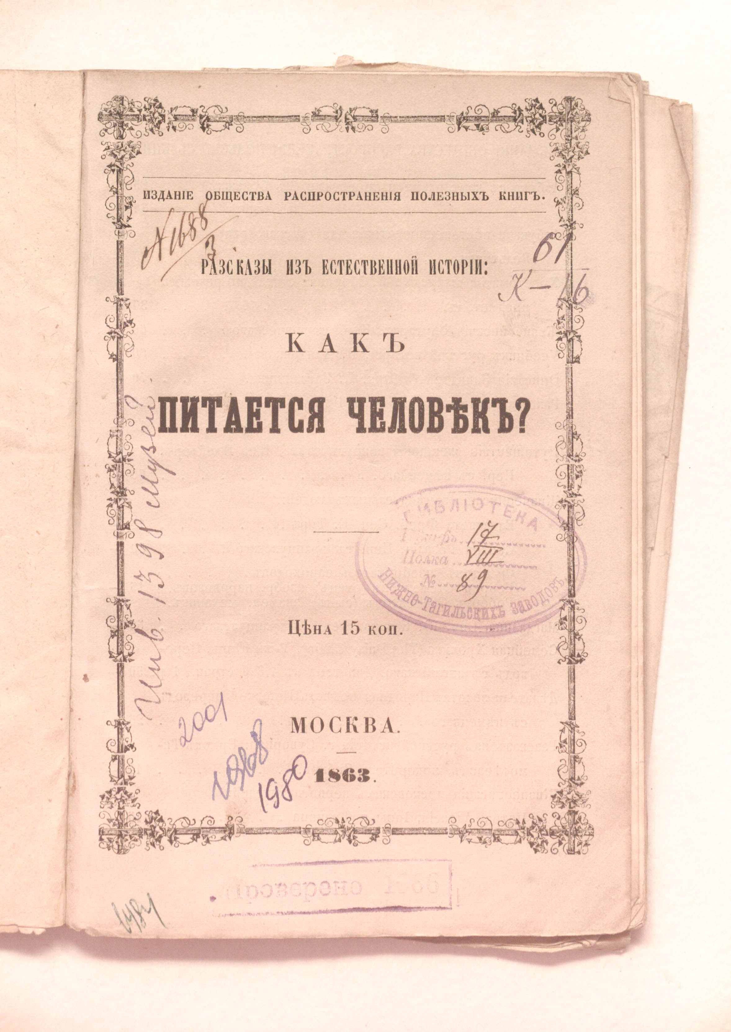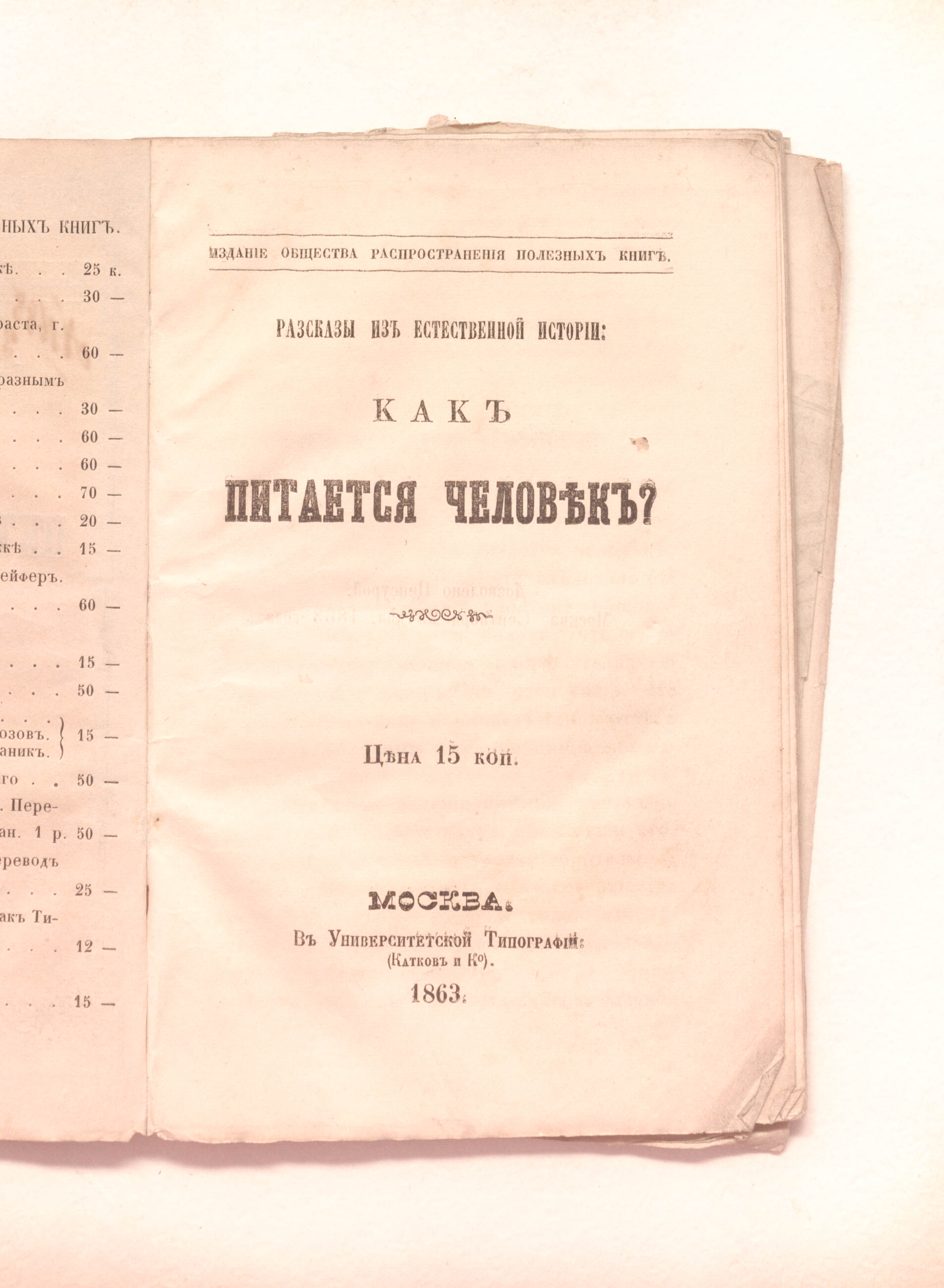 Разсказы из естественной истории : как питается человек. — Москва : В Университетской типографии, 1863. — 66, V с. : 1 л. черт. ; 17х11,5 см.