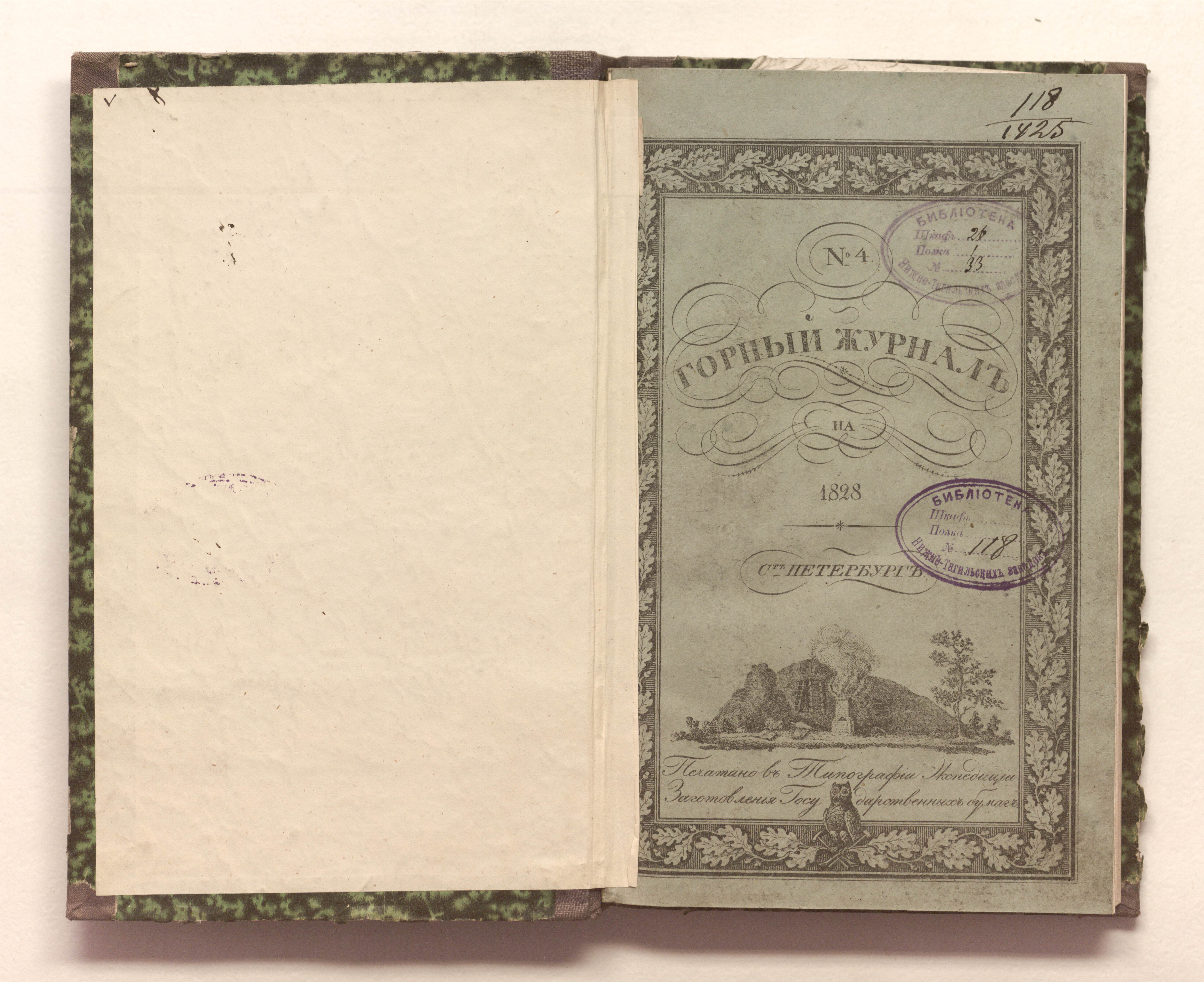 Горный журнал или Собрание сведений о горном и соляном деле, С присовокуплением новых открытий по наукам, к сему предмету относящимся. – Санкт-Петербург : печатано в Военной типографии Главнаго штаба его императорскаго величества ; в типографии Экспедиции заготовления государственных бумаг, 1825–1918.