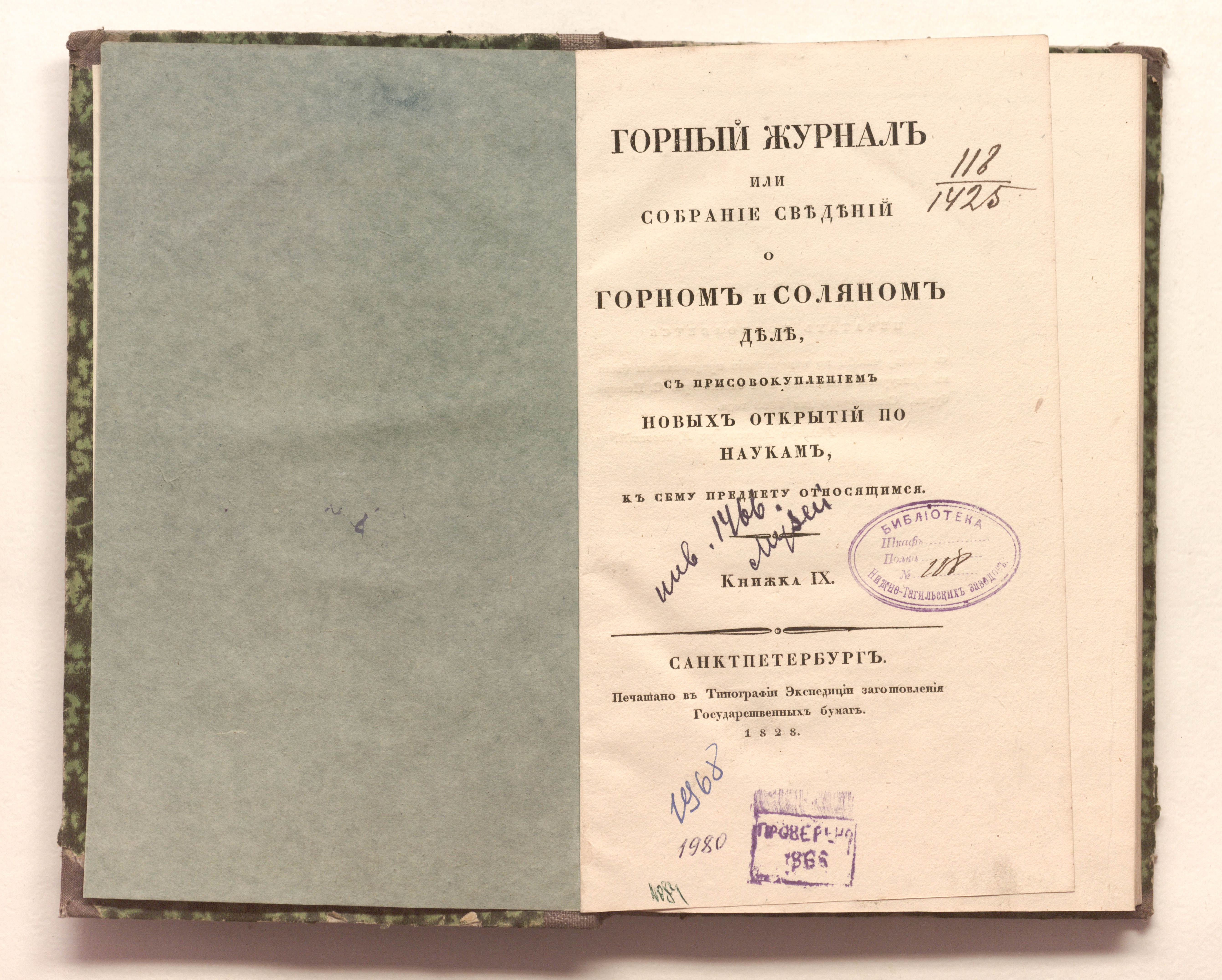 Кн. 9. – Санкт-Петербург : печатано в типографии Экспедиции заготовления Государственных бумаг, 1828. – [4], 189 с. : 1 л. черт. ; 24х14,5 см.