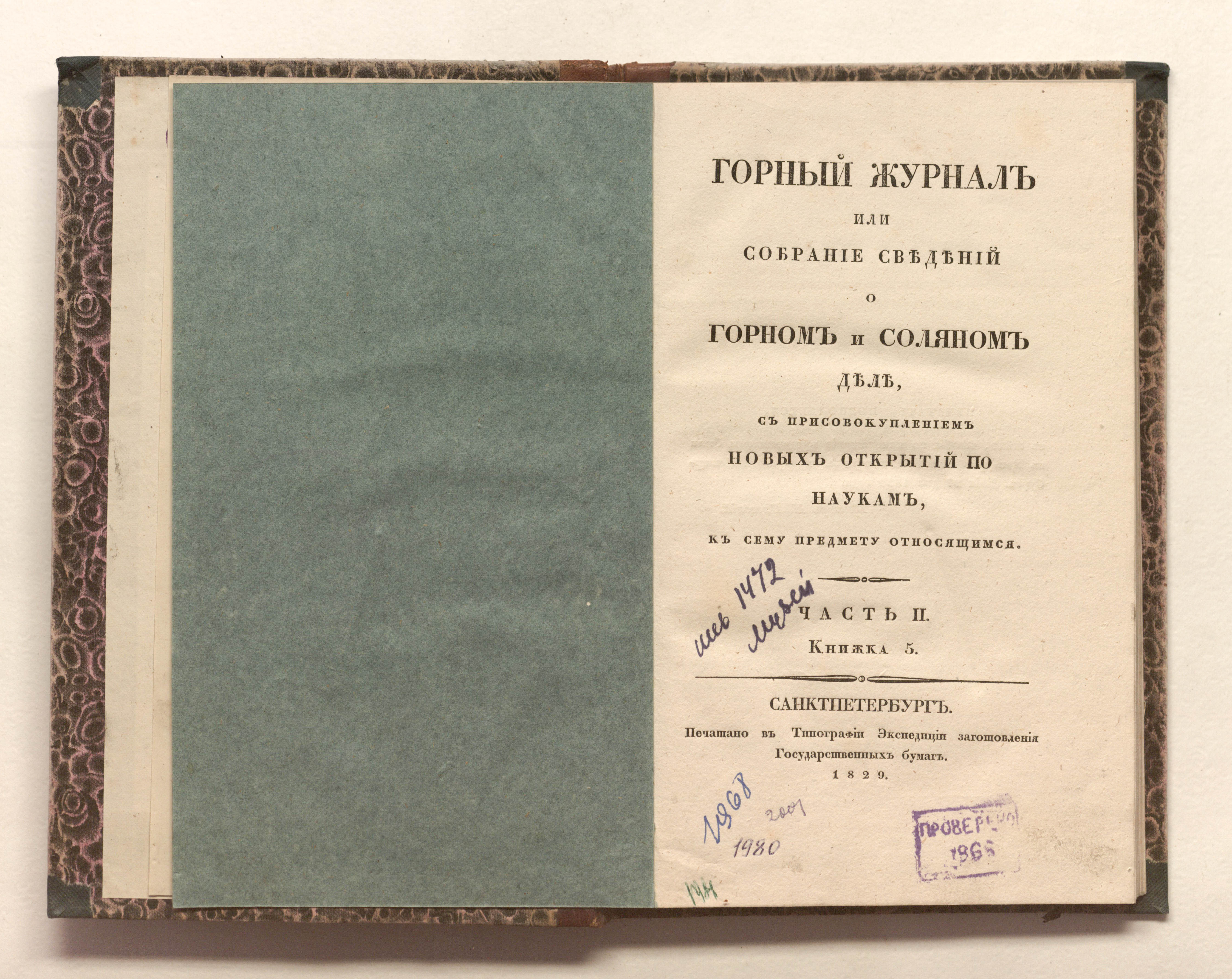 Кн. 5. – Санкт-Петербург : печатано в типографии Экспедиции заготовления государственных бумаг, 1829. – [4], 147-287 с. ; 23х15 см.