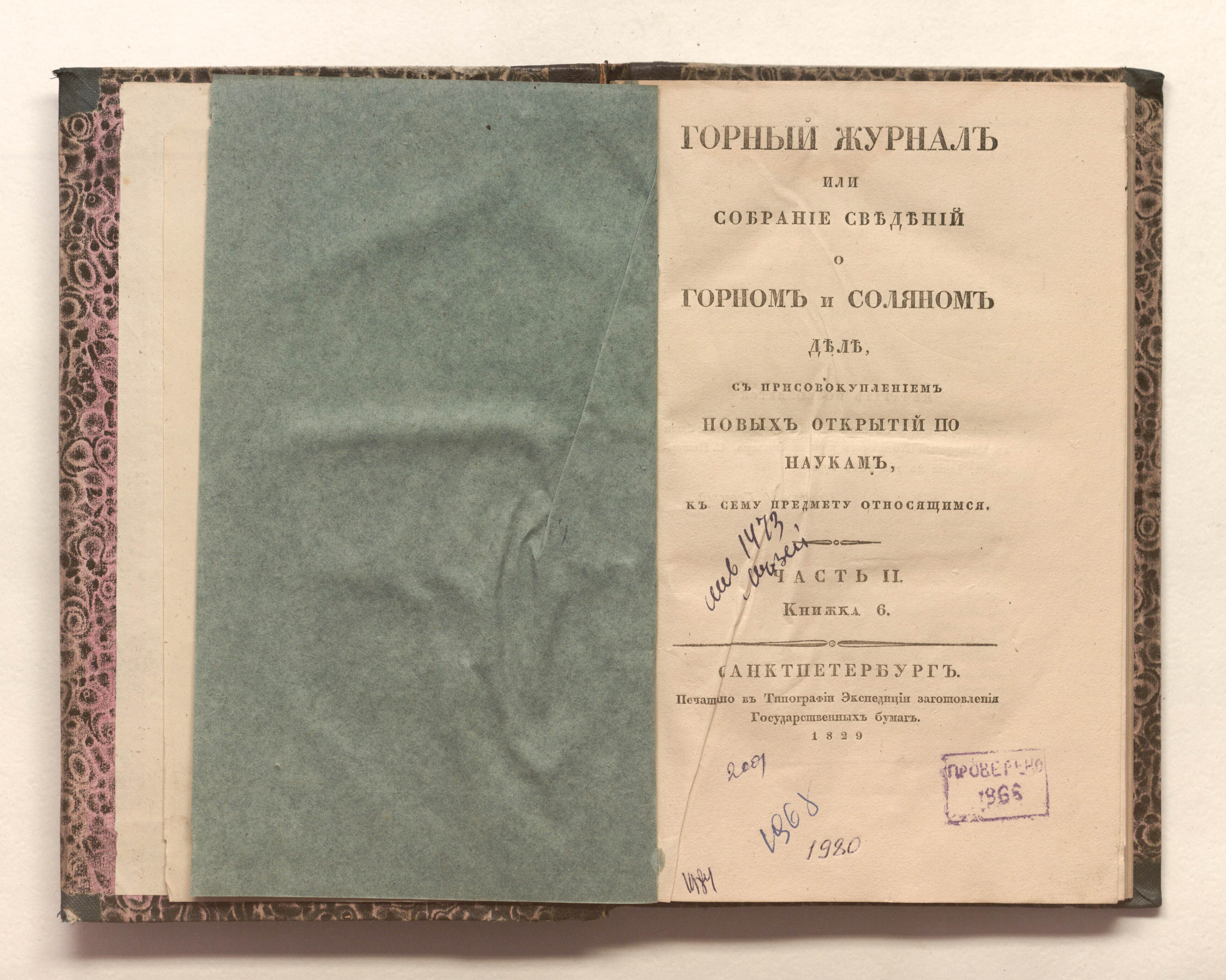 Кн. 6. – Санкт-Петербург : печатано в типографии Экспедиции заготовления государственных бумаг, 1829. – [4], 289-419, [1], IV с. ; 23х15 см.