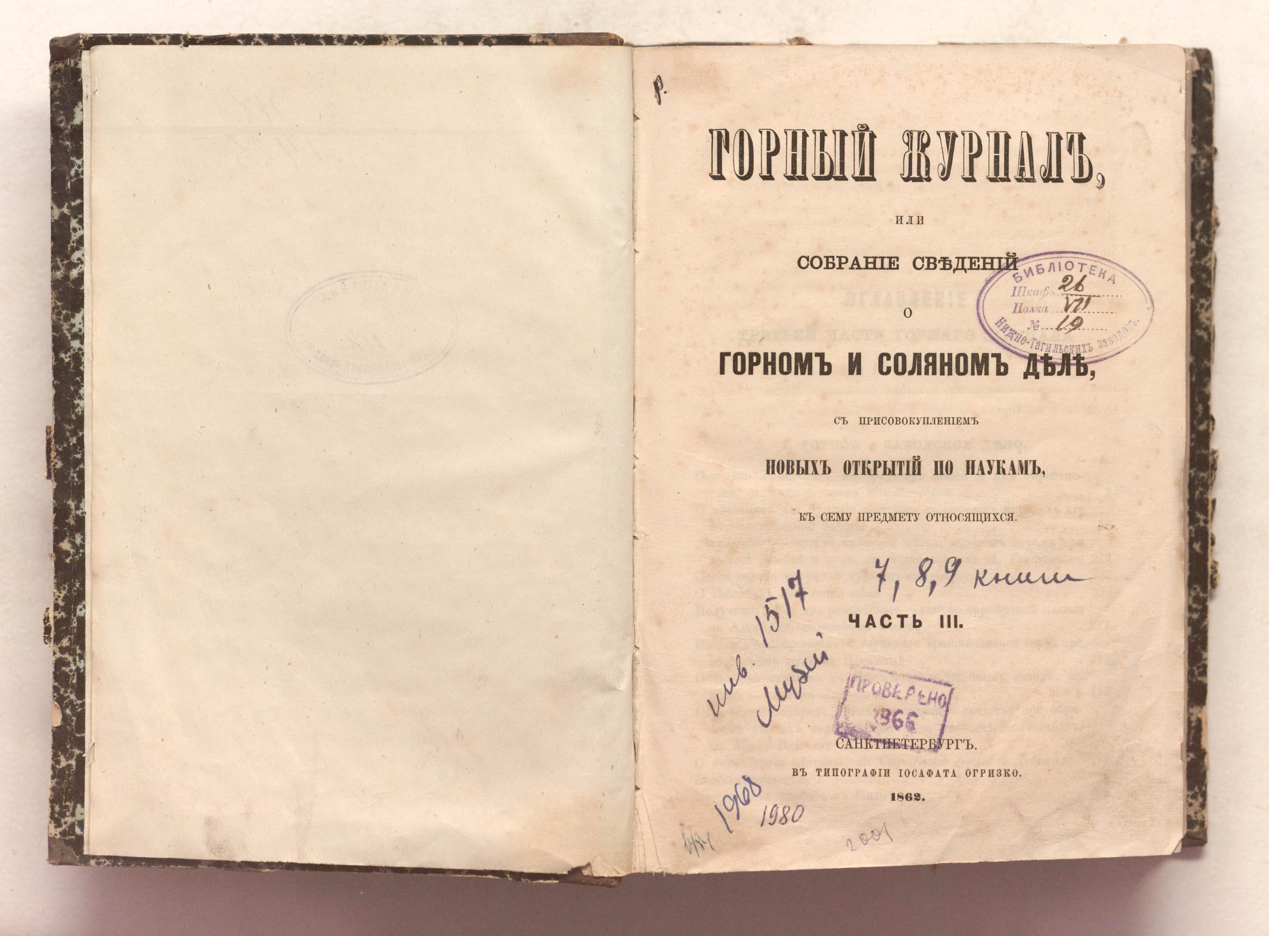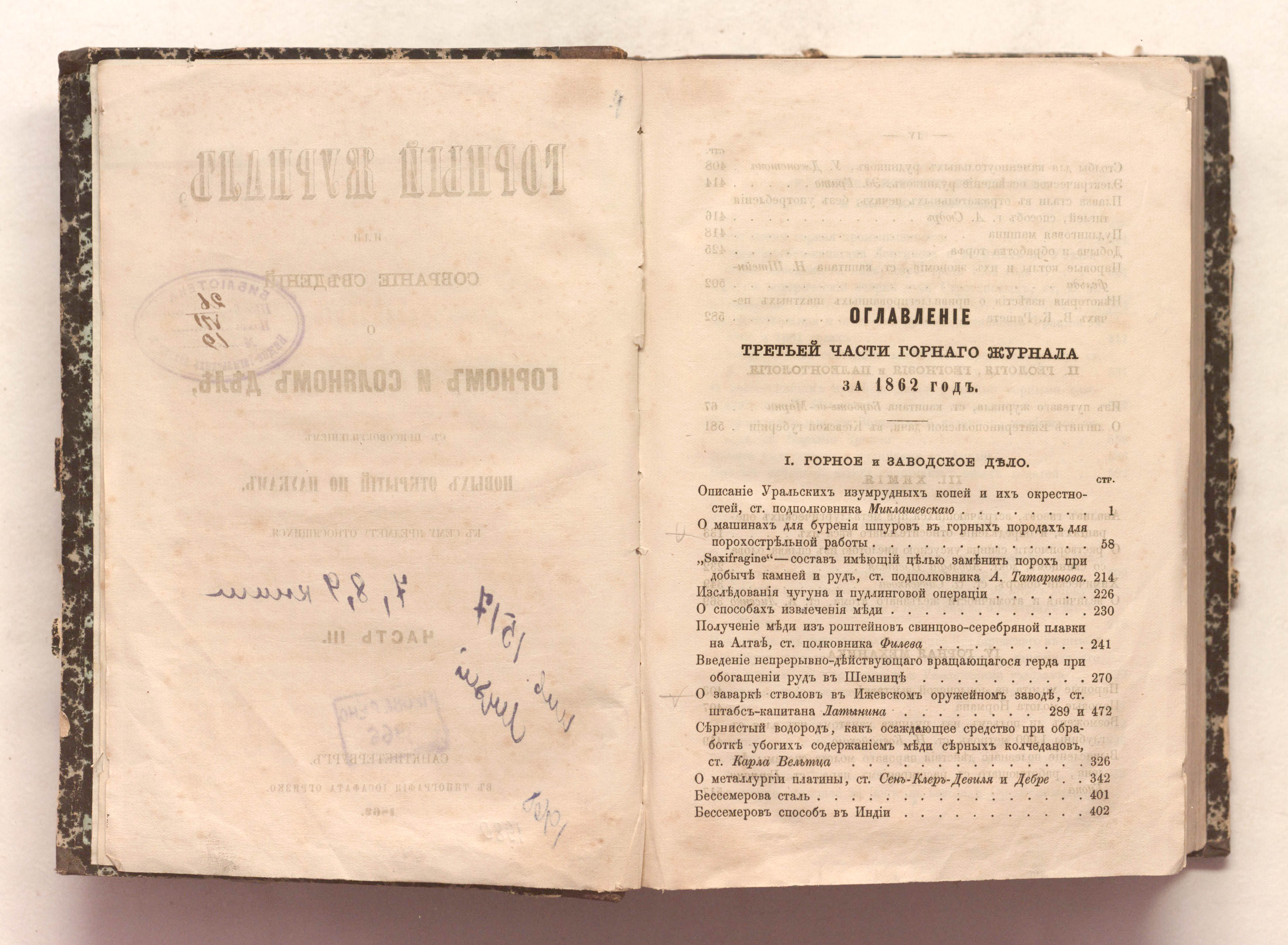 «Библиотека Нижне-Тагильских заводов.» (форзац, тит. л.).