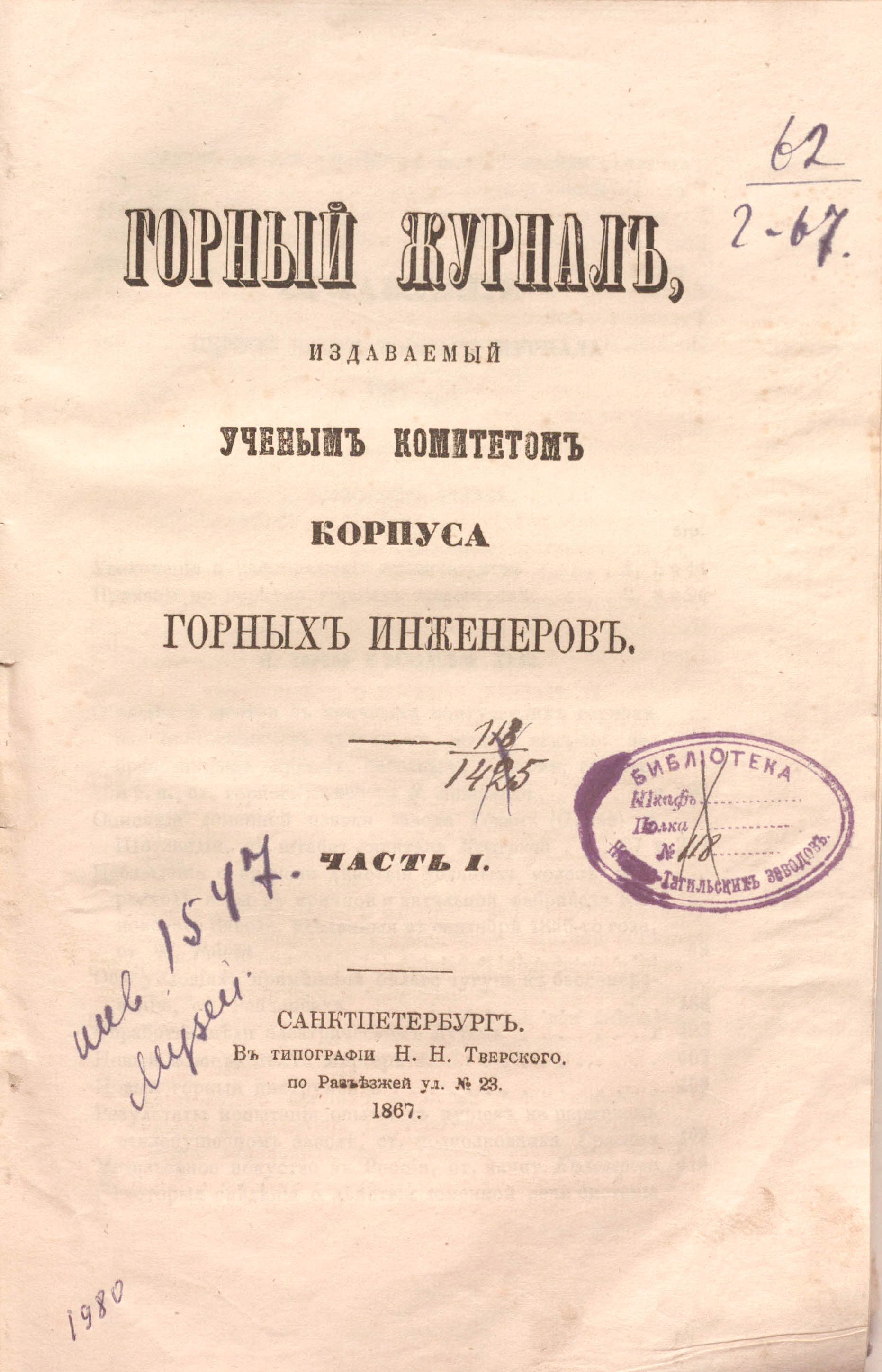 «Библиотека Нижне-Тагильских заводов.» (тит. л.).
