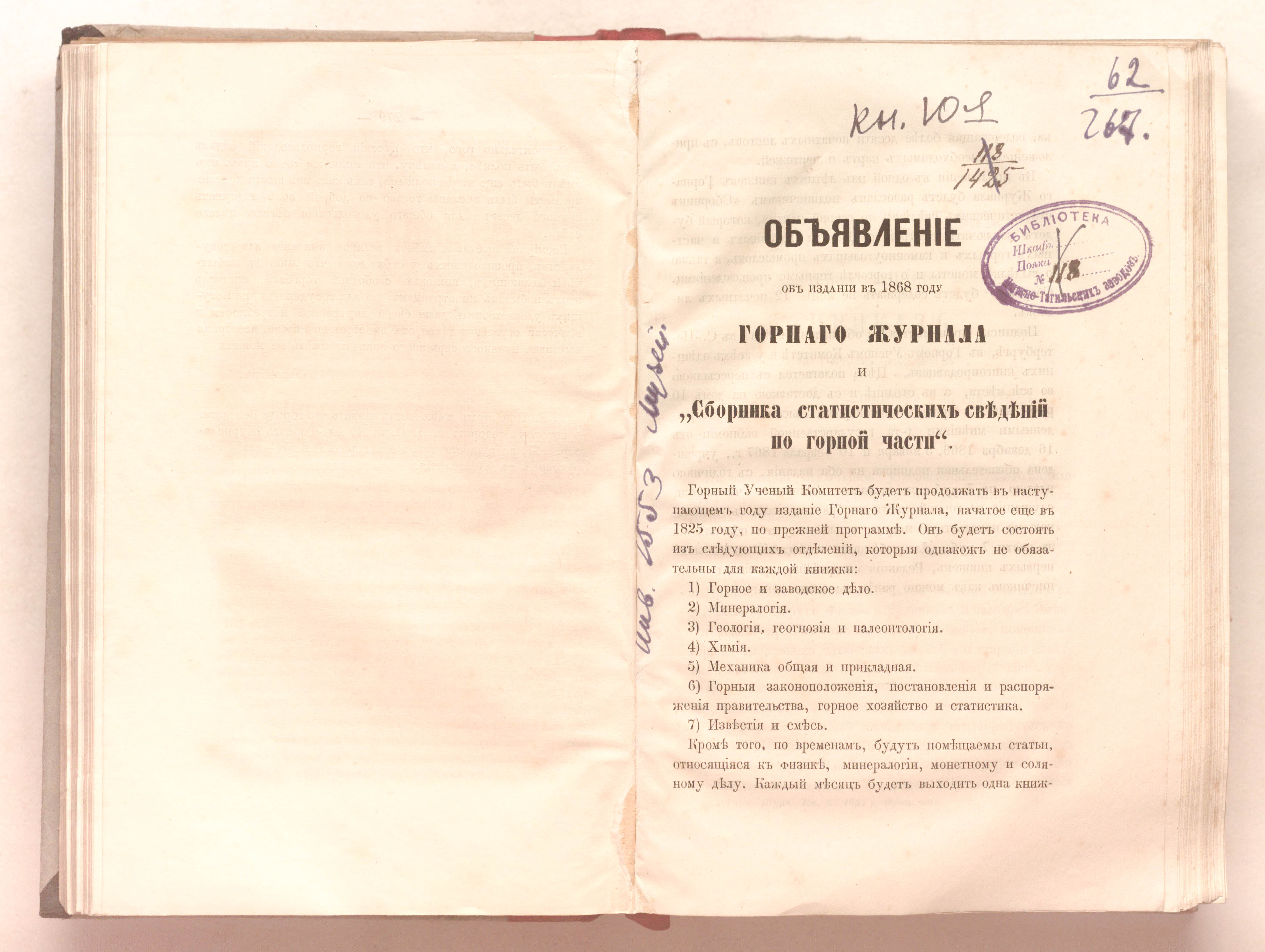 «Библиотека Нижне-Тагильских заводов.» (с. 1).