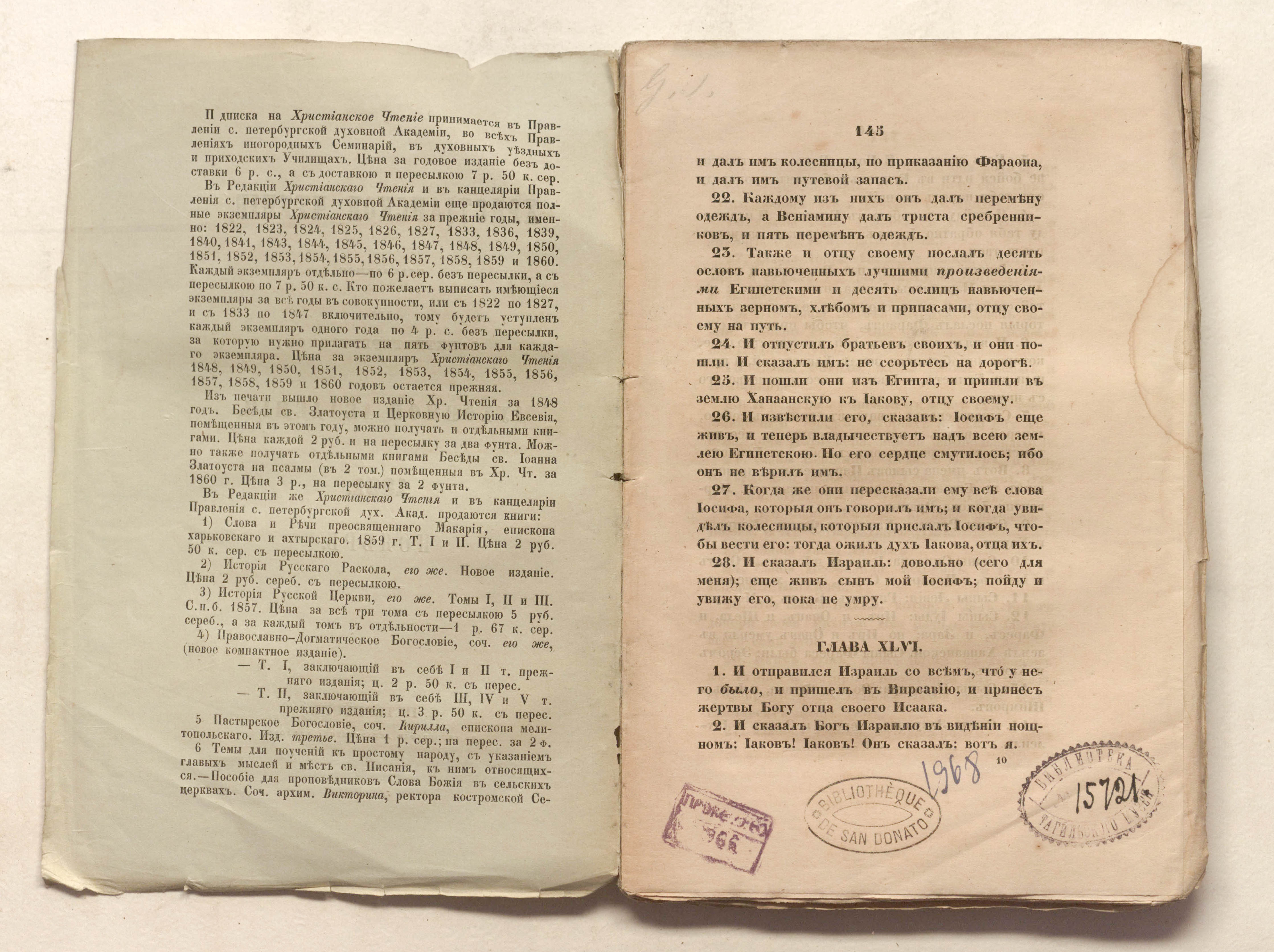 «BIBLIOTHEQUE DE SAN DONATO» (на 1 с.).